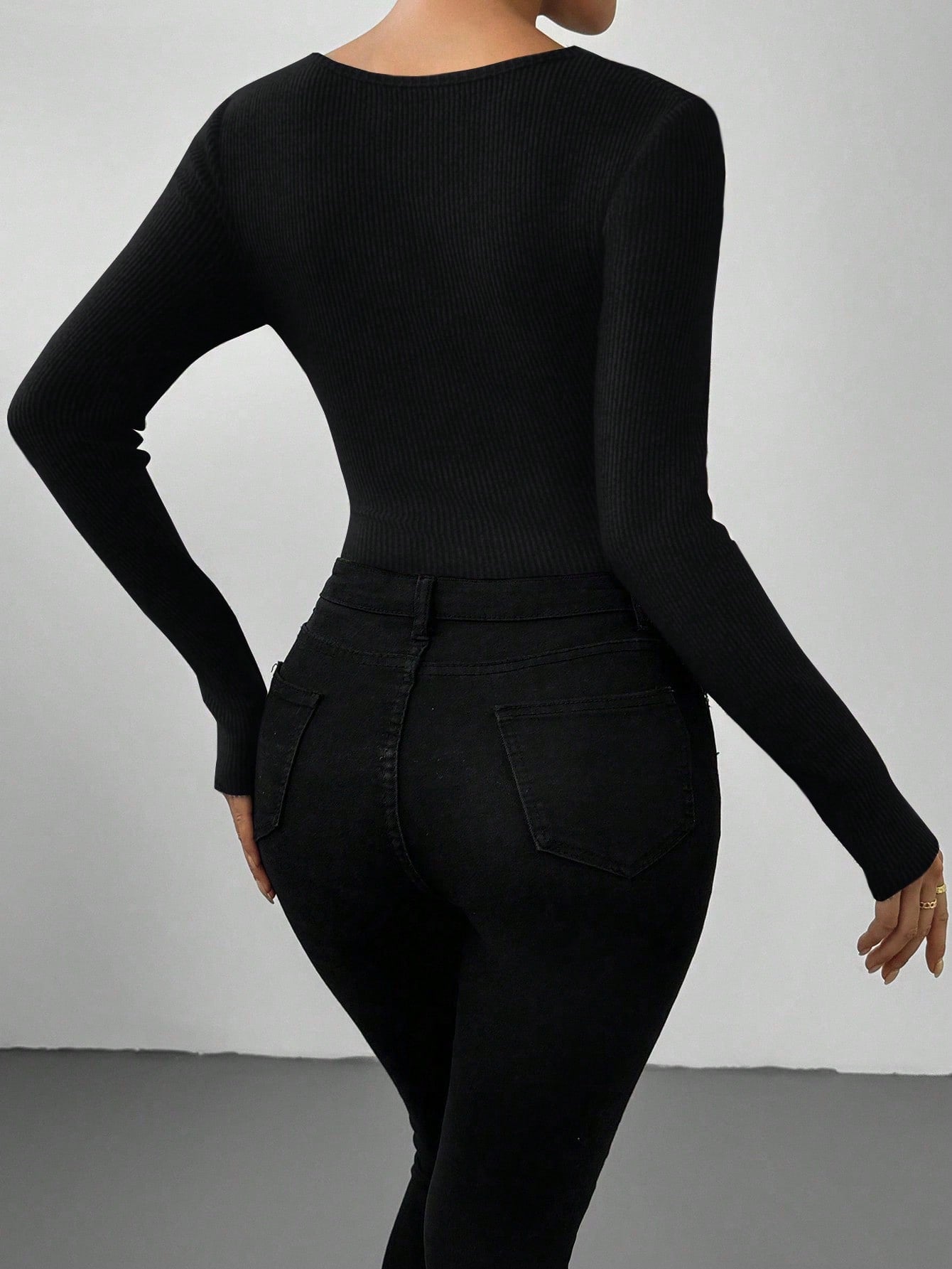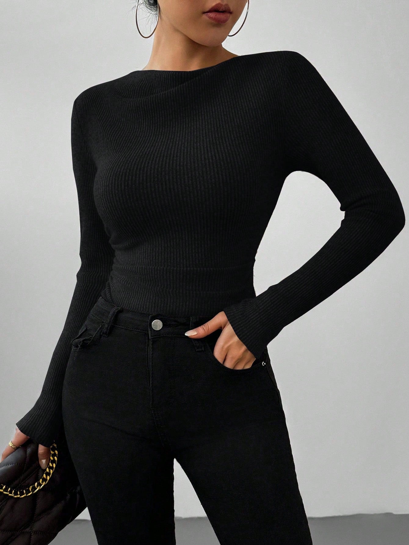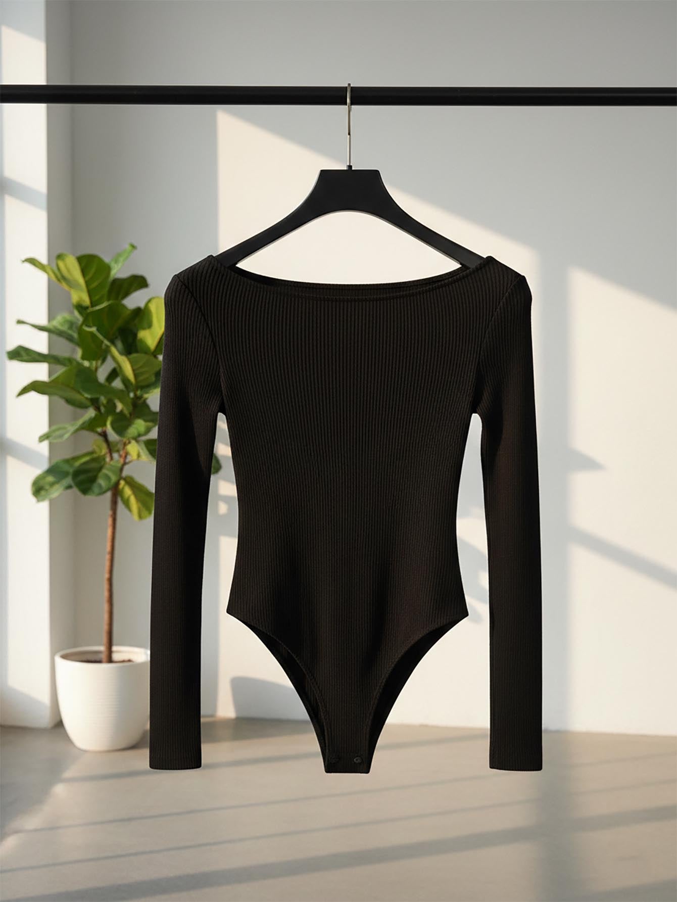 RosyDaze Solid Turtleneck Ruched Tight-Fitting Long Sleeve Black Bodysuit Fall Cloth For Women