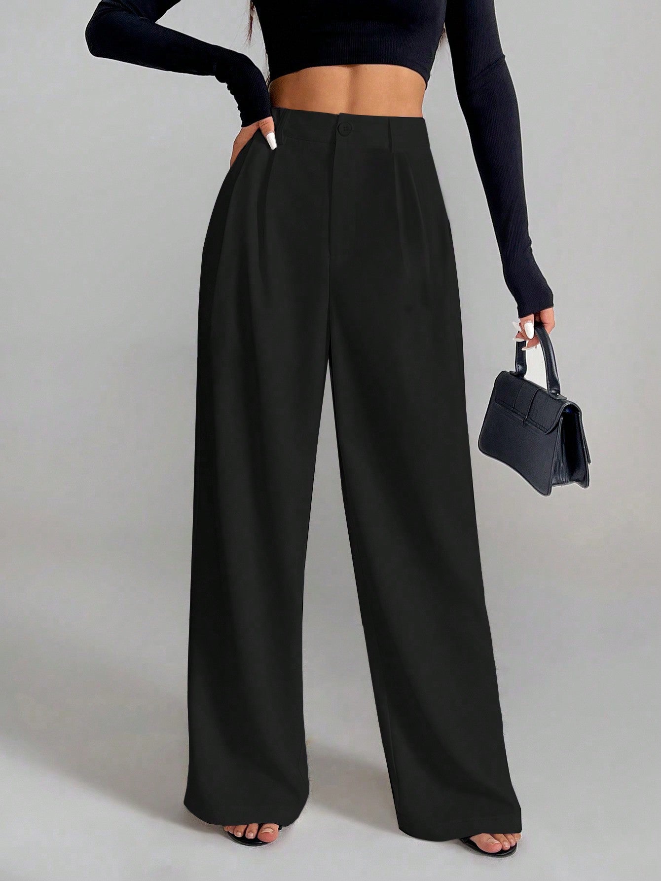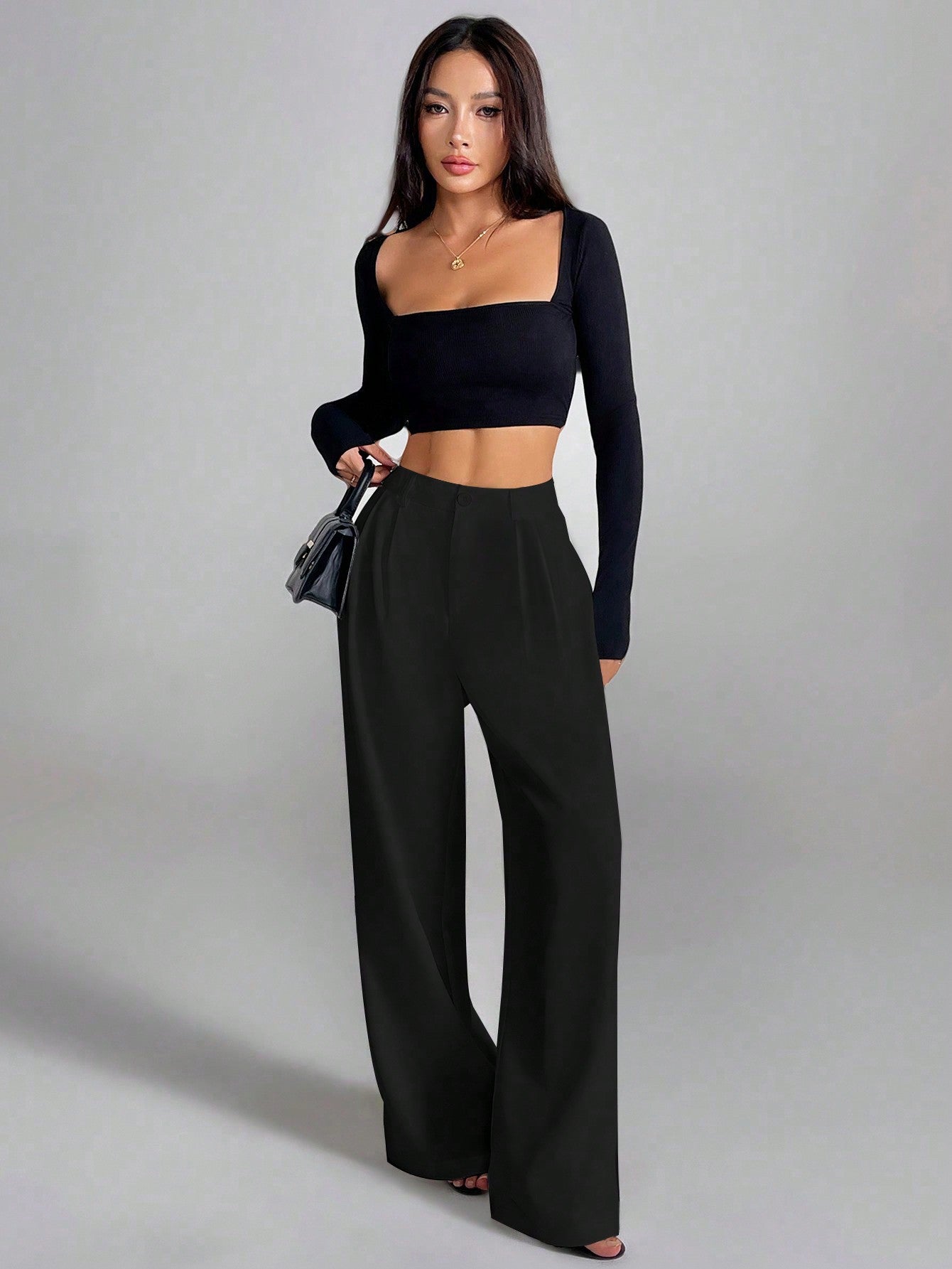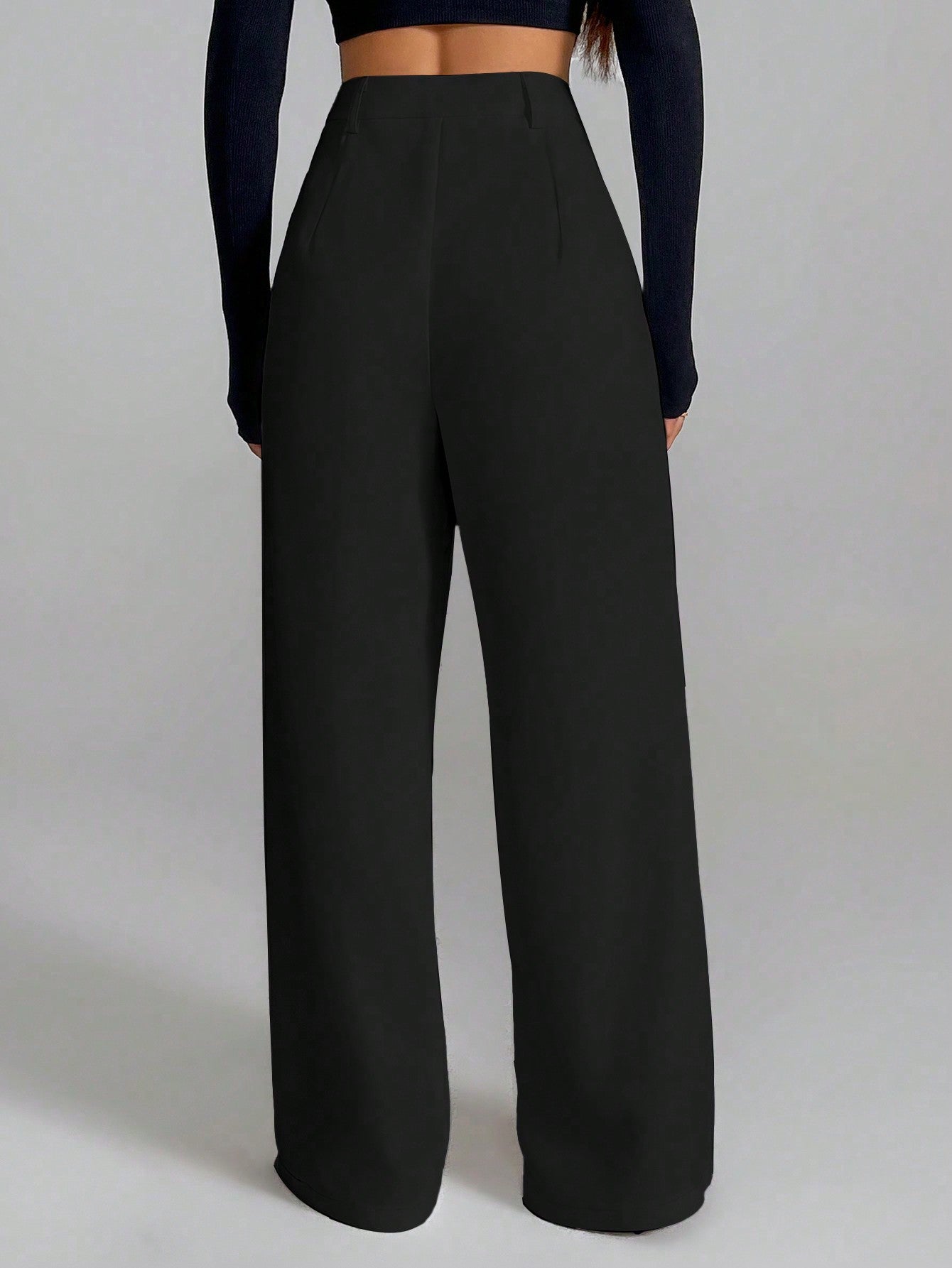 RosyDaze Women's Elegant French Style Straight Leg Black Casual Office Pants Fall Cloth For Women