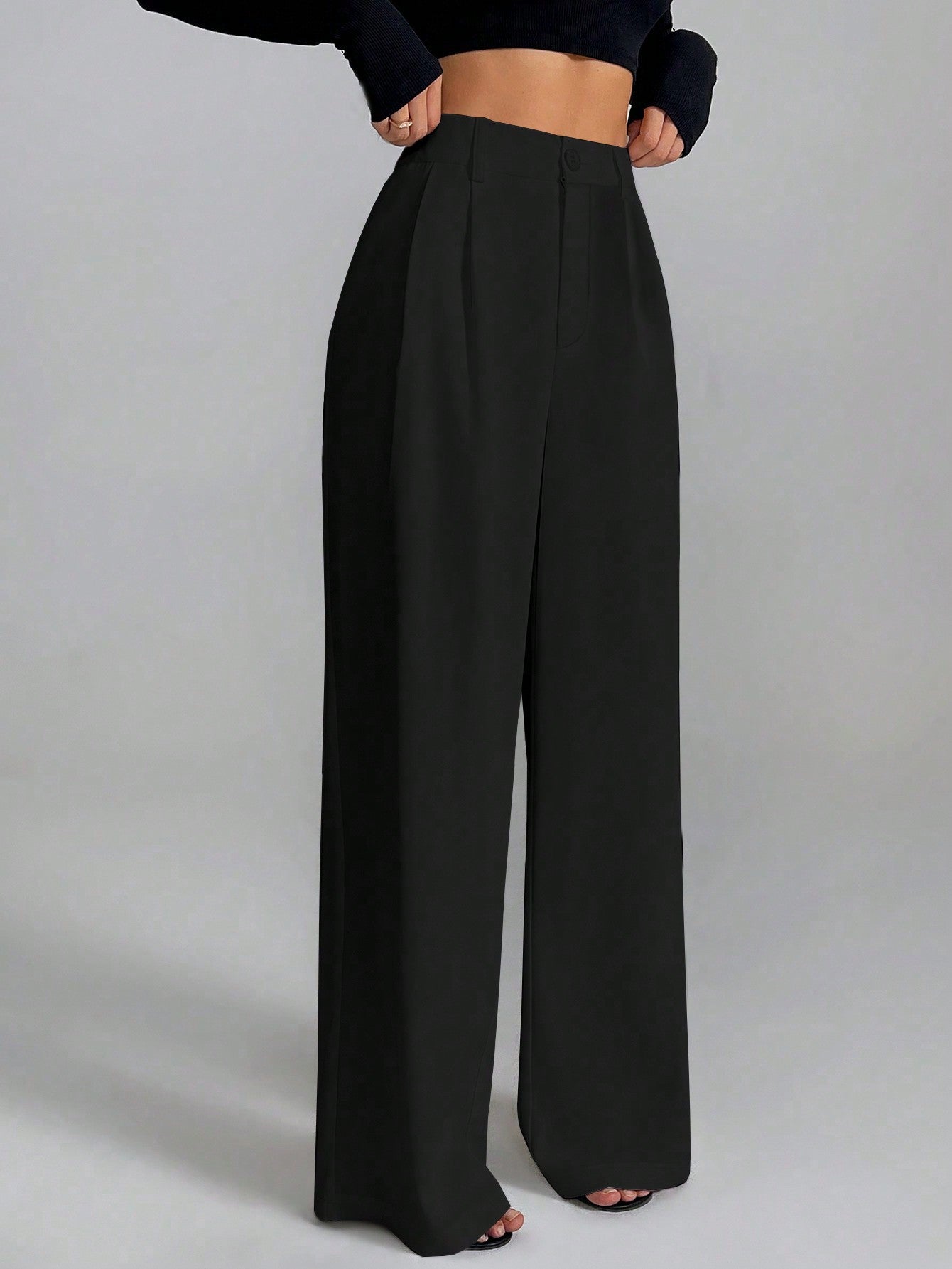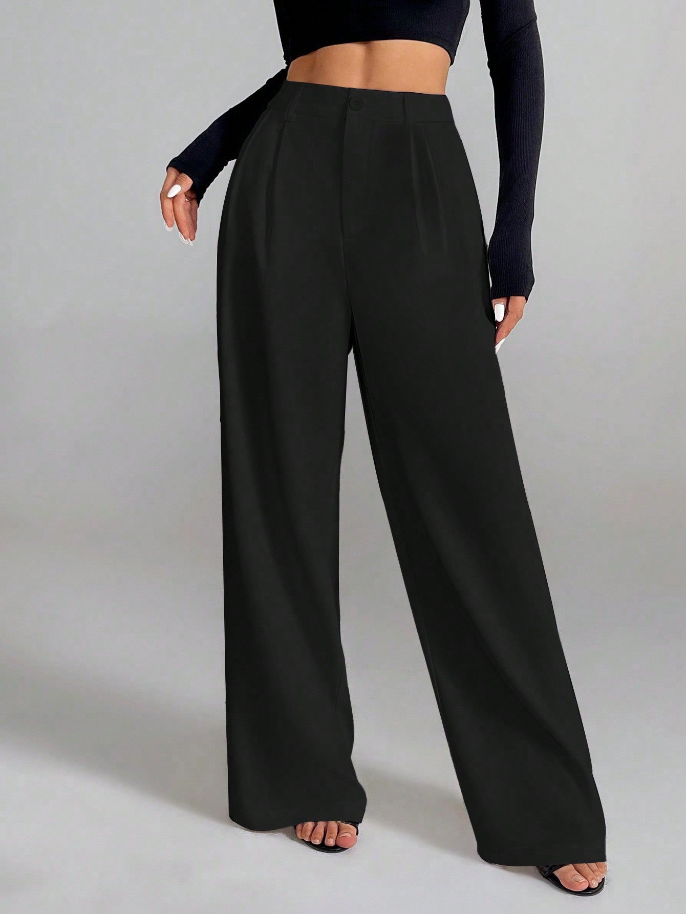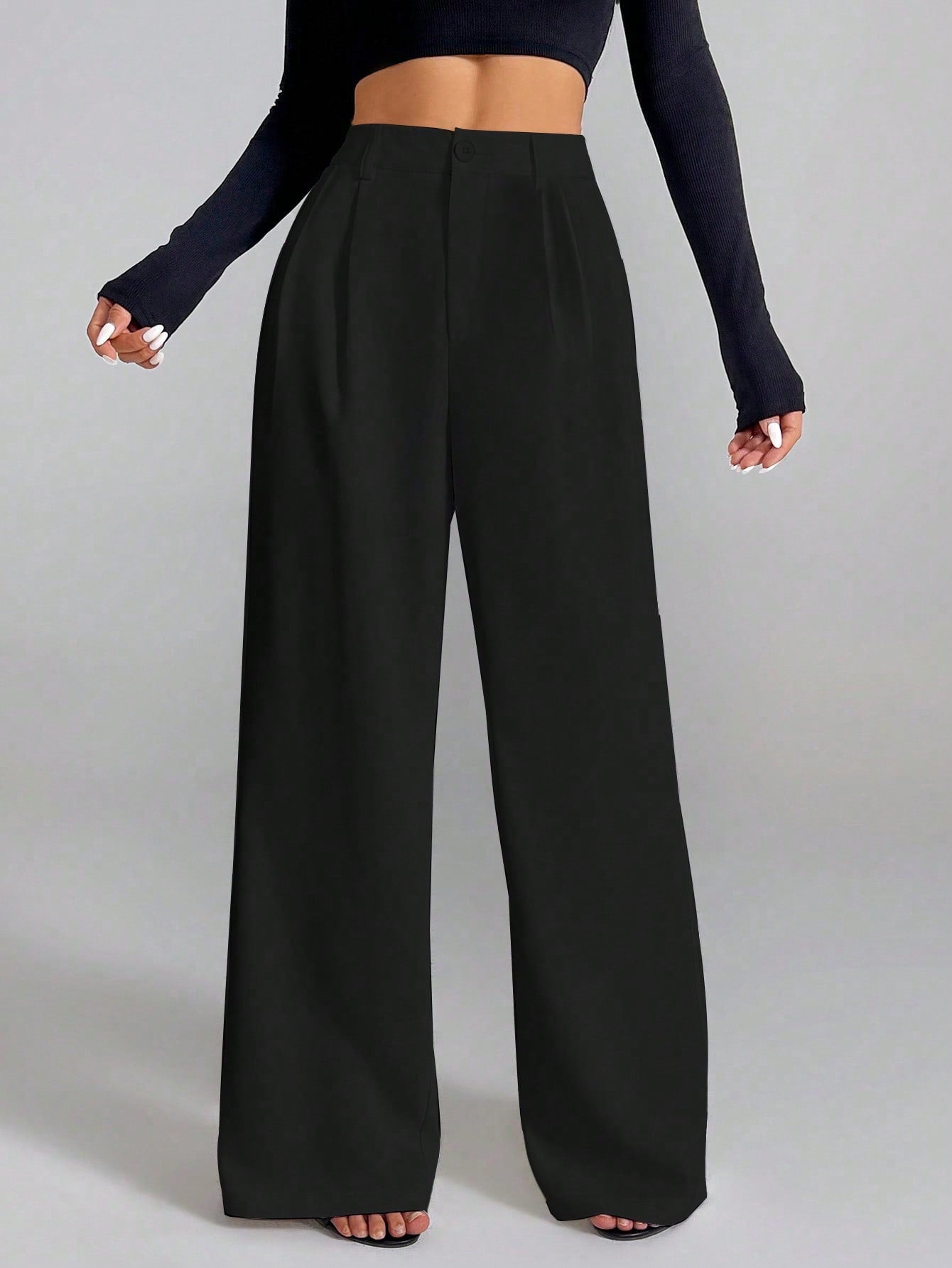 RosyDaze Women's Elegant French Style Straight Leg Black Casual Office Pants Fall Cloth For Women