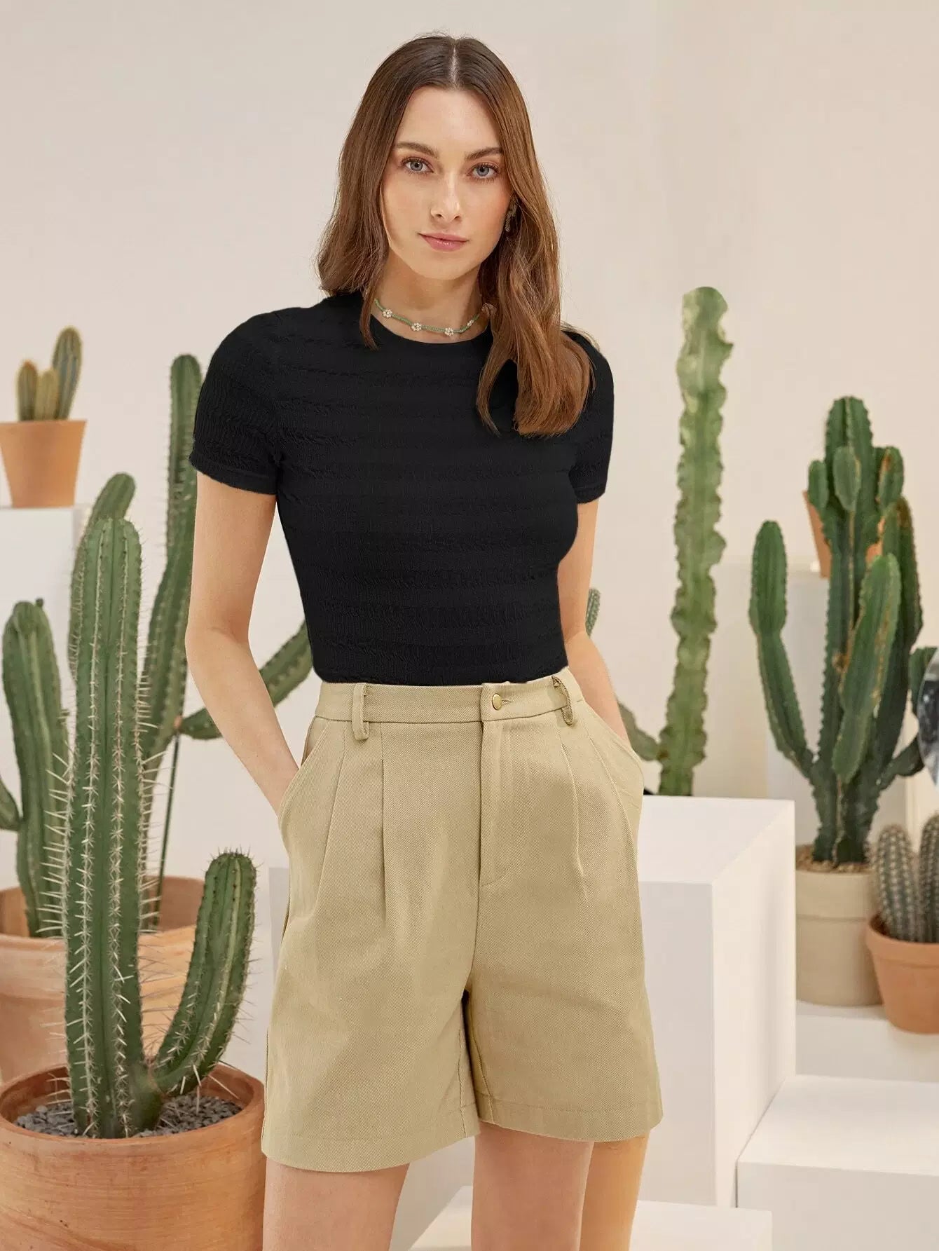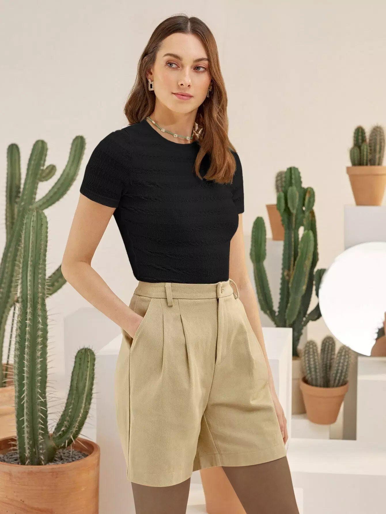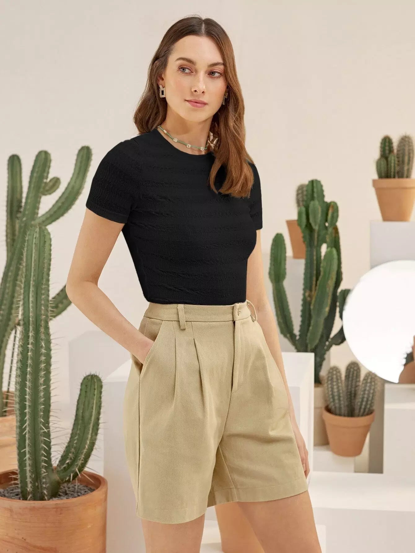 Round Neck Shirred Tee