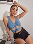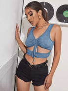 Ruched Drawstring Knot Cut-out Rib-knit Tank Top