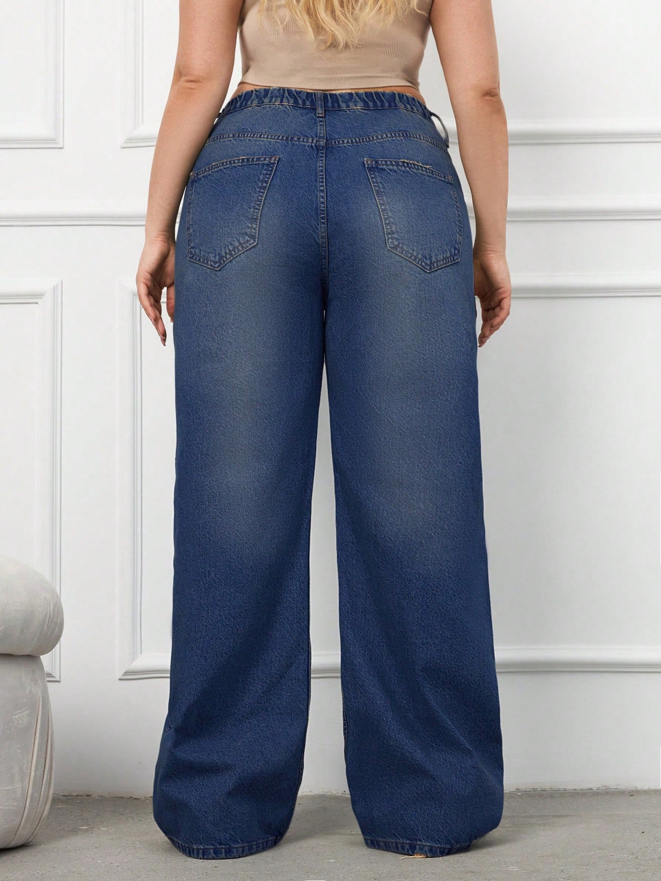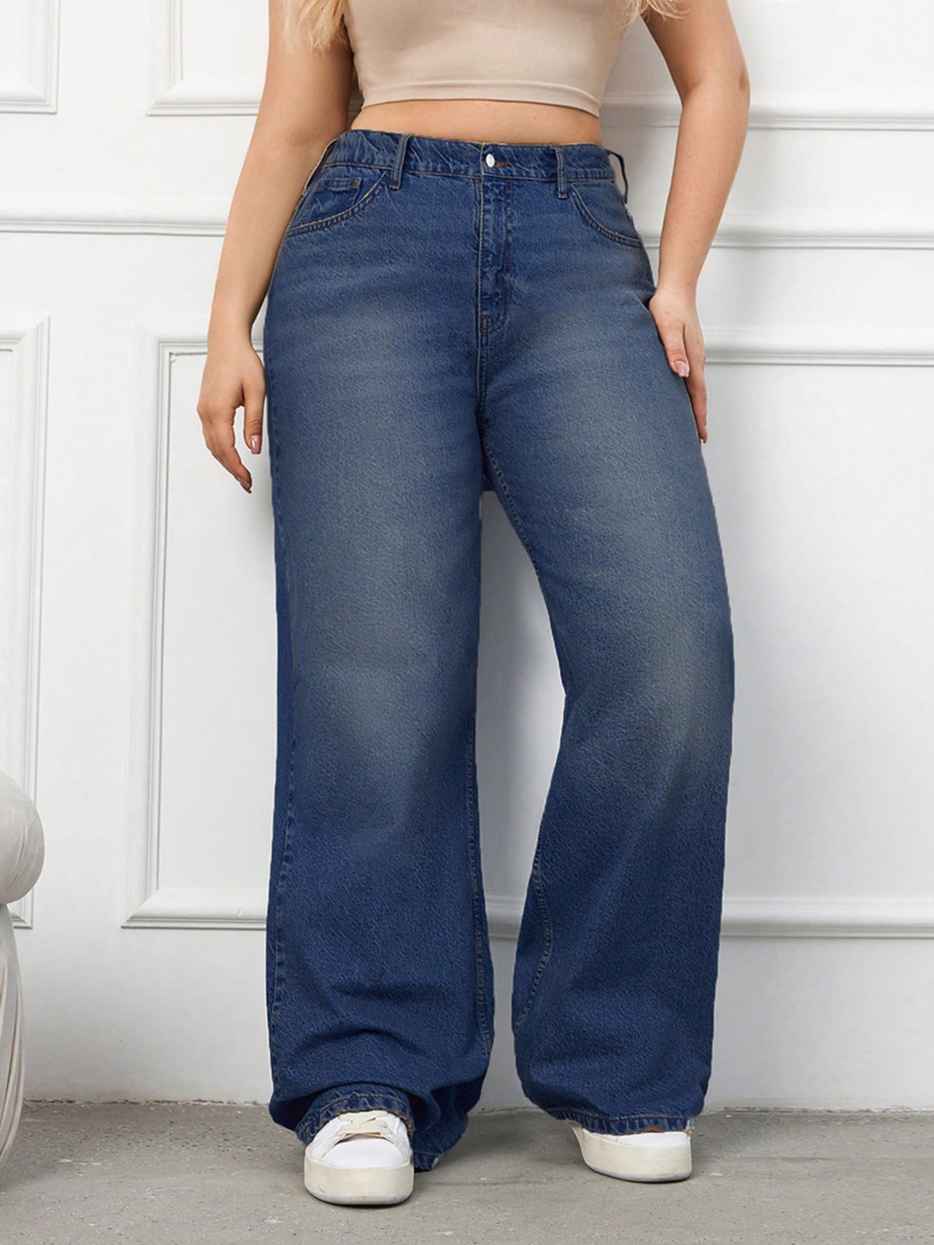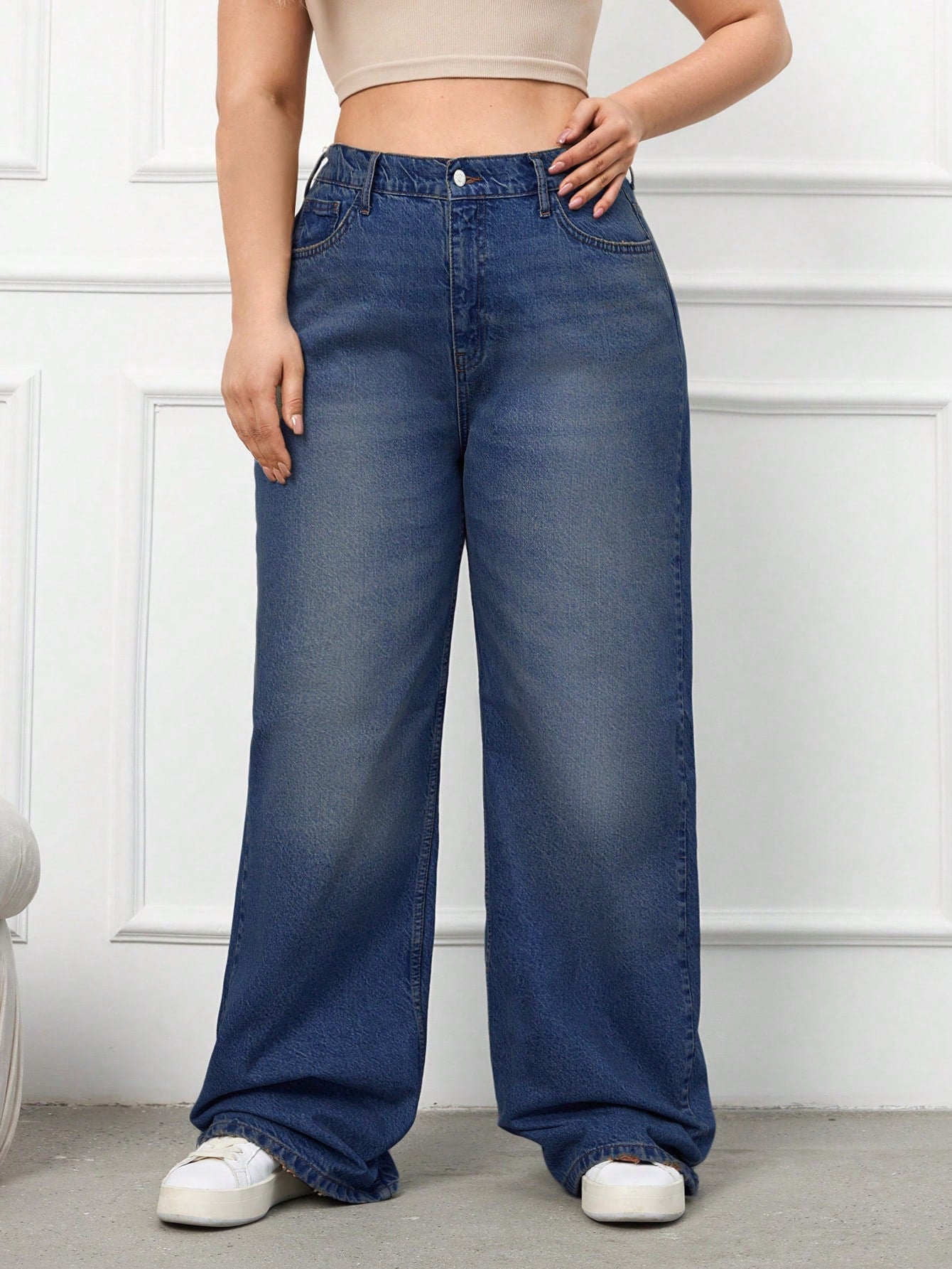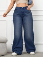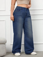RueChic 100%Cotton Plus Size Details Wide Leg Jeans Without Belt