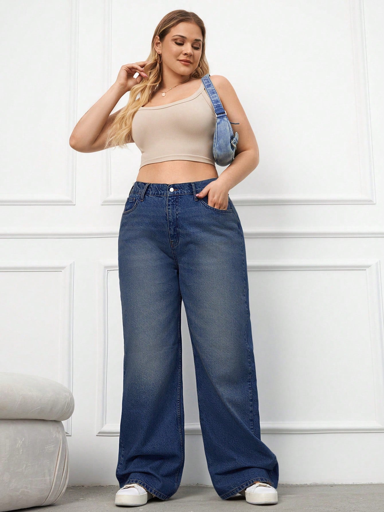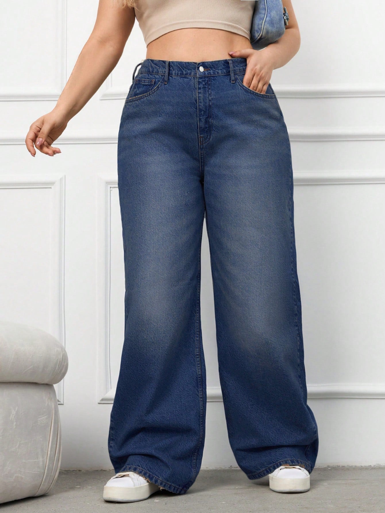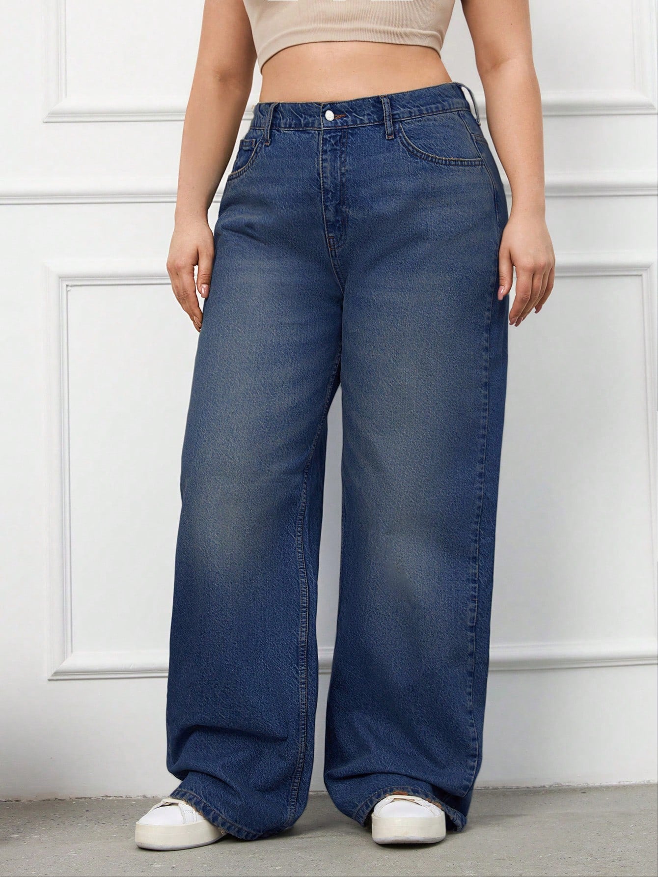 RueChic 100%Cotton Plus Size Details Wide Leg Jeans Without Belt