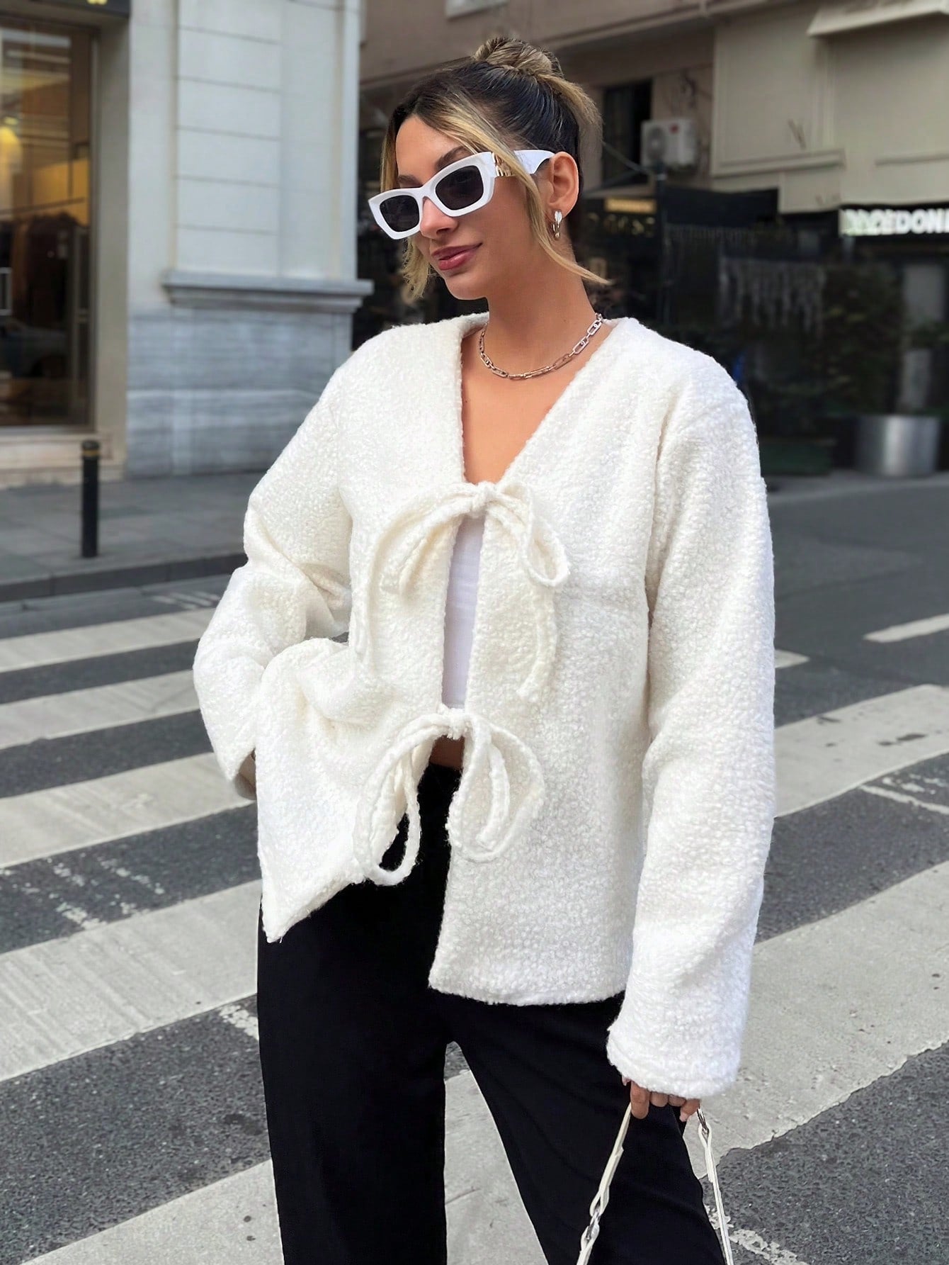 RueChic FRENCHY Cozy Chic Tie-Front Teddy Cardigan – Wrap Yourself In Comfort