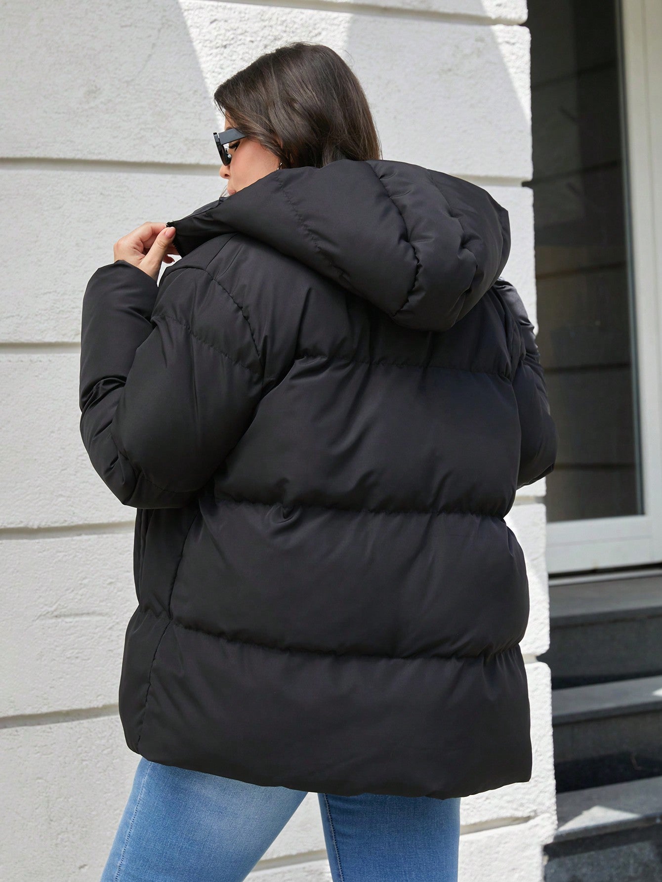 RueChic Plus Size Women's Zip Up Hooded Puffer Coat