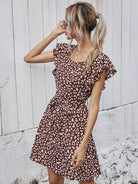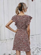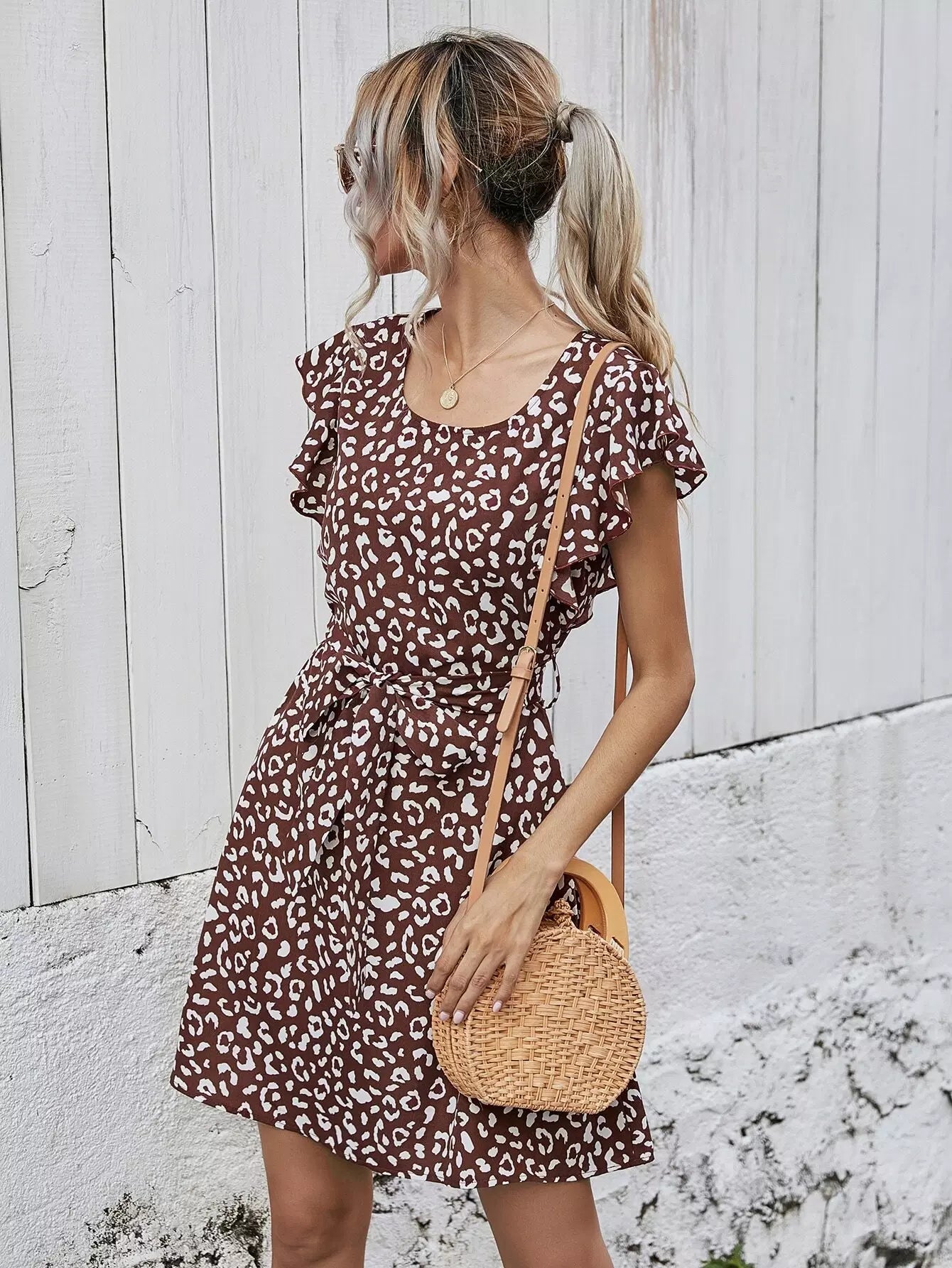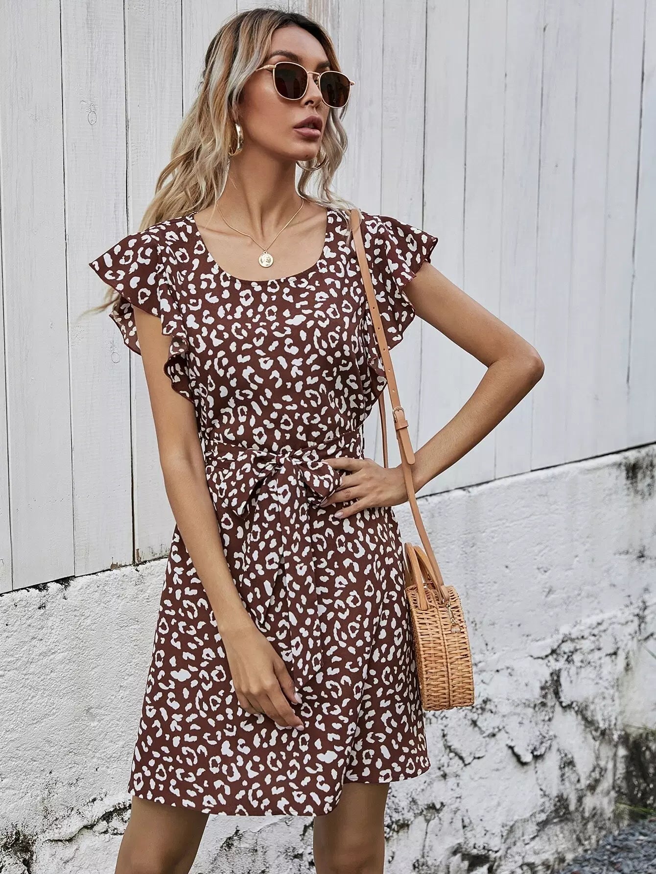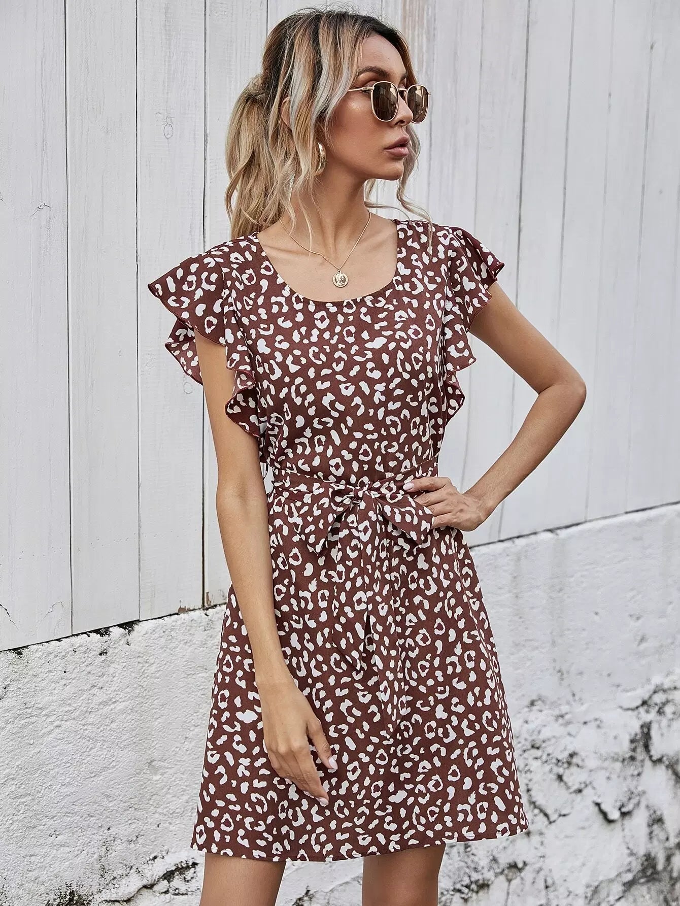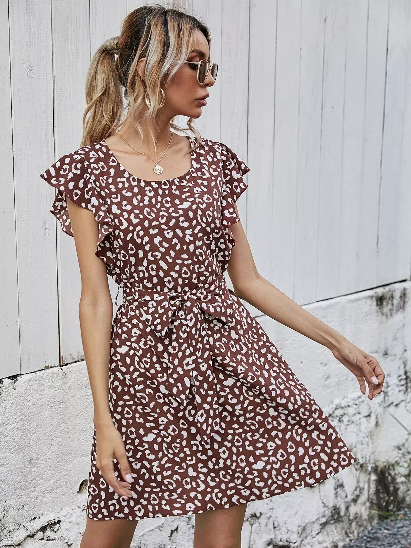 Ruffle Trim Leopard Dress Without Belt