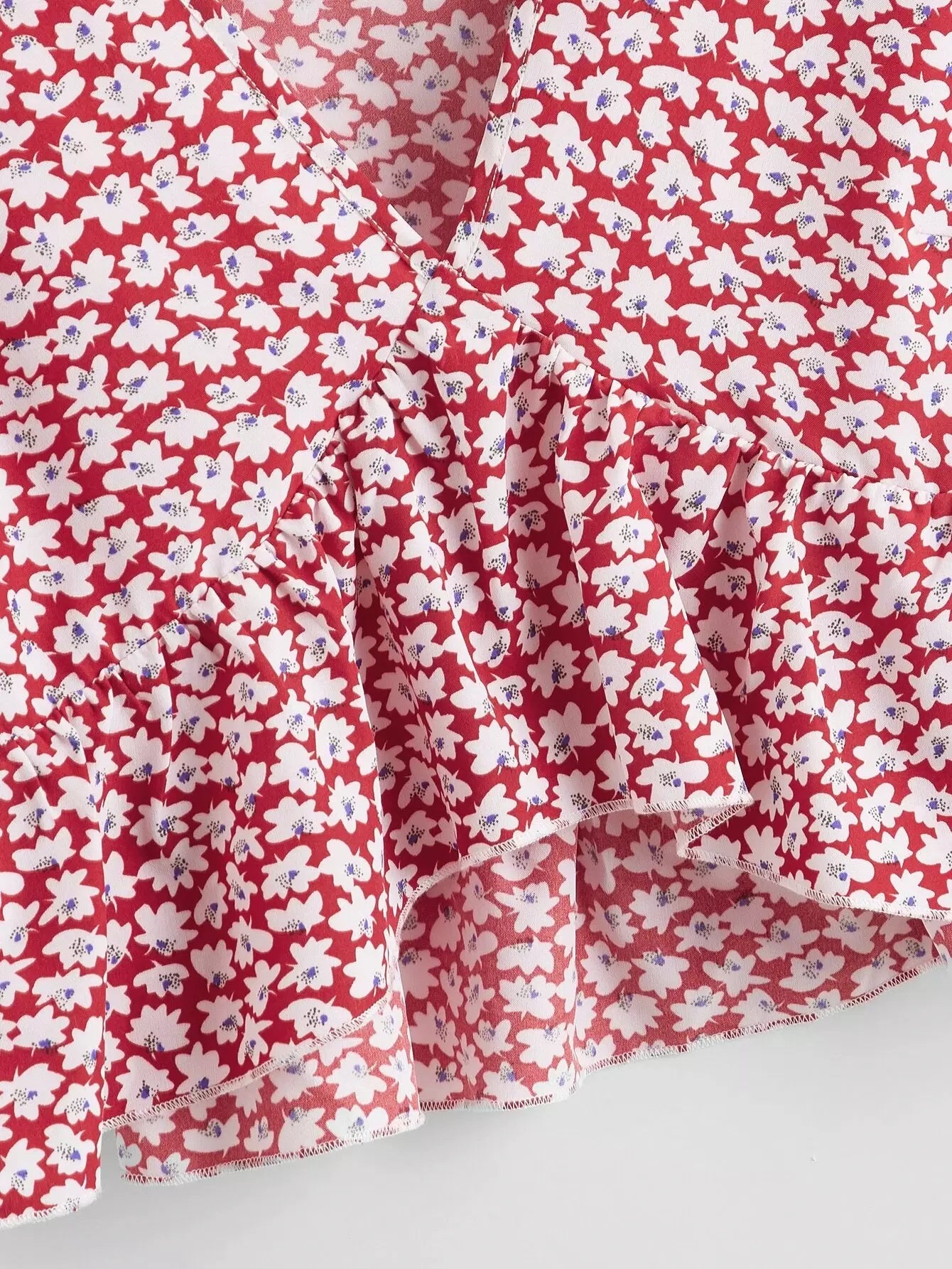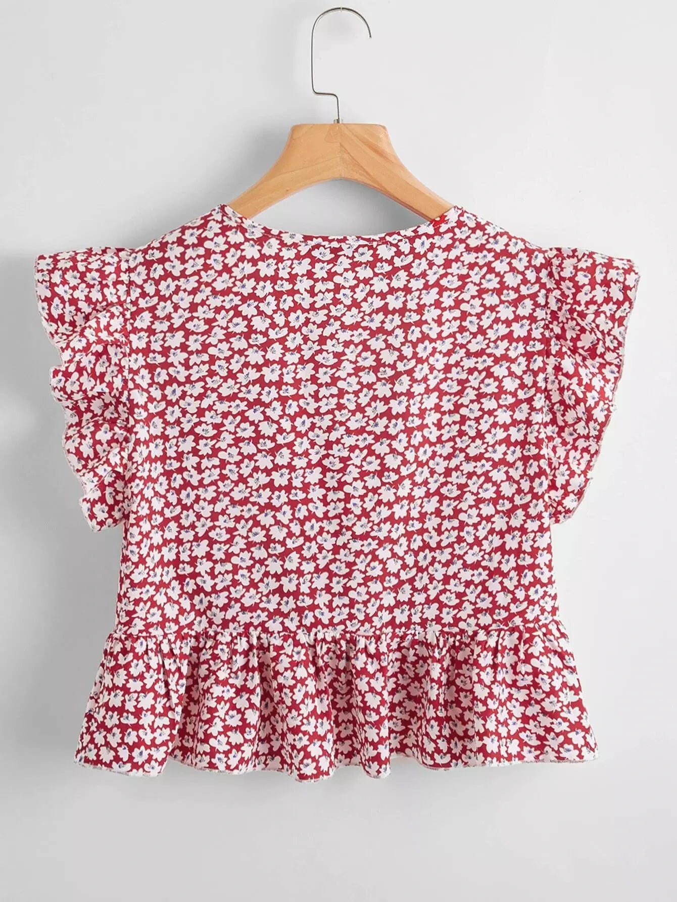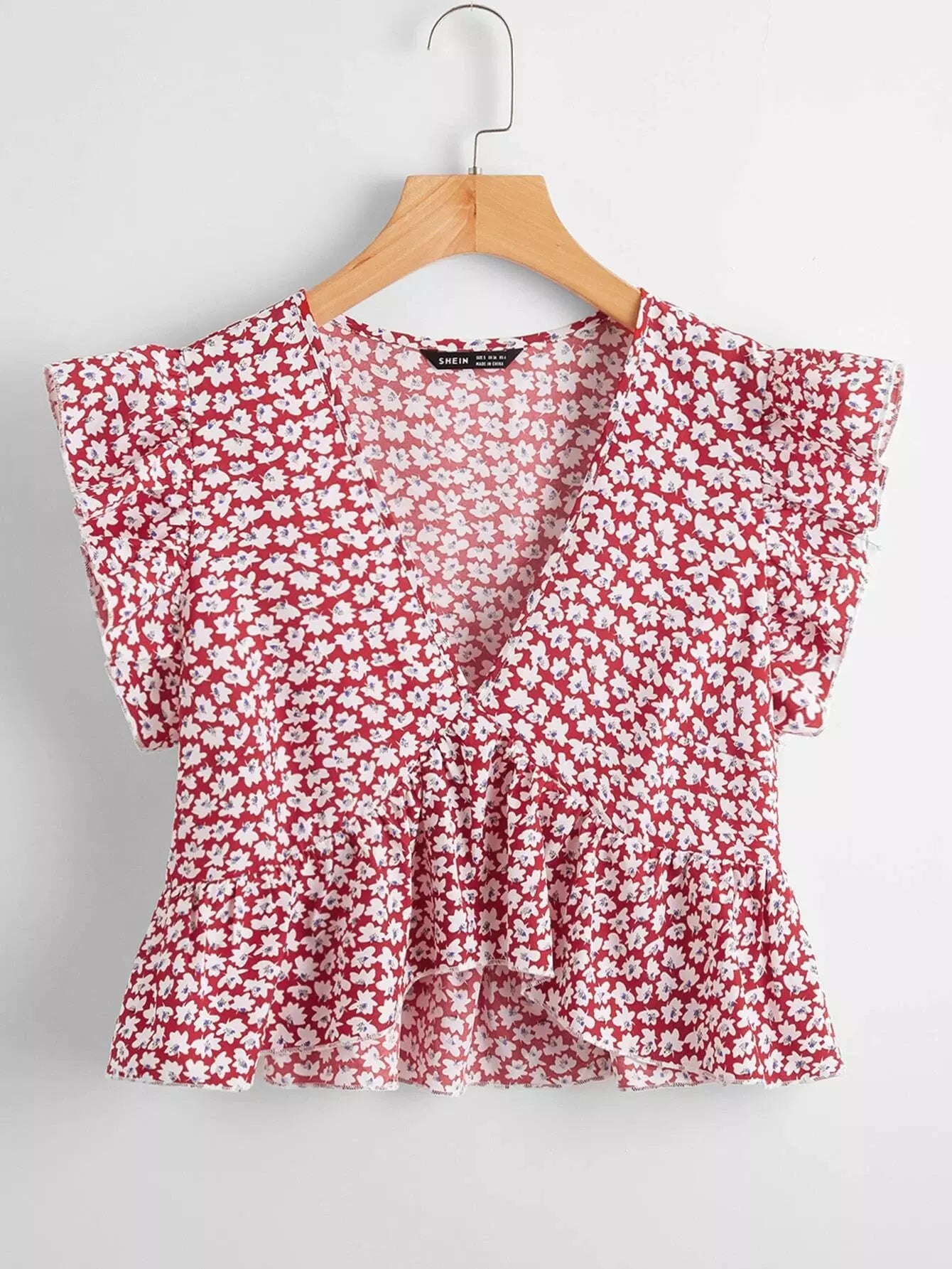 Ruffle Trim Ditsy Floral Peplum Top