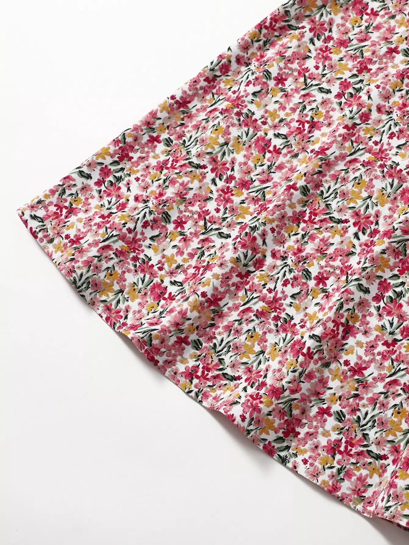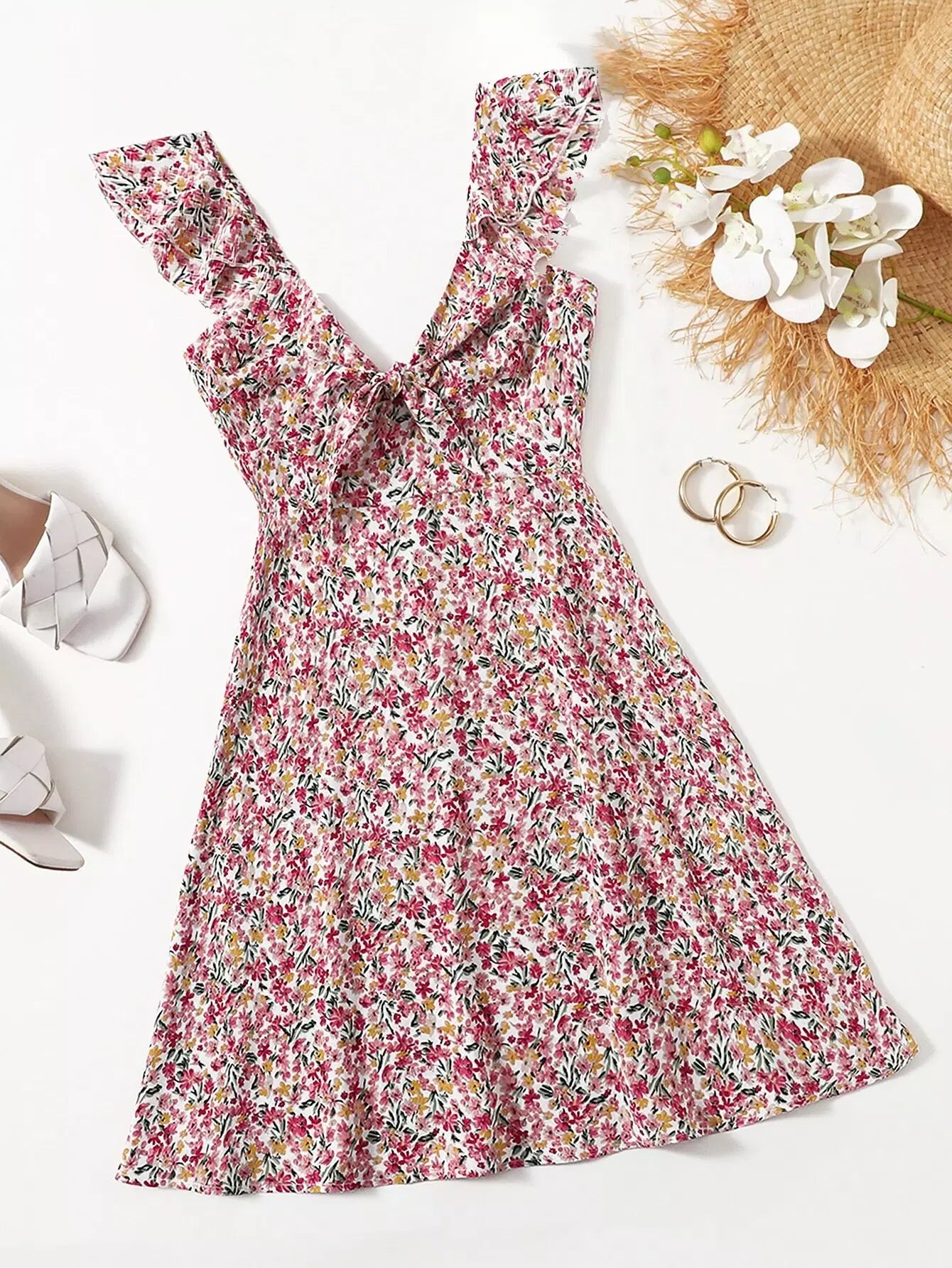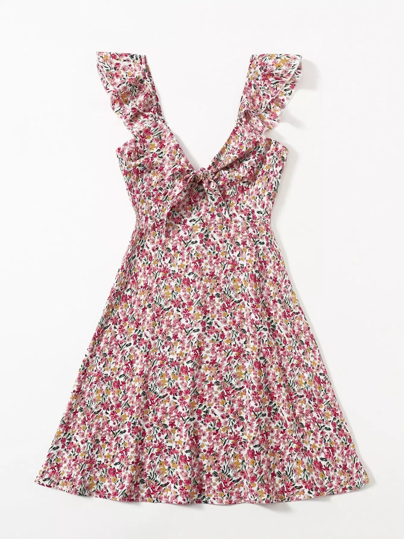 Ruffle Trim Tie Front Ditsy Floral Dress