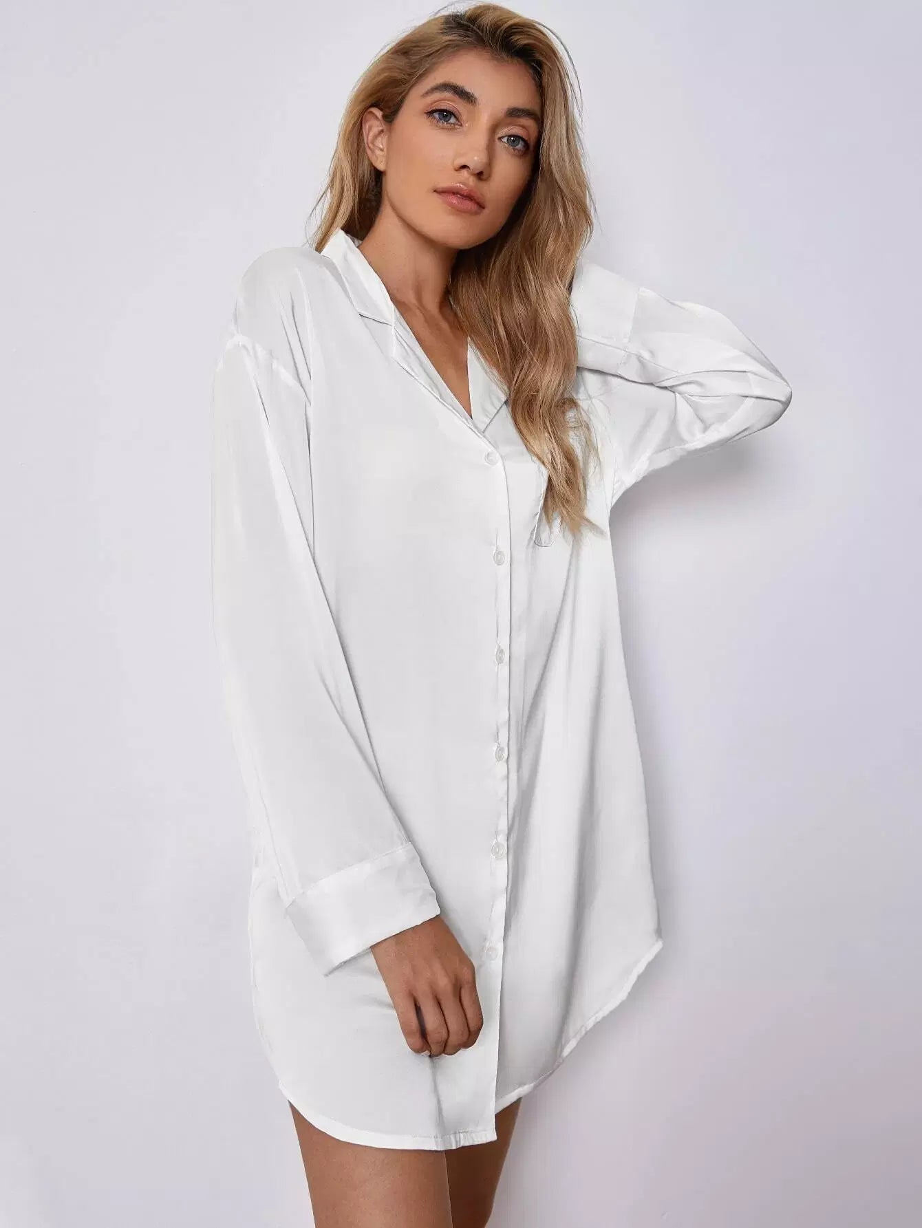 Satin Lapel Collar Drop Shoulder Button Through Night Dress