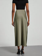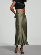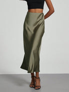 Se-Helo Fashion Women's Elastic Satin Finish Maxi Skirt - Olive Green