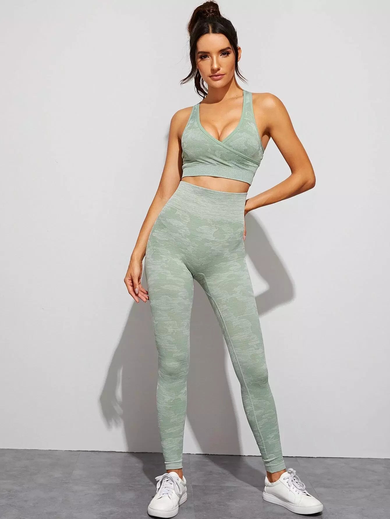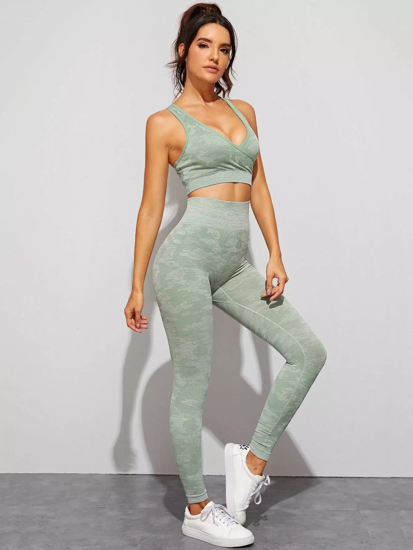 Seamless Camo Print Wide Band Waist Sports Leggings