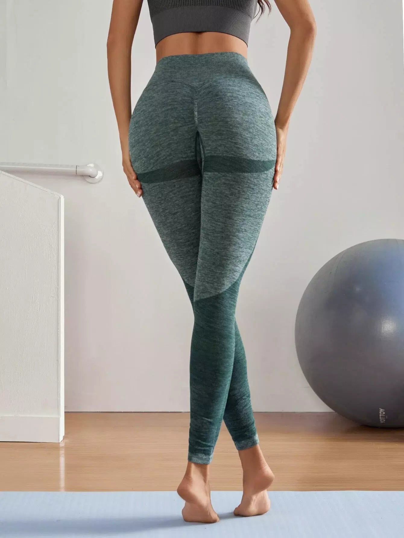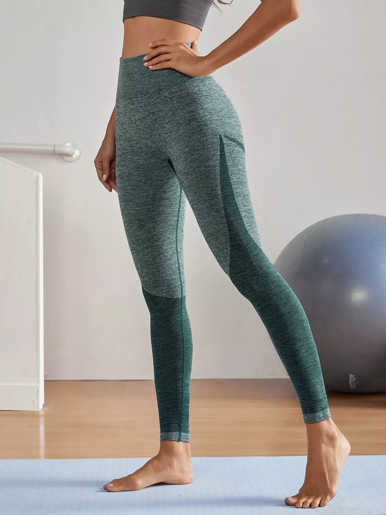 Seamless Contrast Panel Wide Waistband Sports Leggings