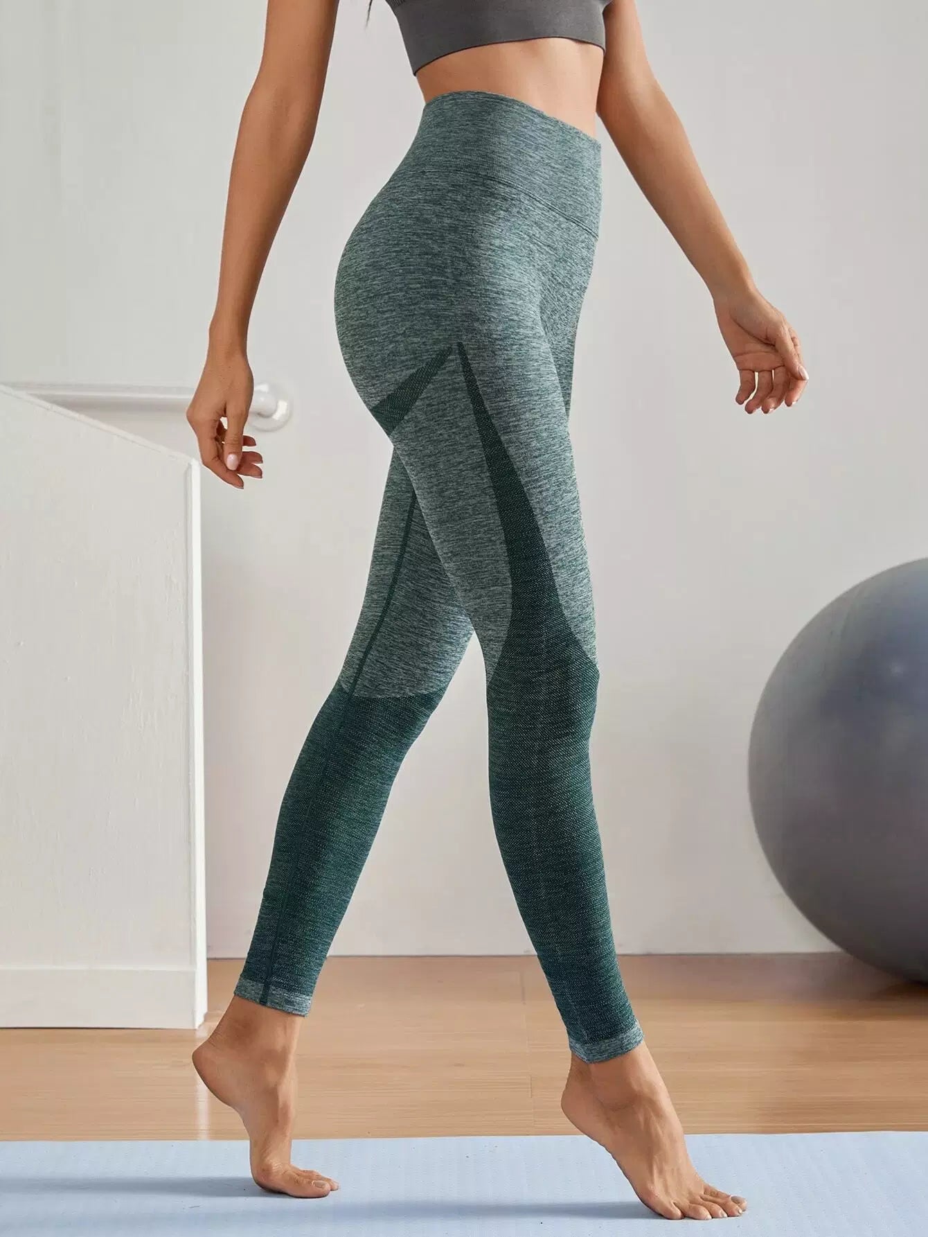 Women - Seamless Contrast Panel Wide Waistband Sports Leggings