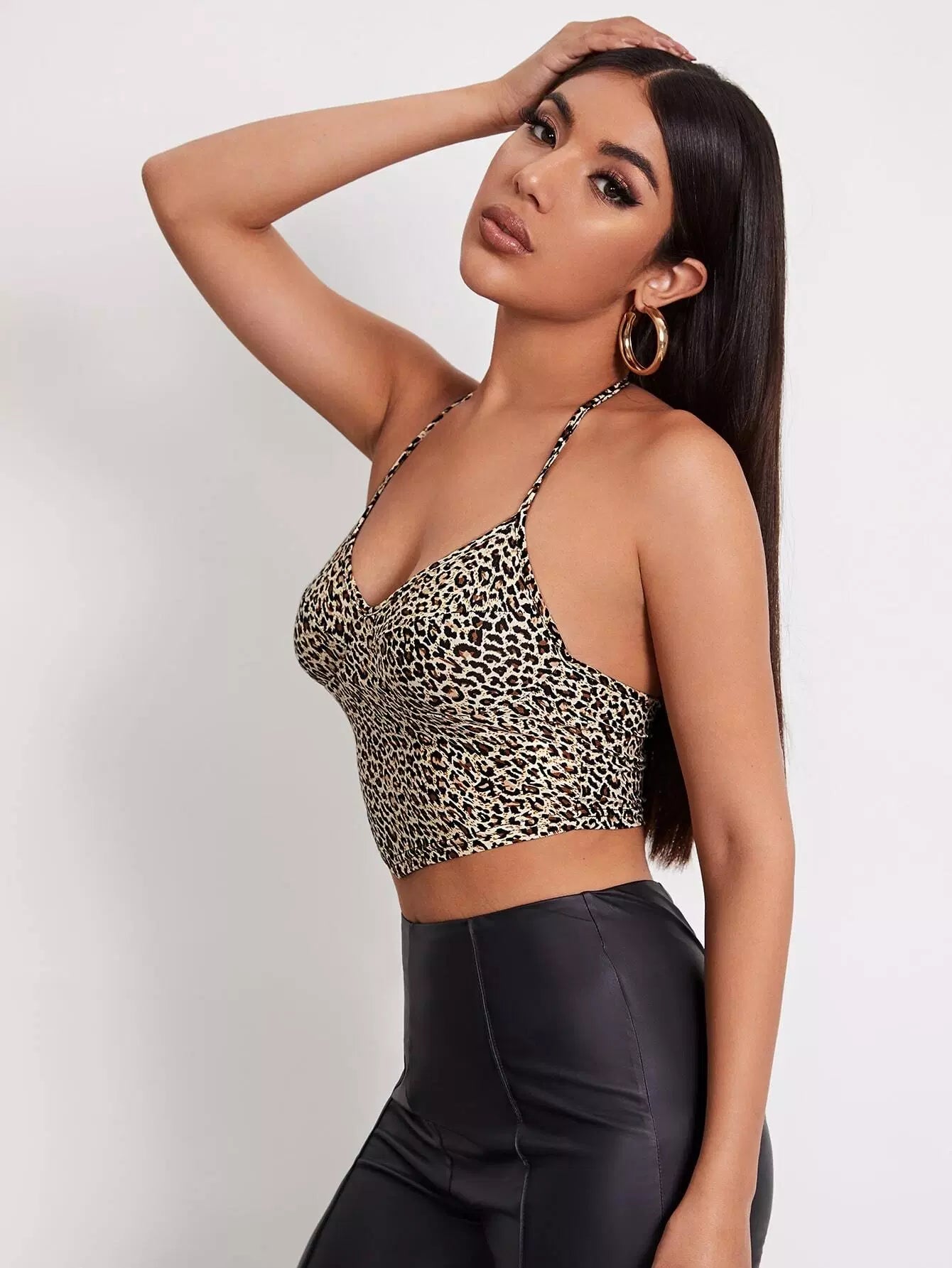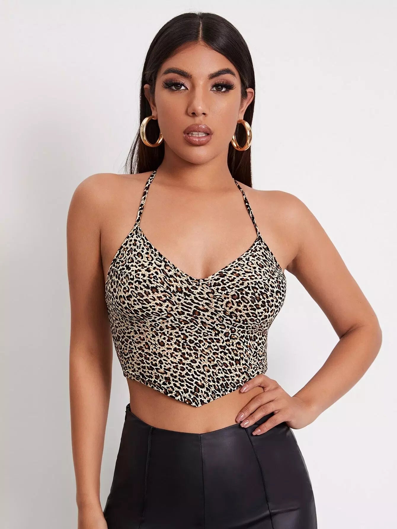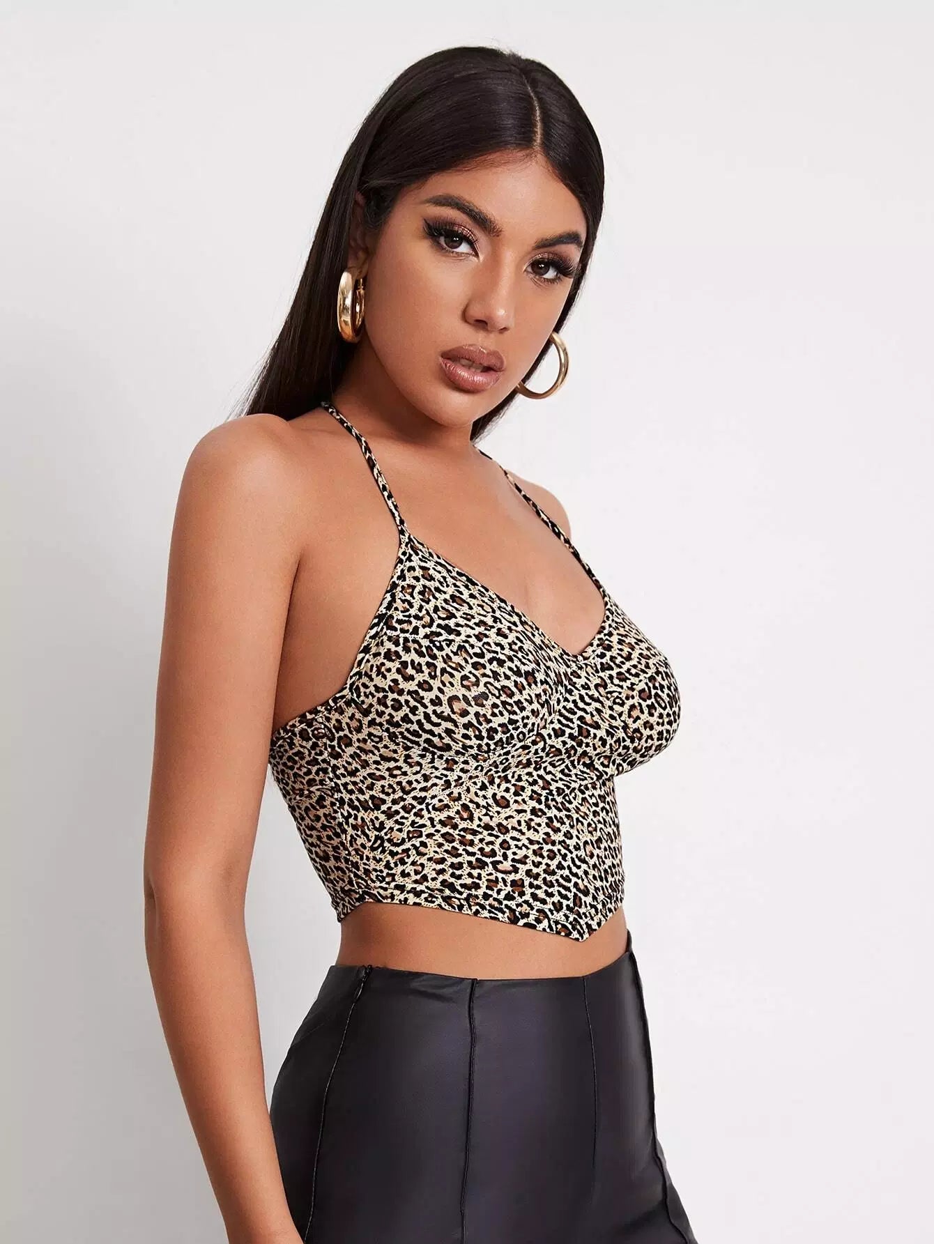 Self Tie Leopard Print Halter Top