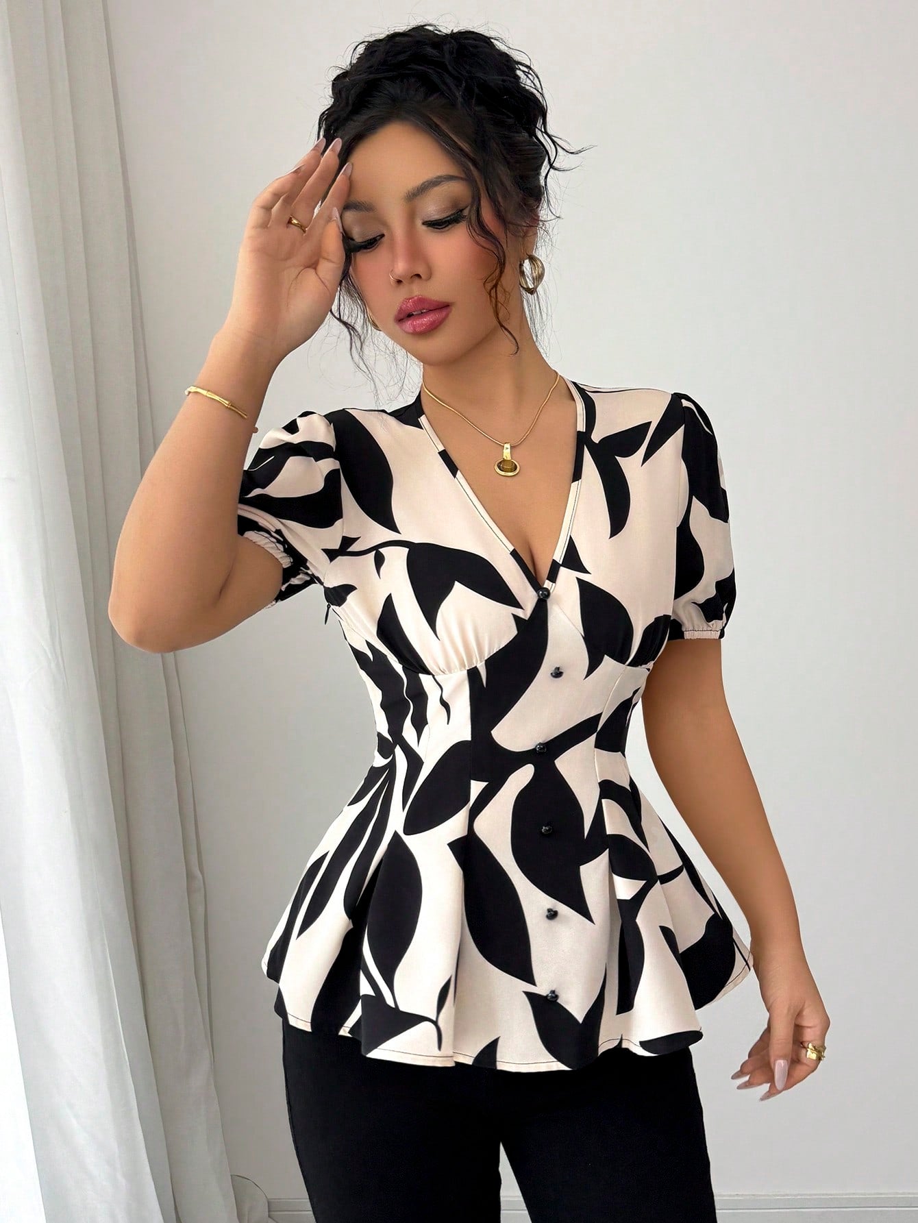 Selianne Women's Woven V-Neck Holiday Casual Summer Shirt