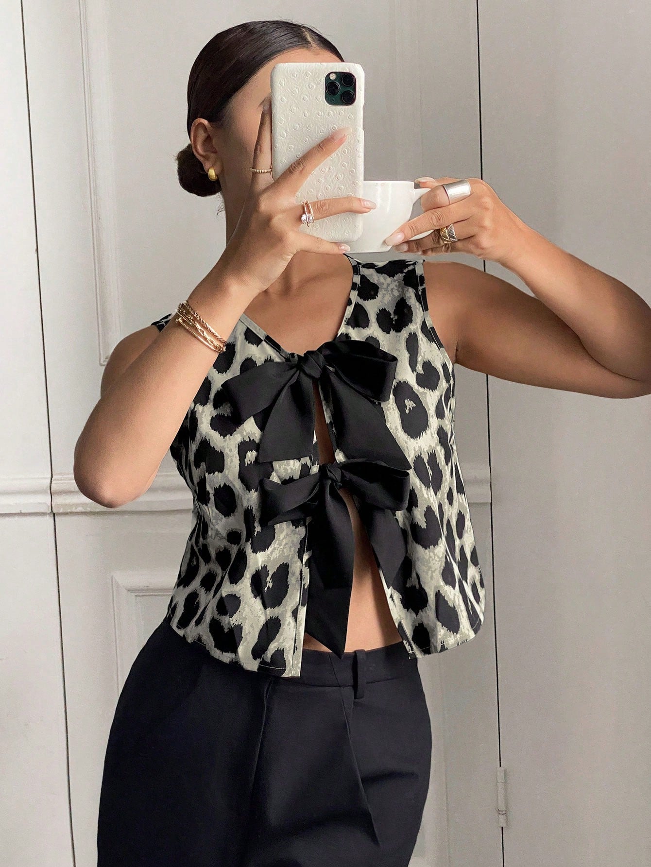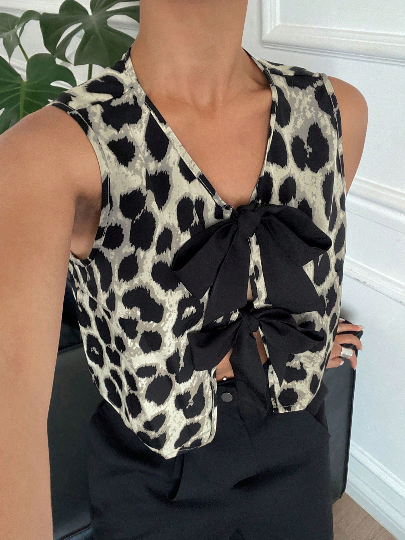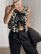 Serisse Women's Leopard Print Front Tie Sleeveless Fashion Blouse Summer Cheetah Casual