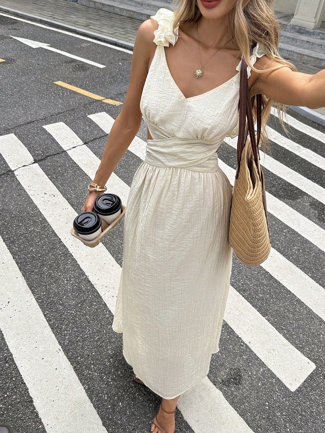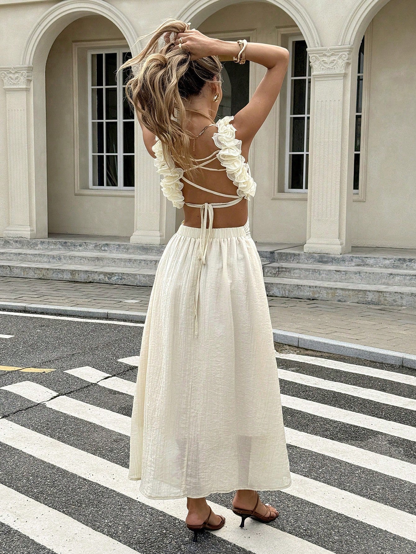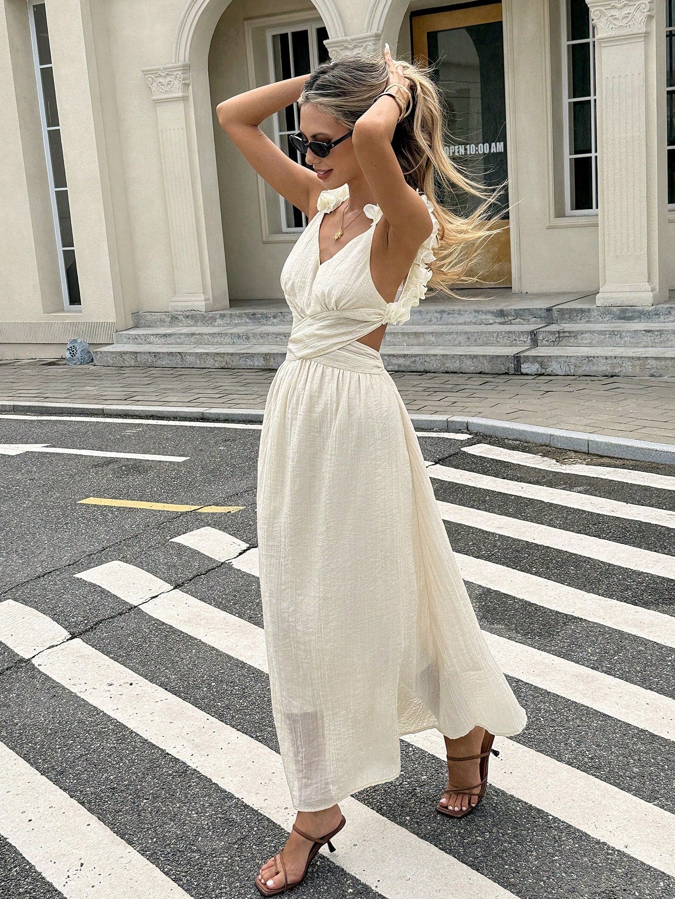 Serisse Women's Sleeveless Crossover Backless Midi Dress