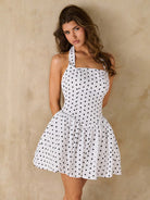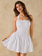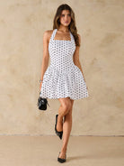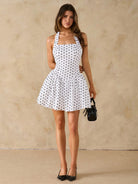 women SHEIN BAE Polka Dot Print Solid Color Square Neck Backless Square Neck Pleated Mini Dress Backless Dress Puff Sleeveless Dress Summer