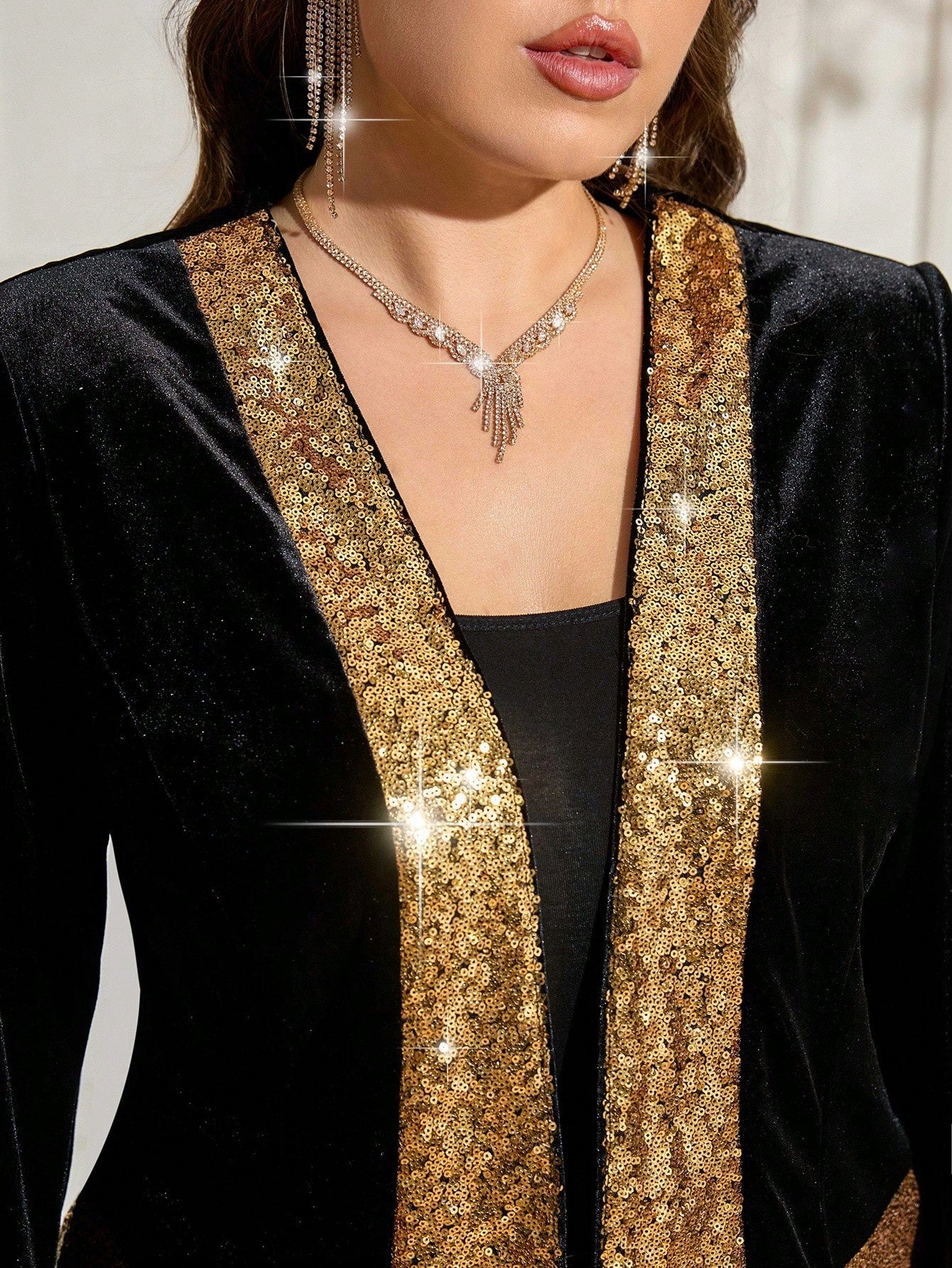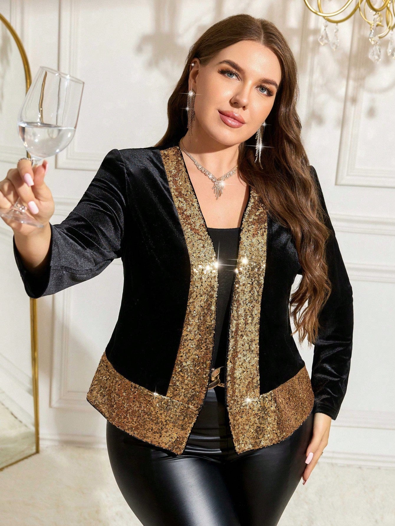women SHEIN Clasi Plus Size Sequin Patchwork Blazer