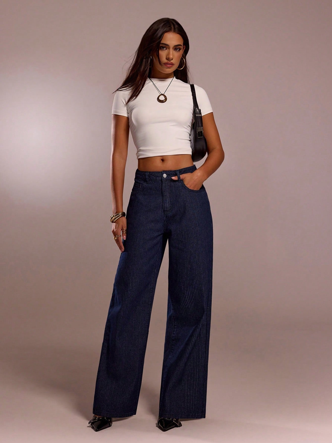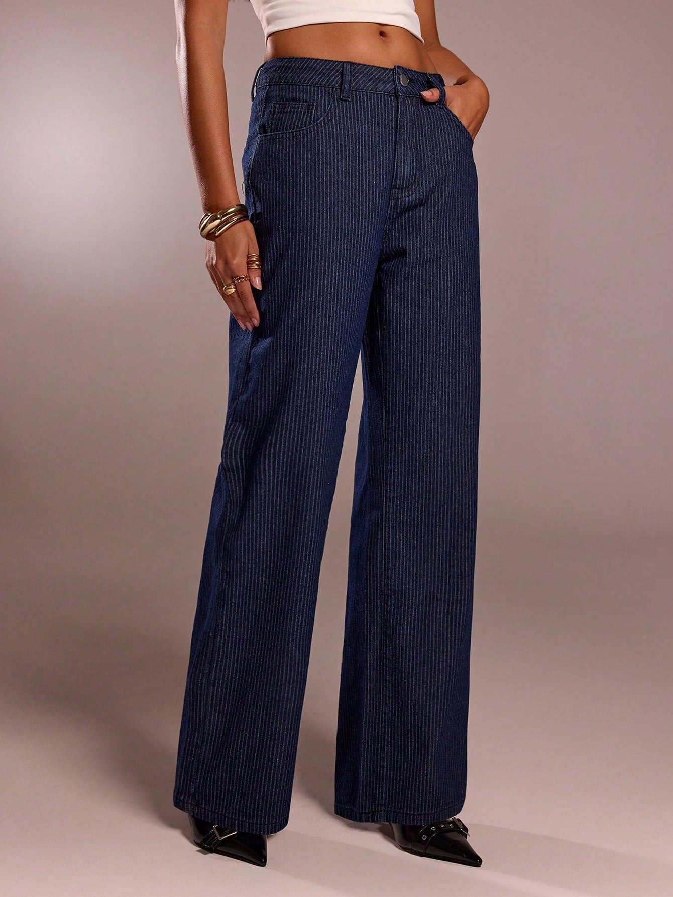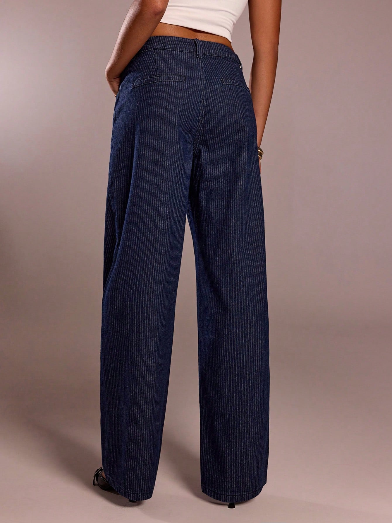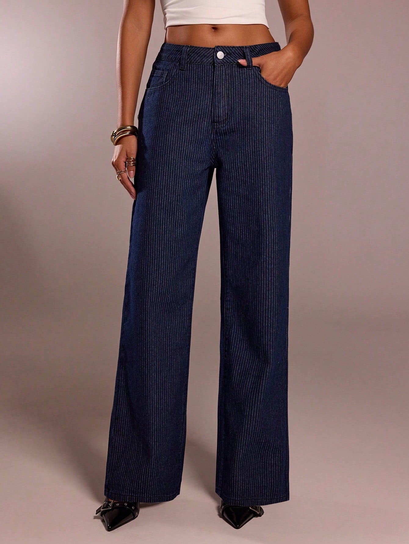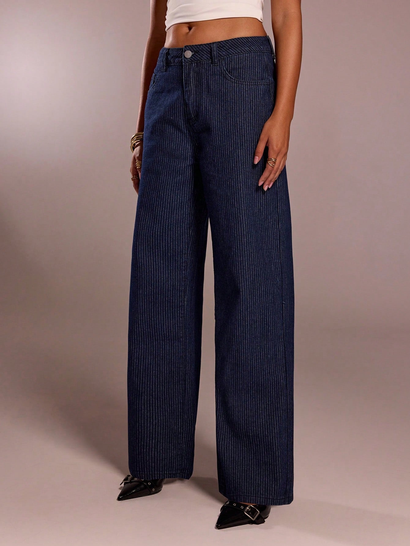 SHEIN Forever 21 Women's Summer New Loose Low Waist Casual Striped Denim Jeans