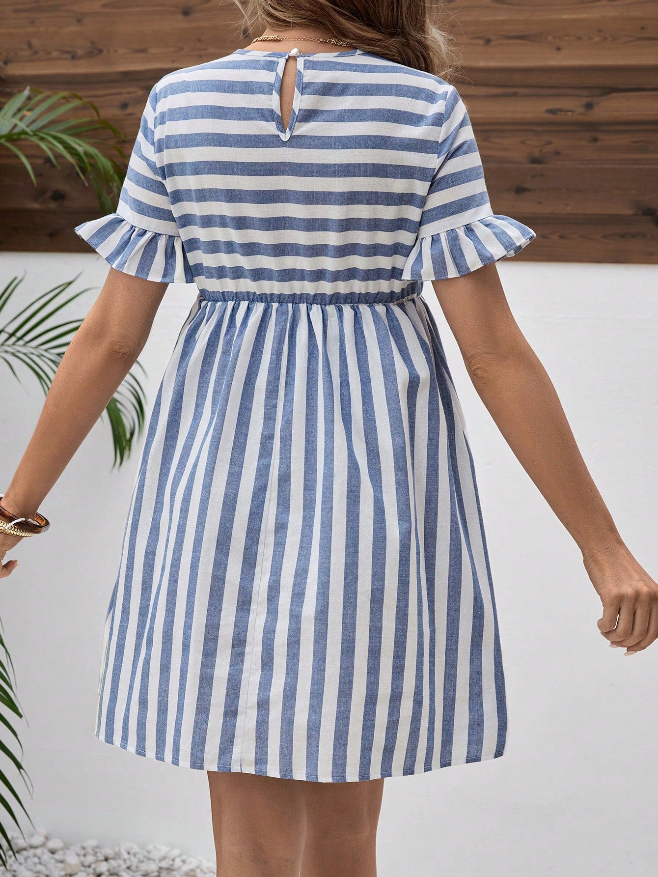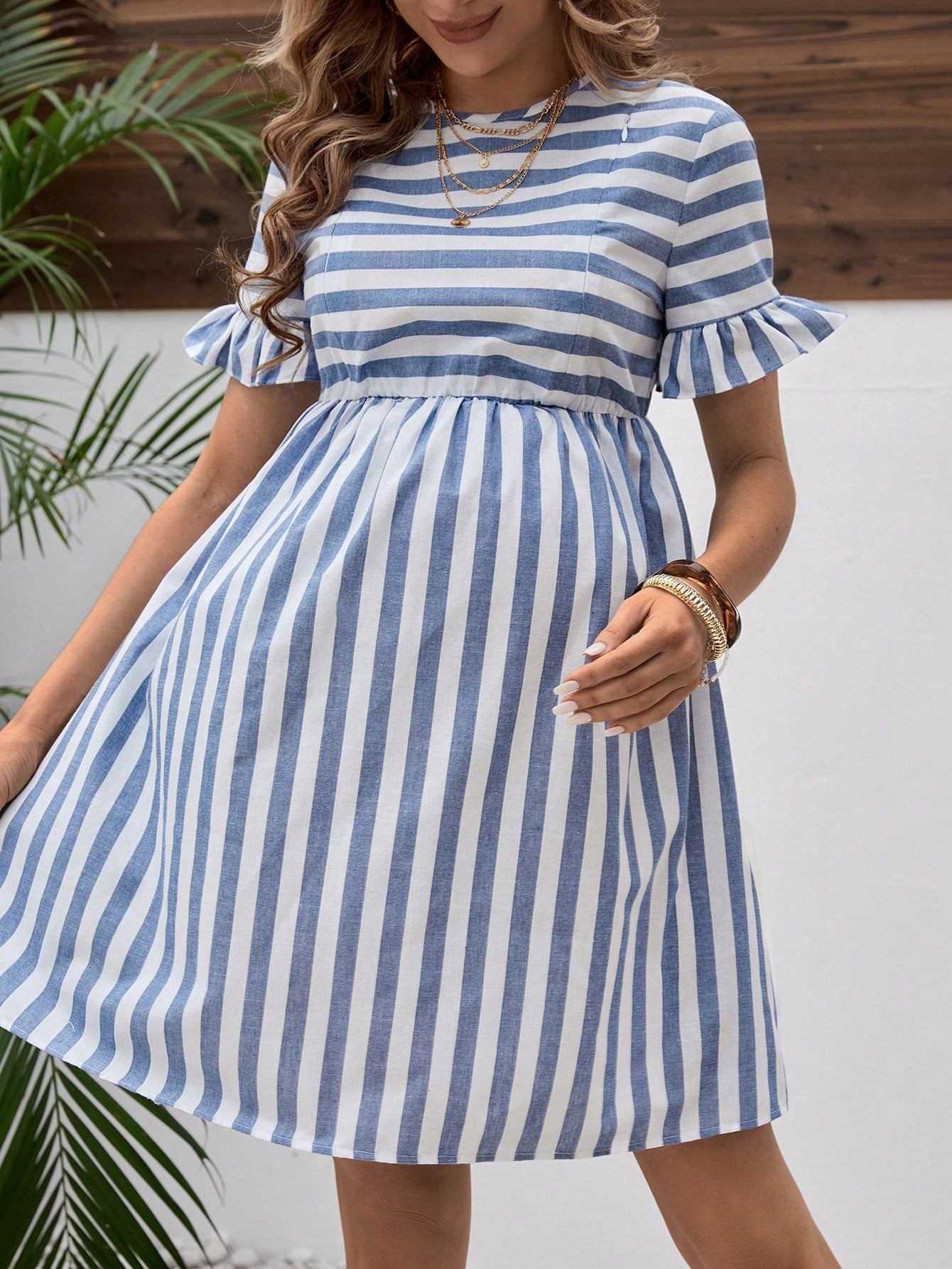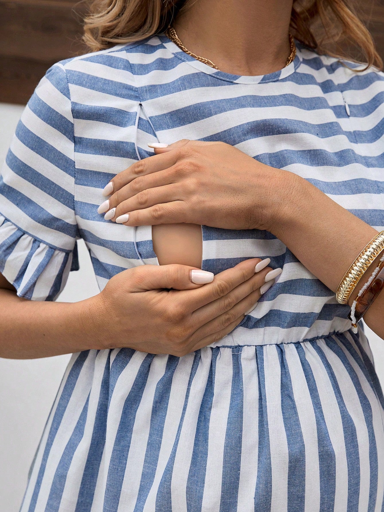 SHEIN Maternity Striped Dress With Flare Sleeves And Nursing Function