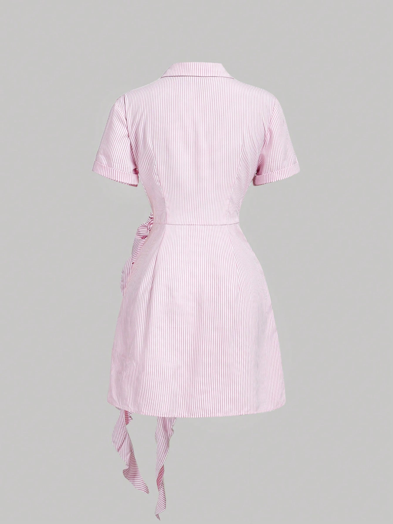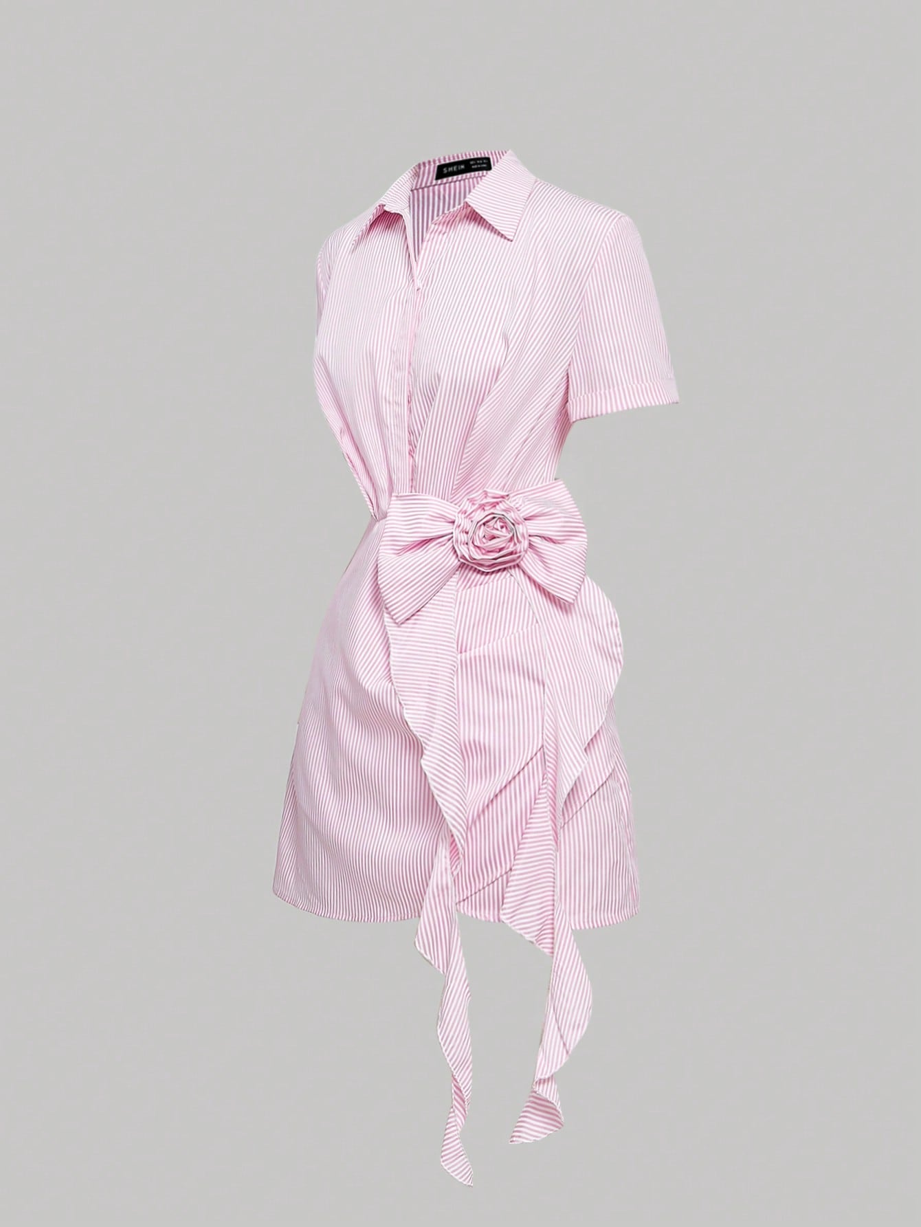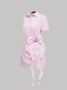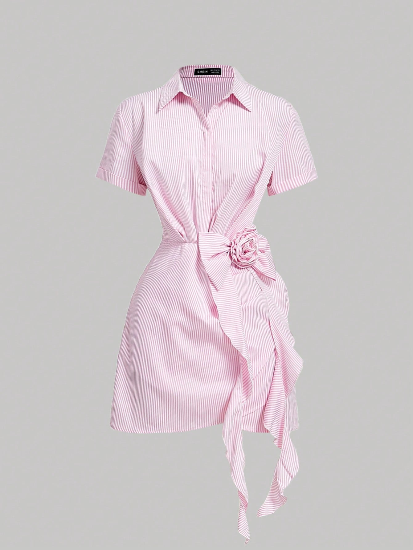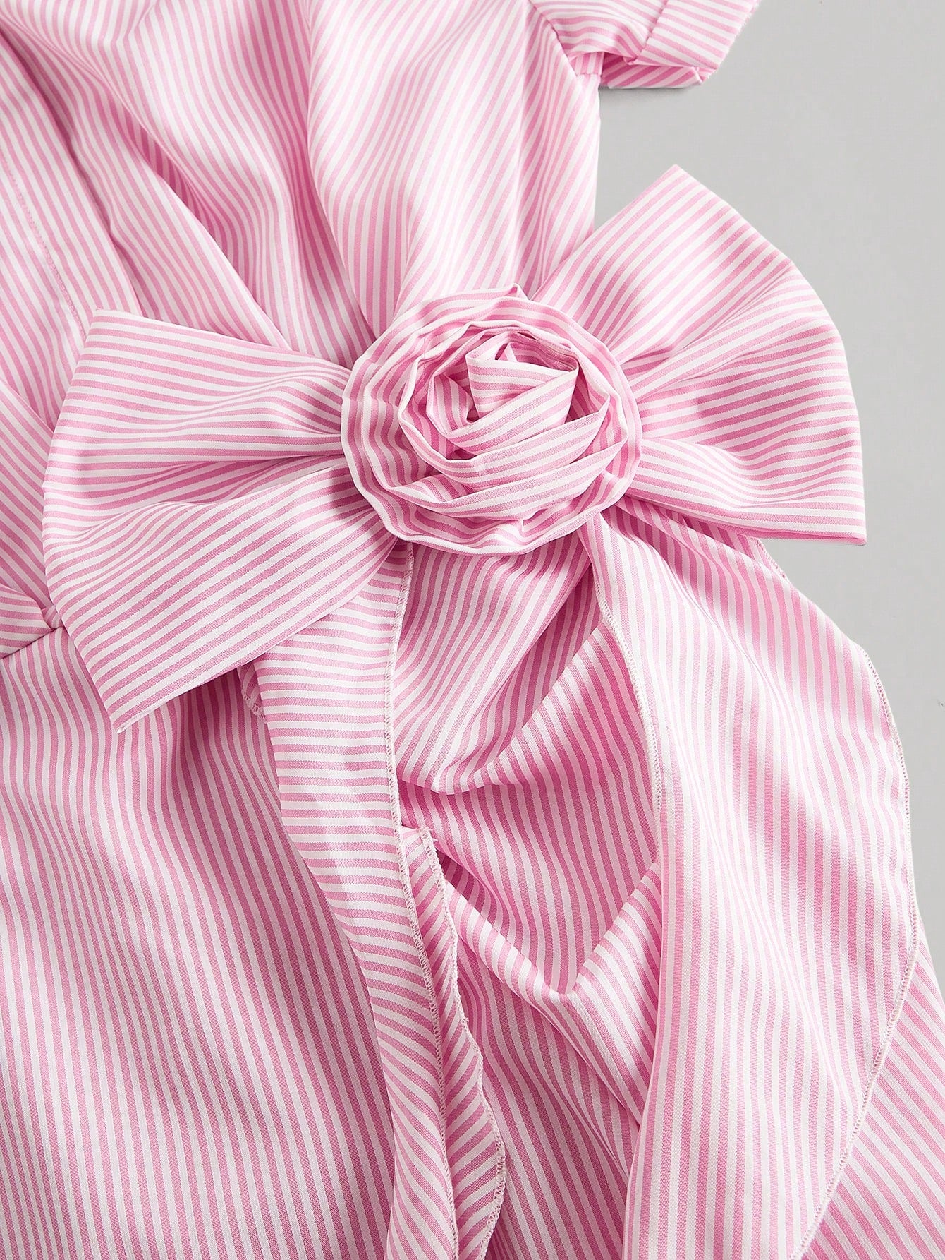 SHEIN MOD Women's Pink And White Striped 3D Flower Ruffle Bowknot Short Sleeve Shirt Dress,Country Concert
