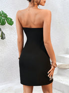 SHEIN VCAY Holiday Knitted Solid Color Mini Strapless Bodycon Dress For Women