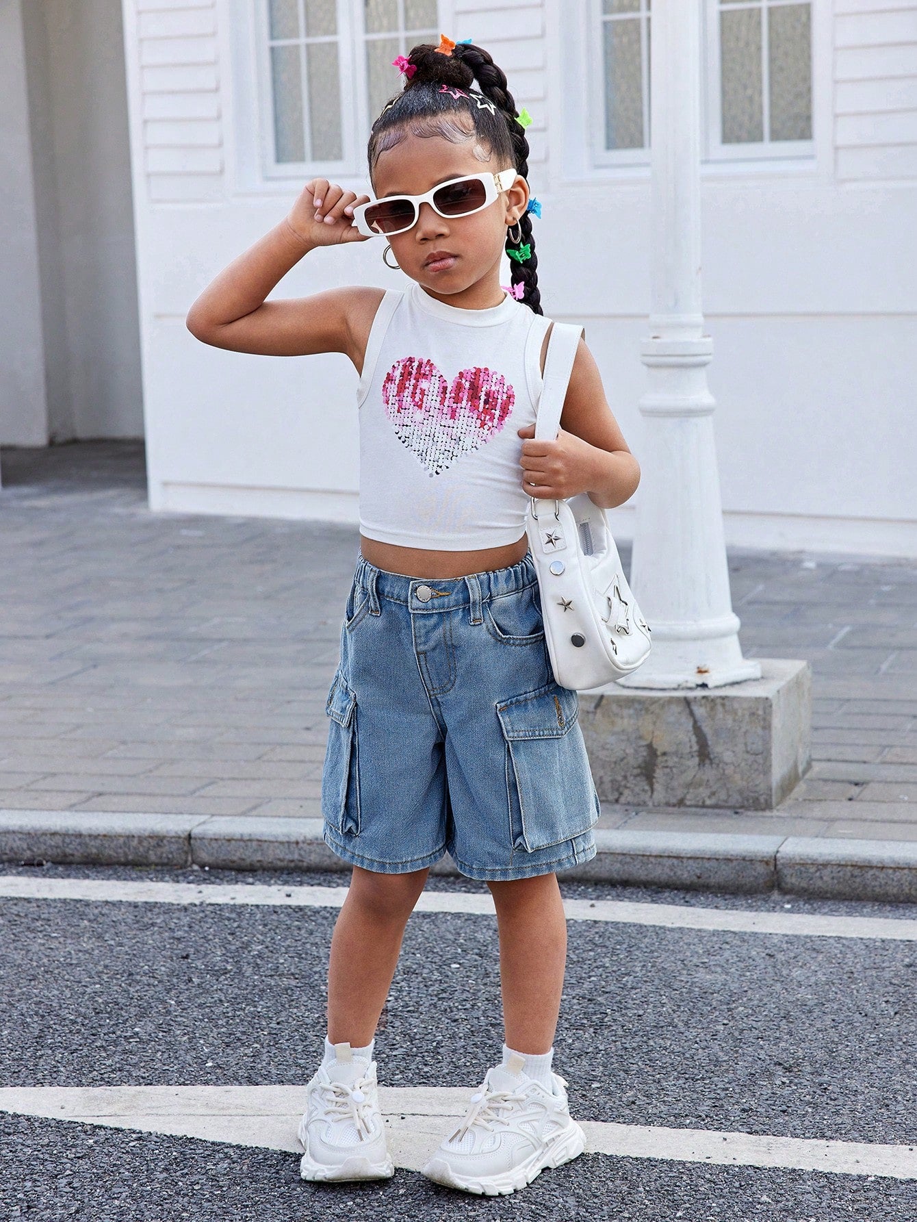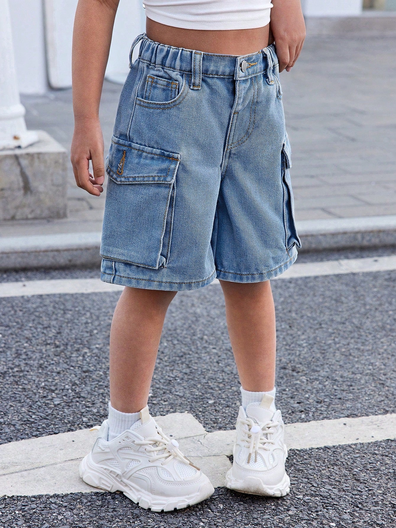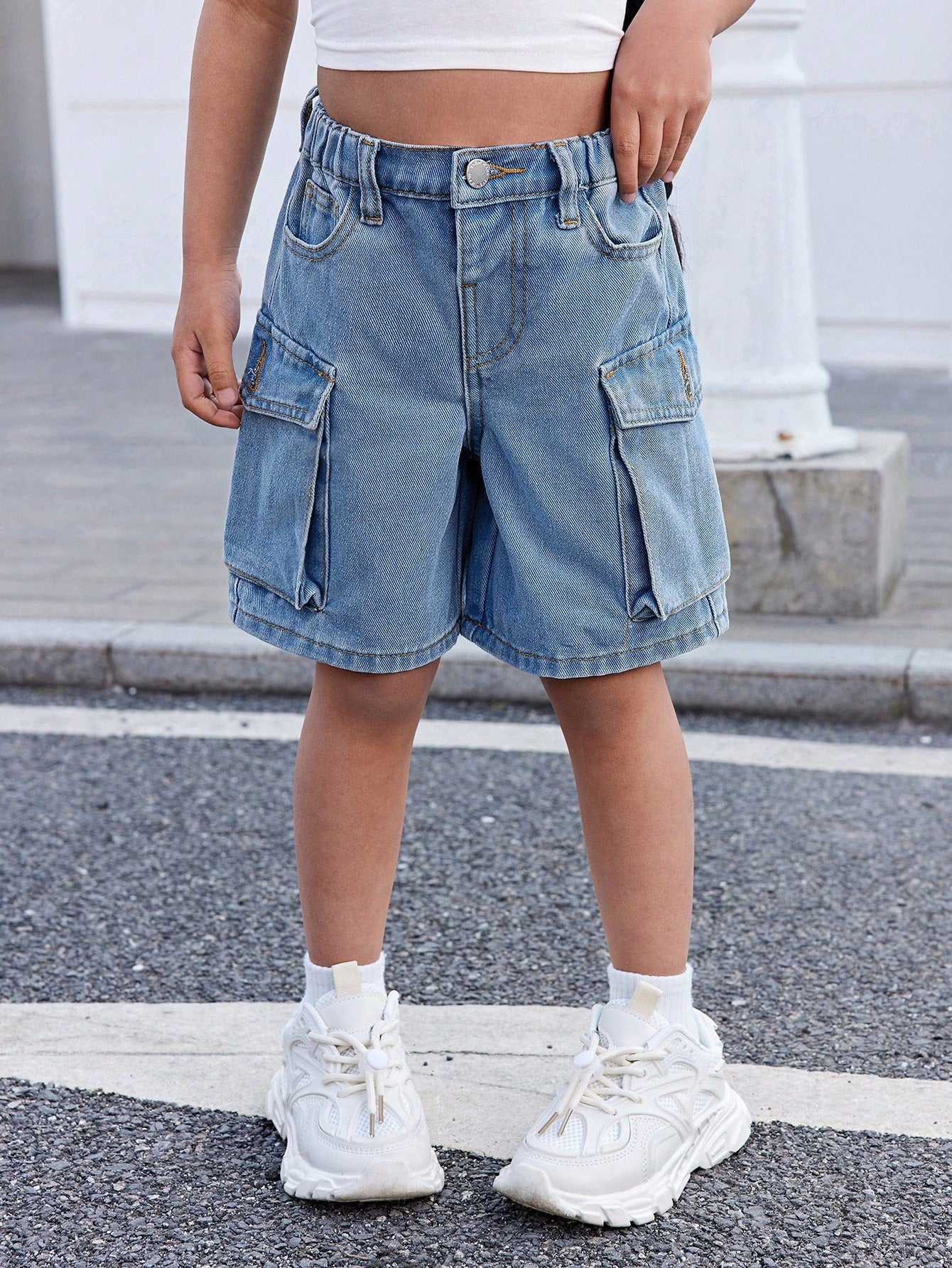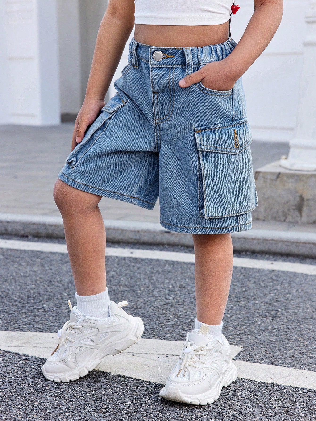 kids SHEIN Young Girl Y2K Blue Denim Loose Cargo Shorts