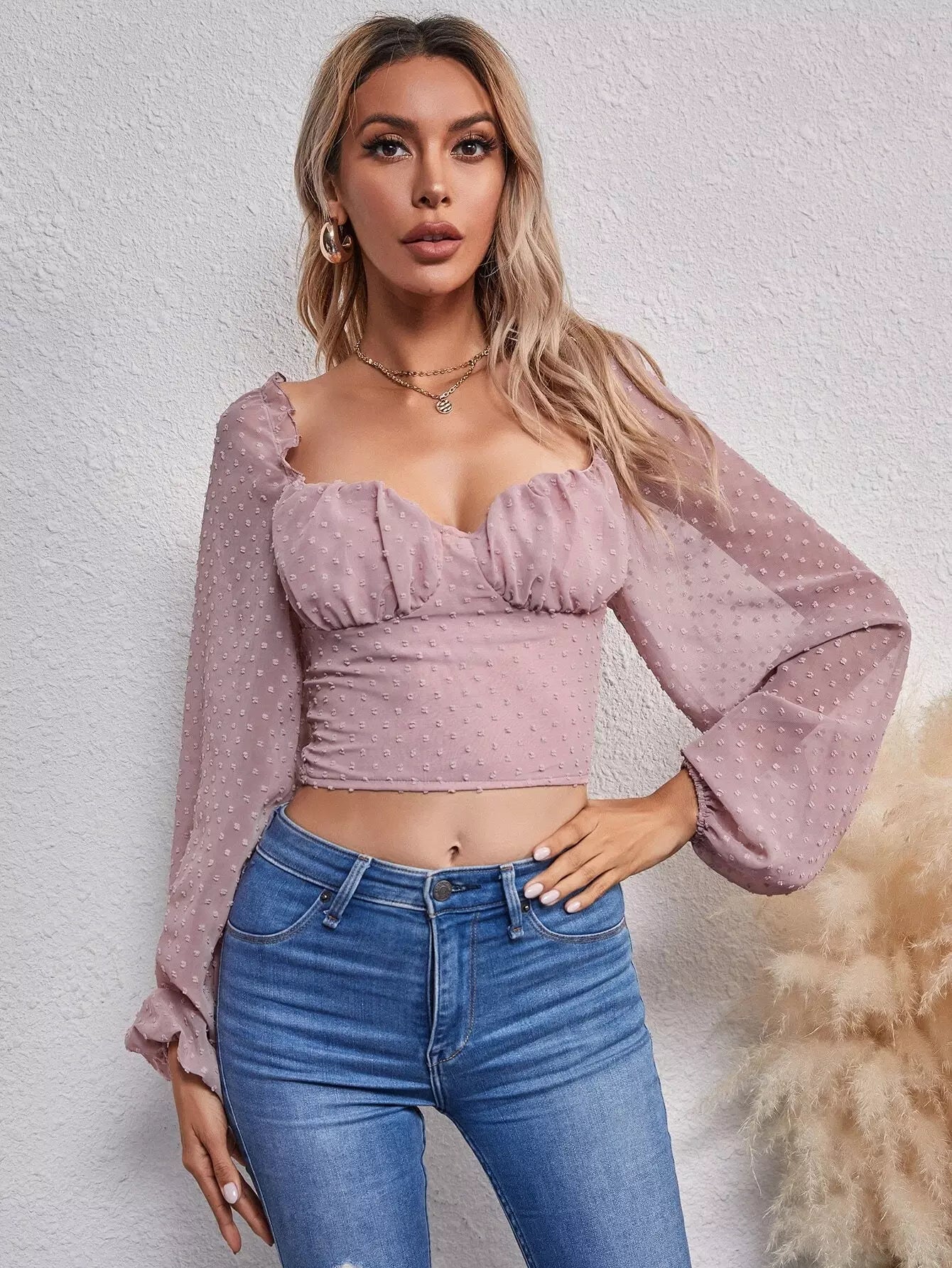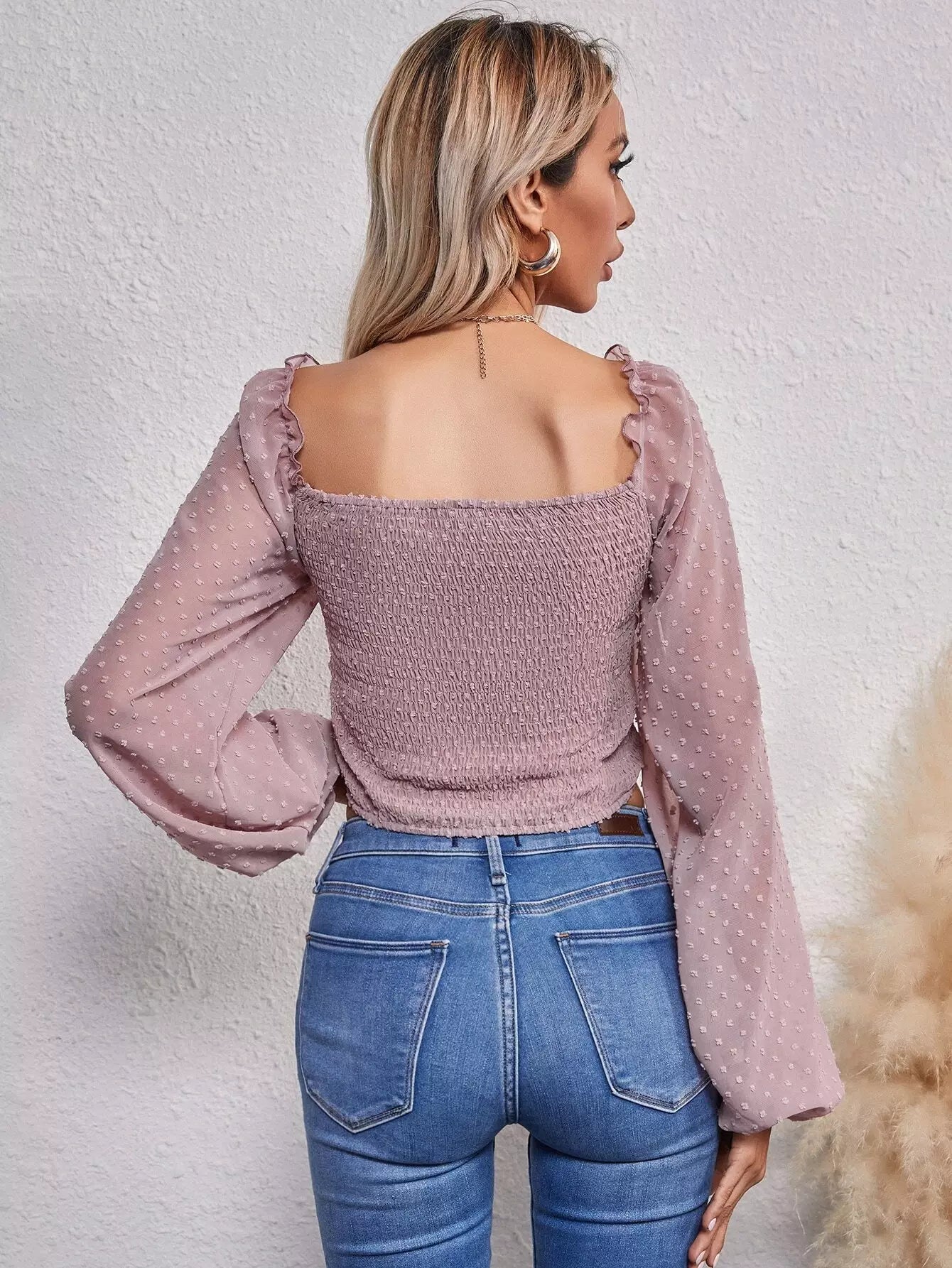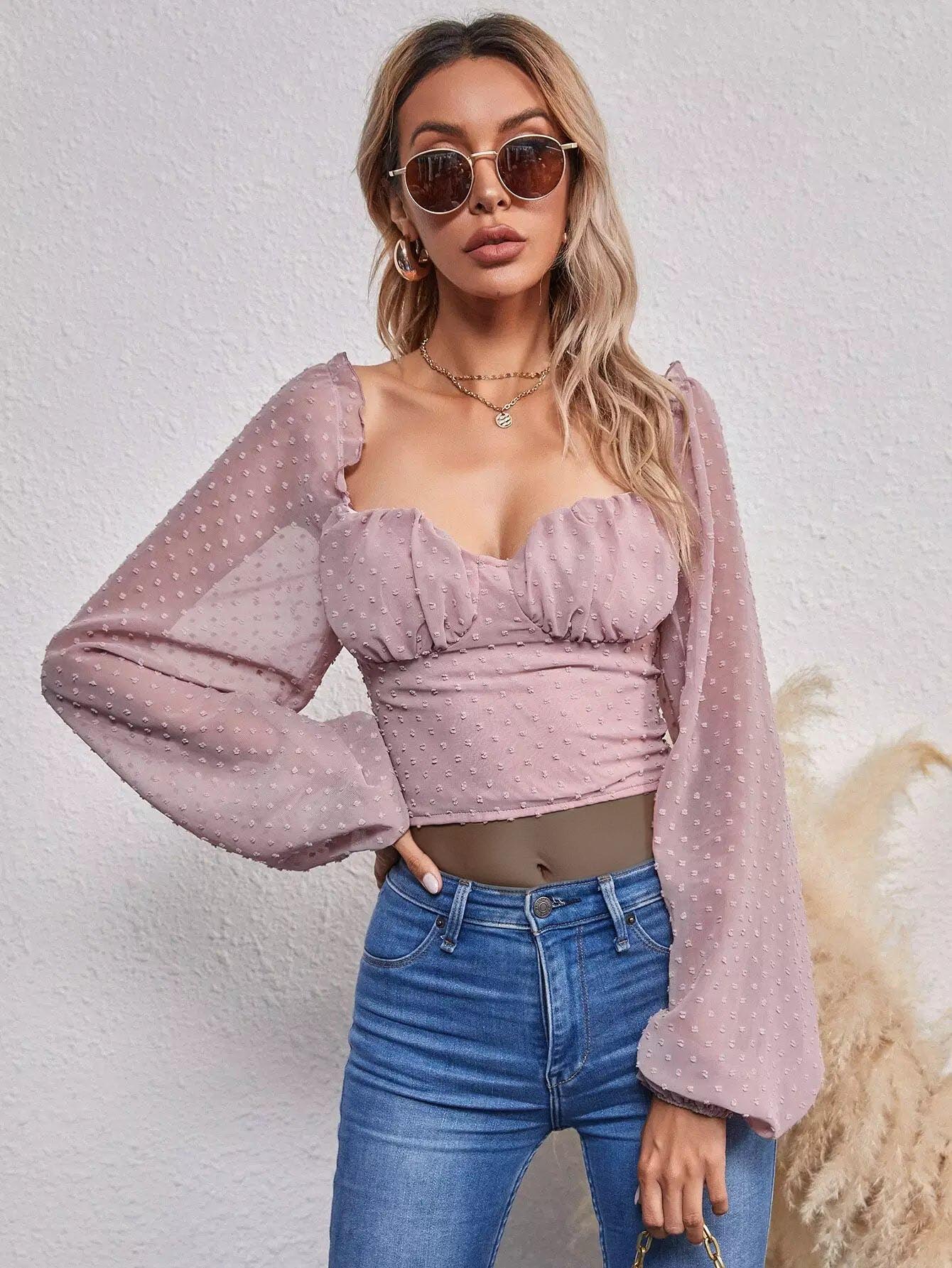 Shirred Back Ruched Bust Swiss Dot Top