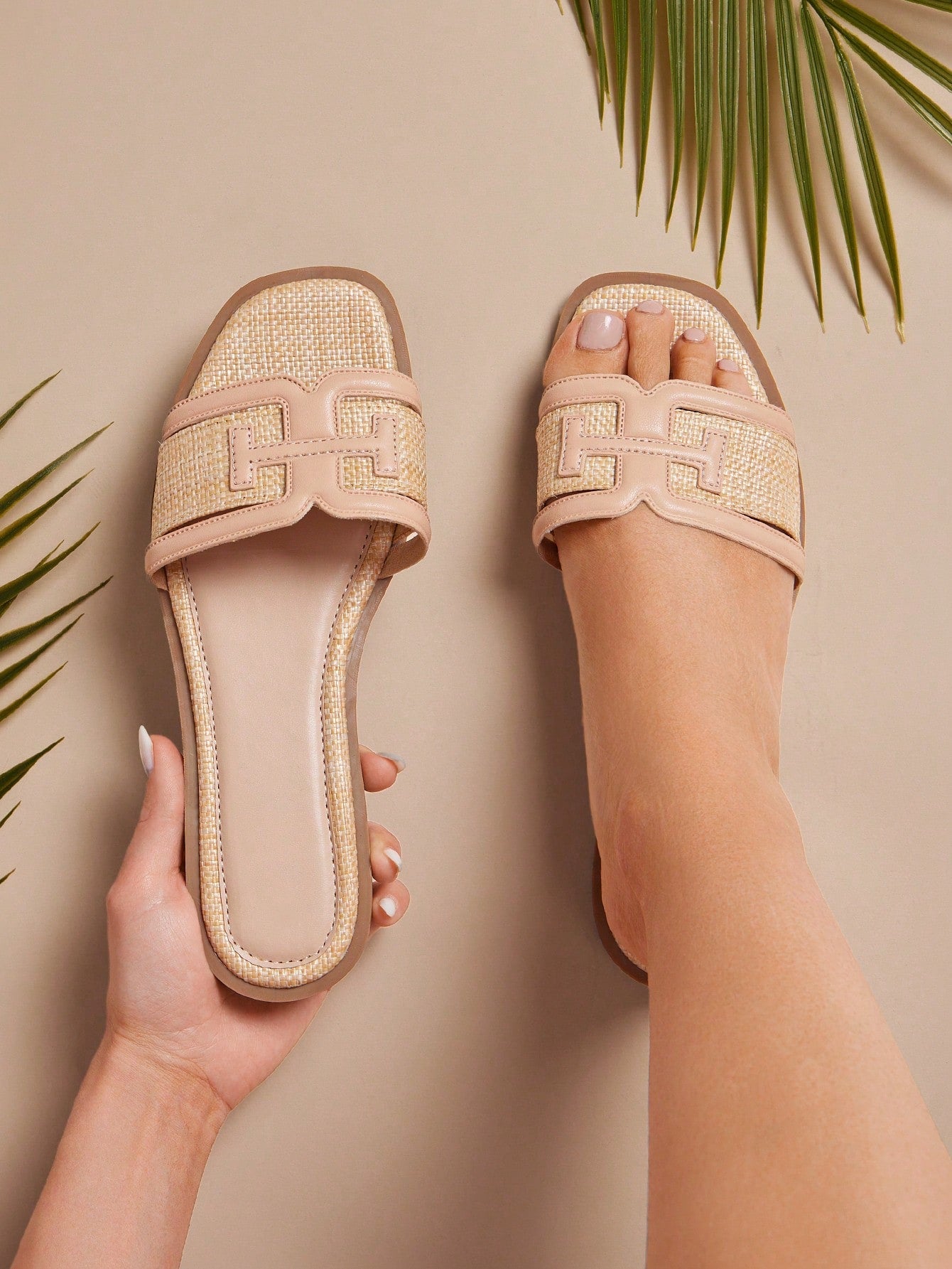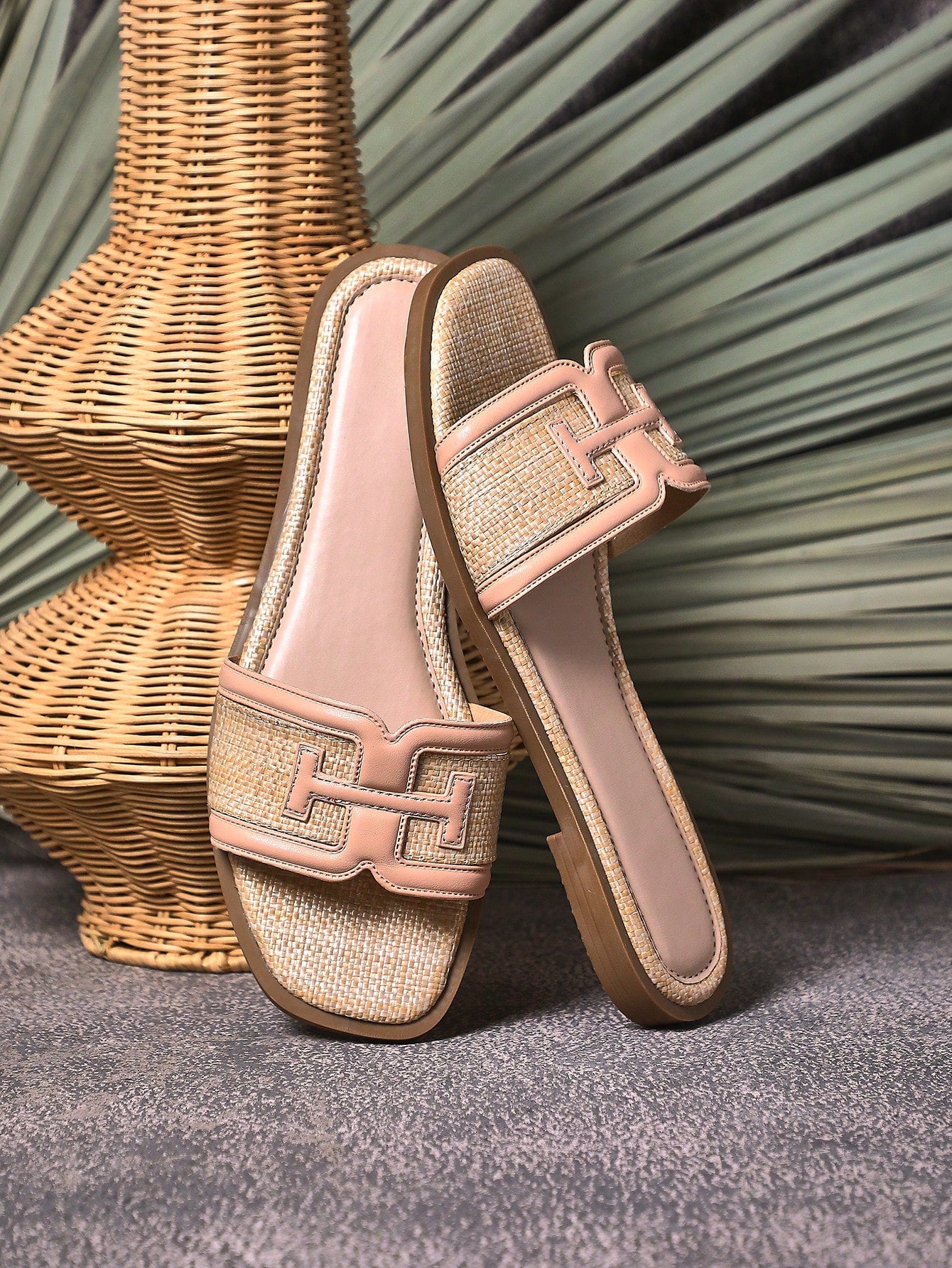 SHUZIA Women's Strap T Designed Flat Slip On Raffia Sandals