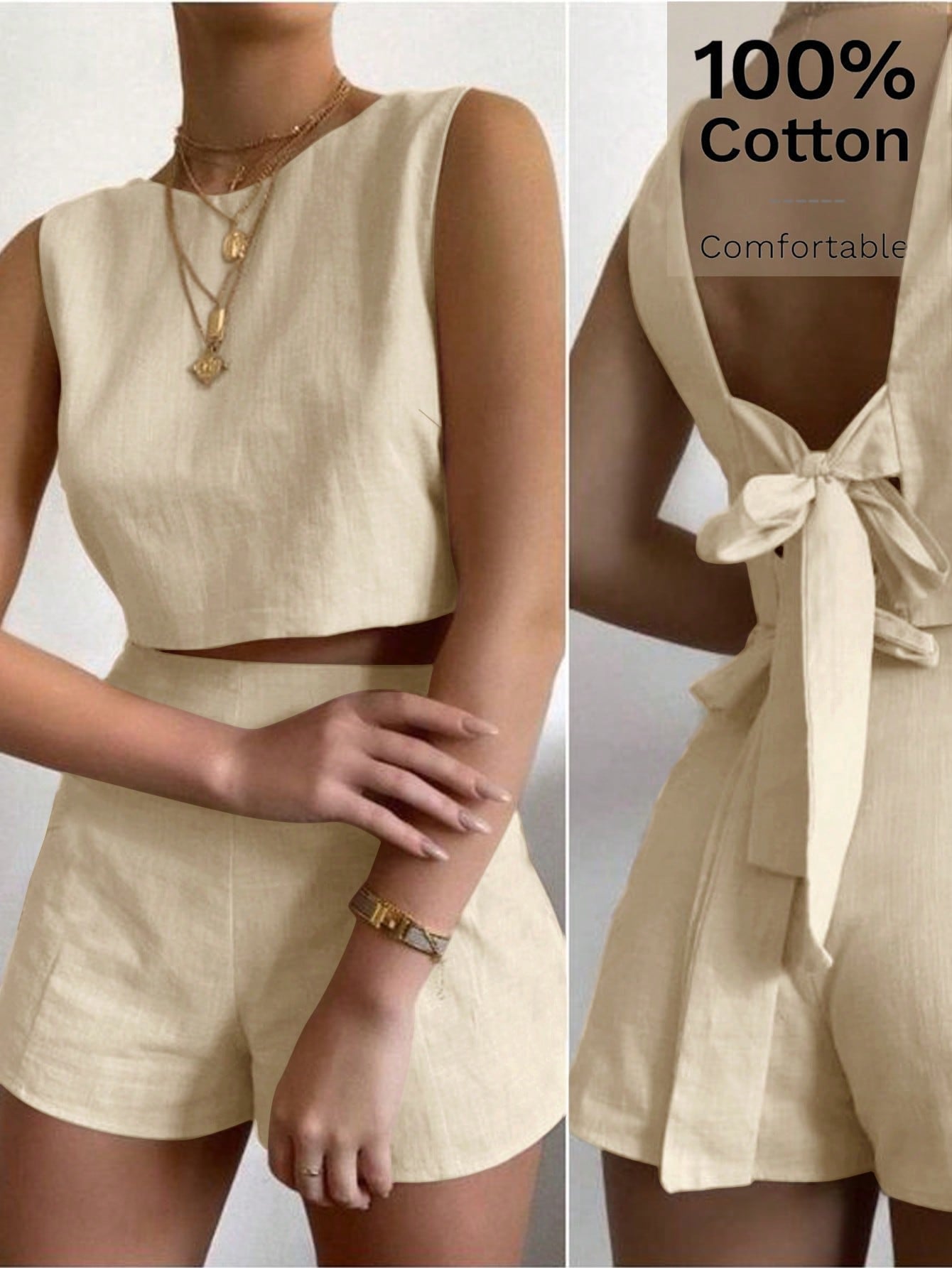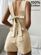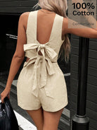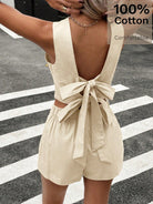 Siren Gaze 2pcs Women Summer Casual Solid Color Backless Knotted Crop Top And Shorts Set Brown