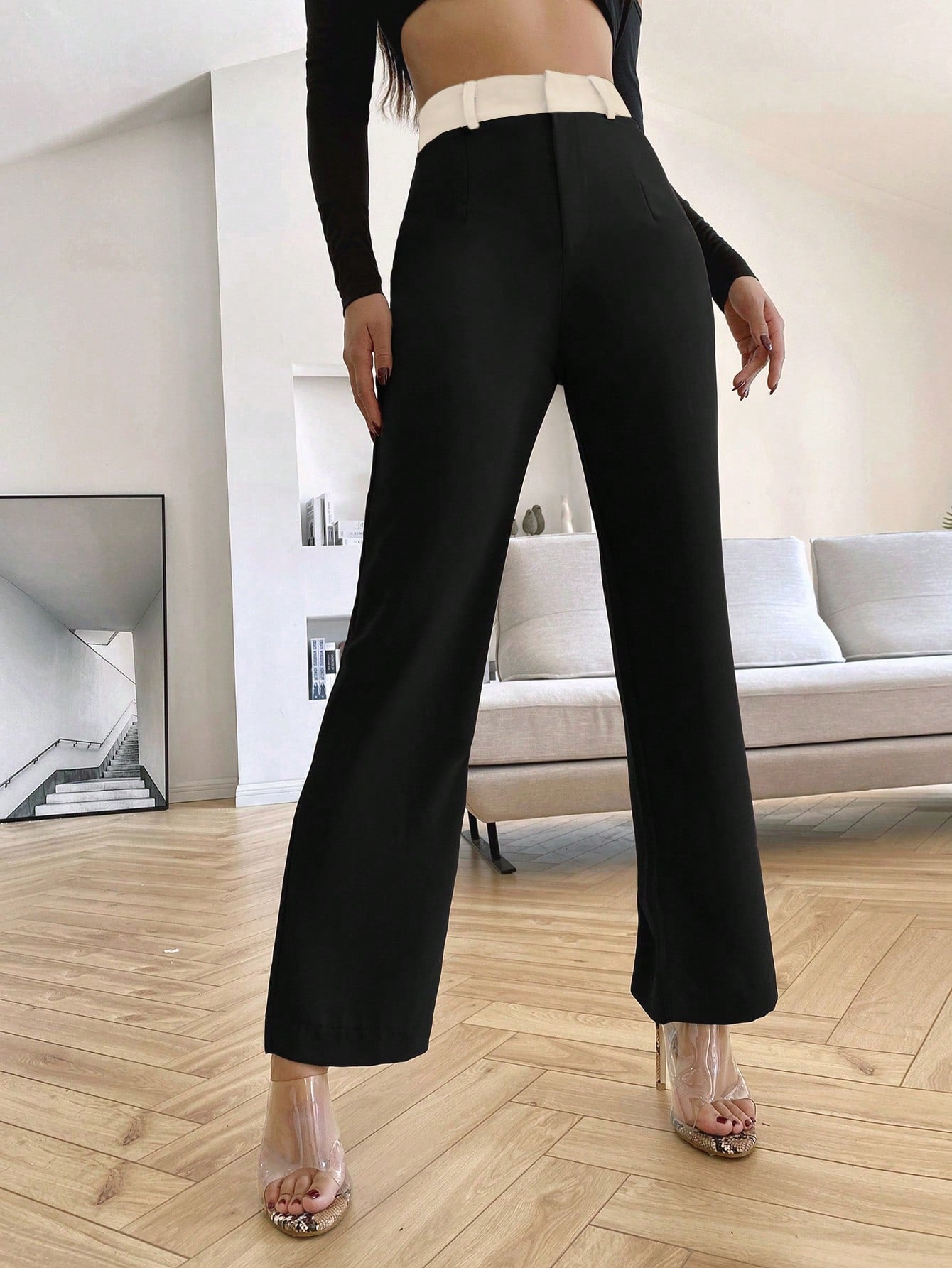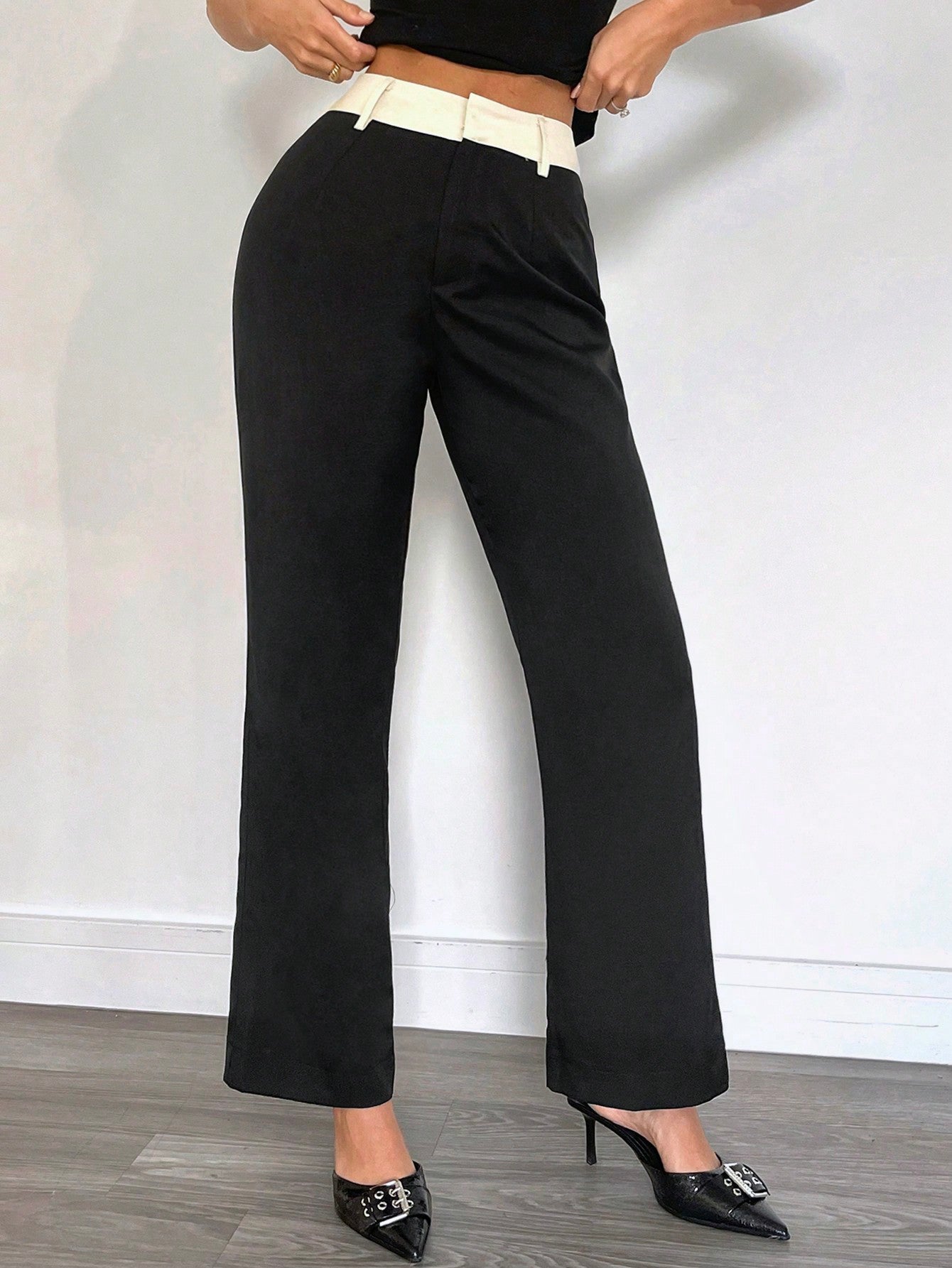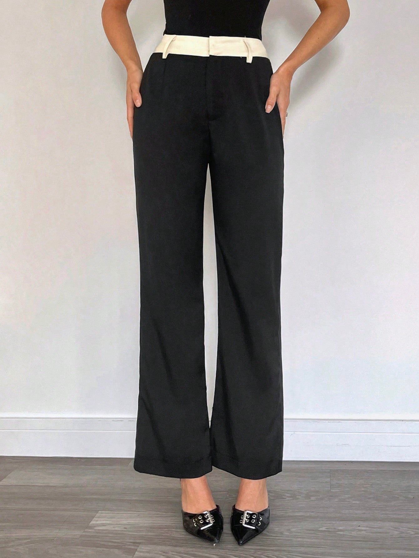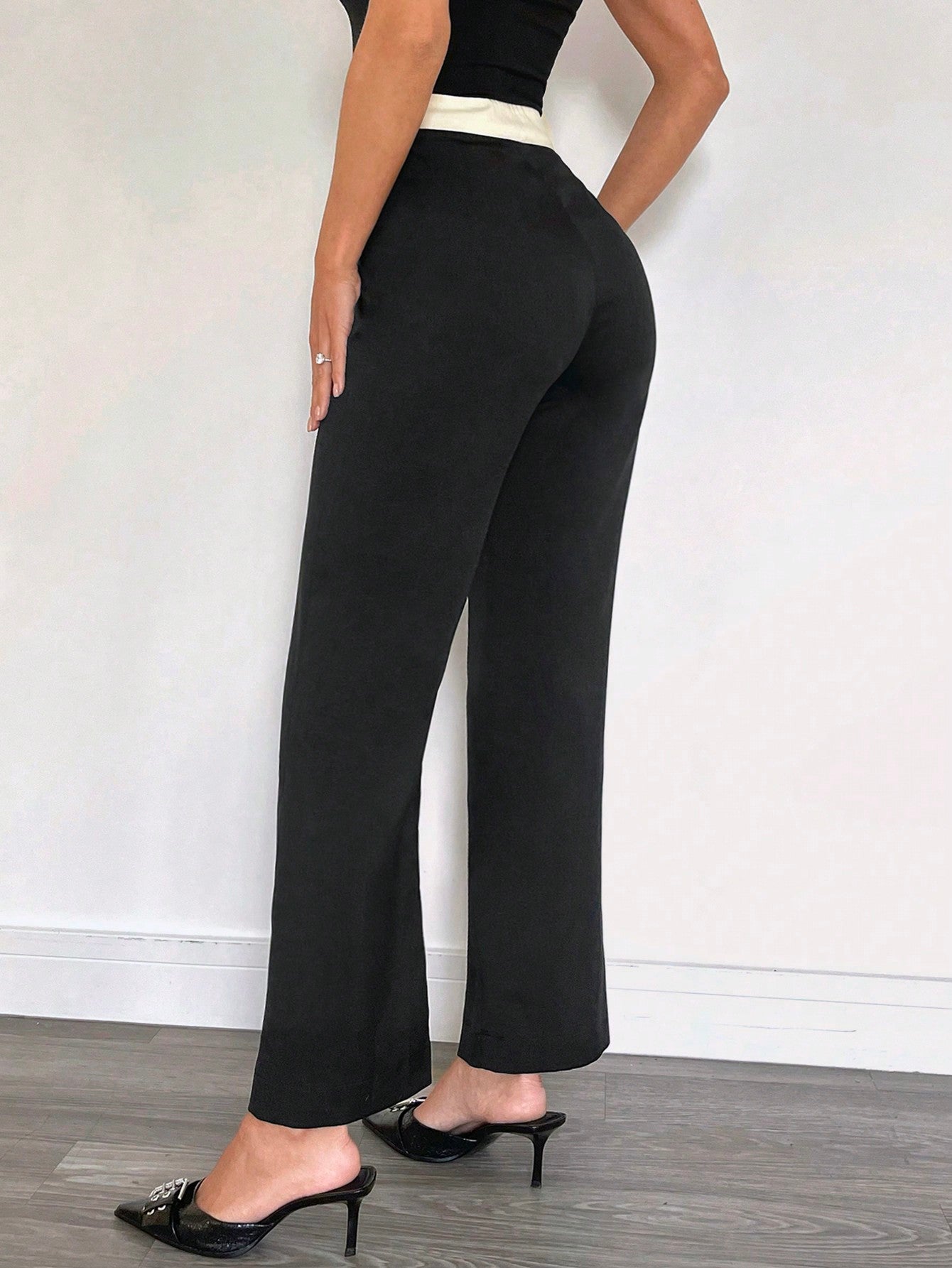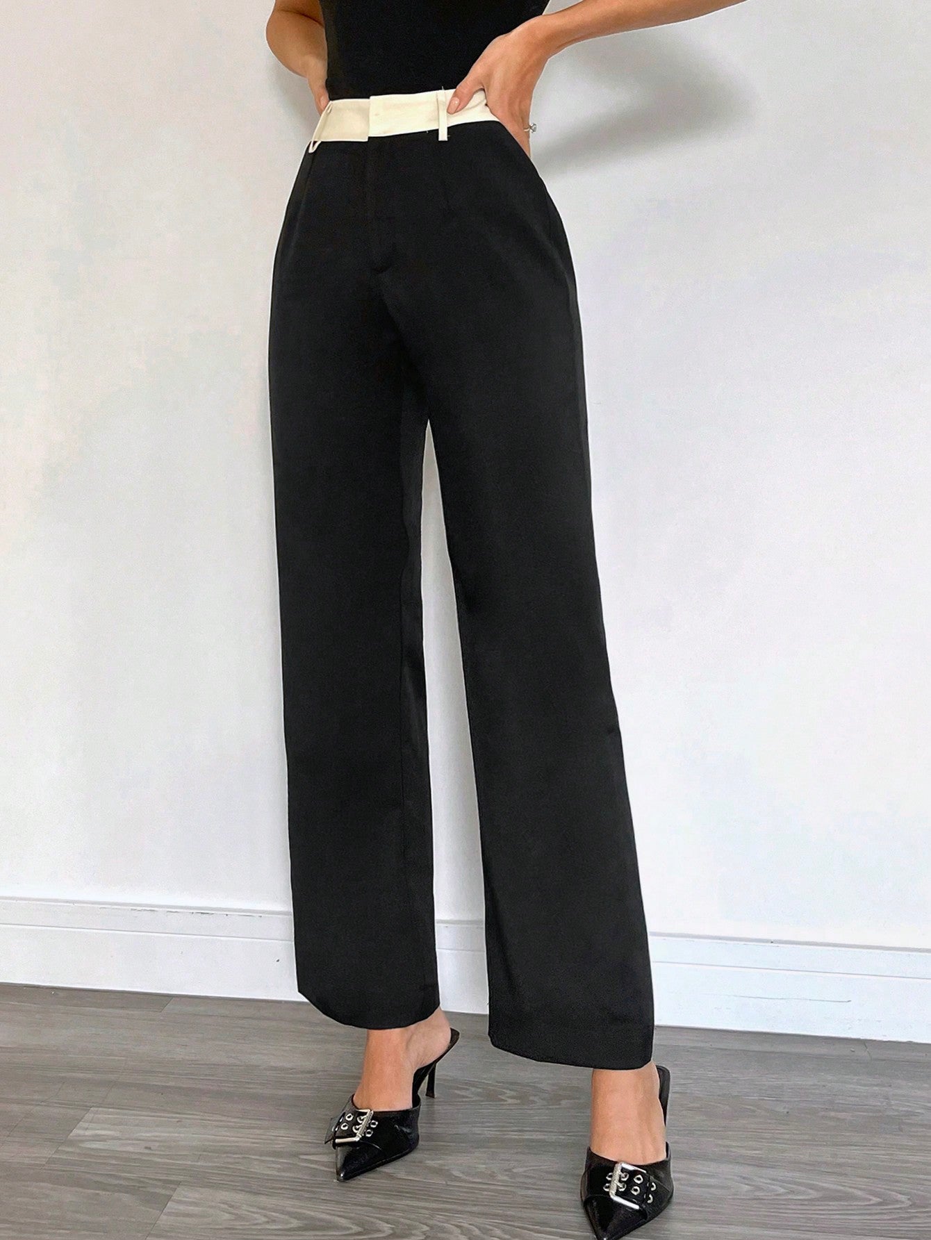 Siren Gaze Women's Contrast Color Waistband Casual Suit Trousers