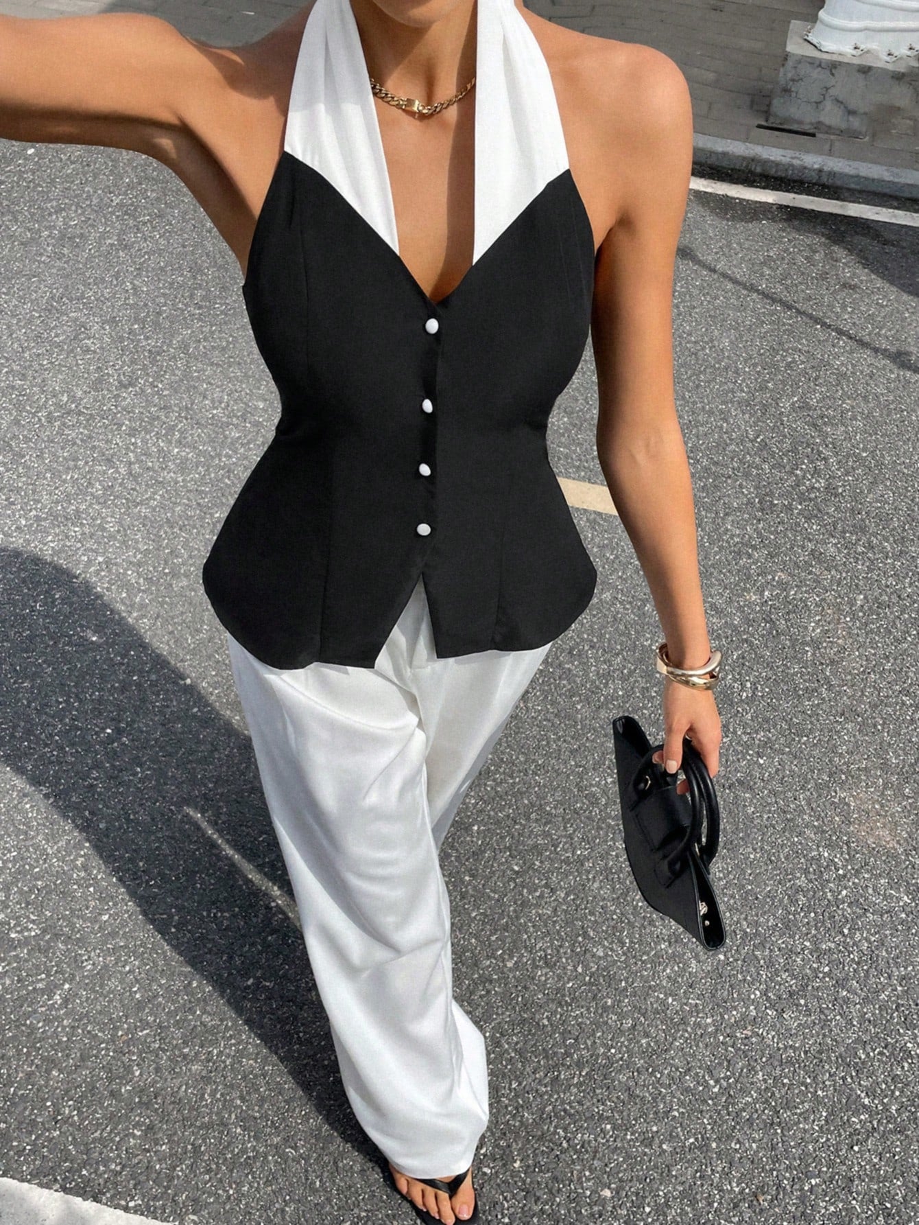 Siren Gaze Women's Elegant Commuter Black & White Halter Blouse