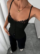 Siren Gaze Women's Summer Contrast Lace Front Button Camisole Black Casual