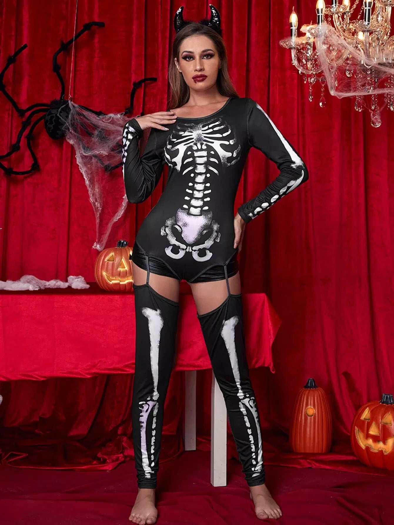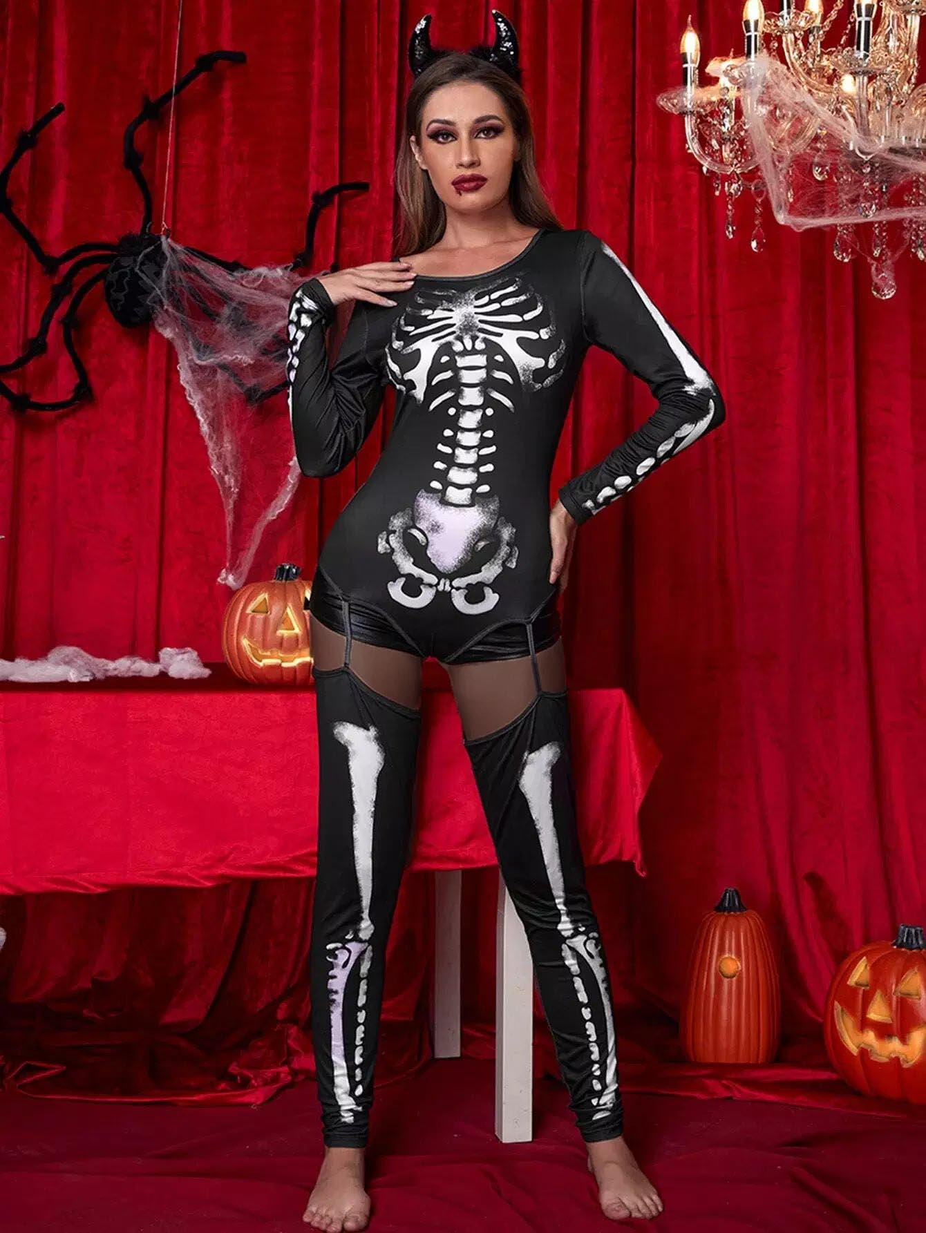 Skeleton Print Halloween Costume Bodysuit