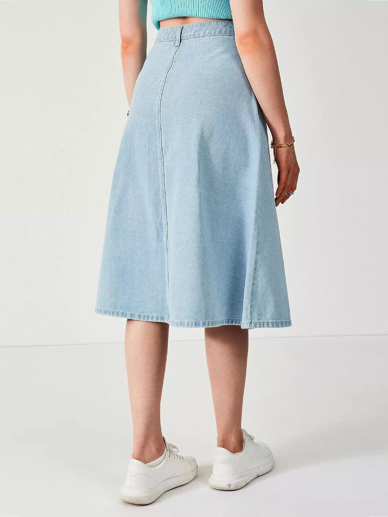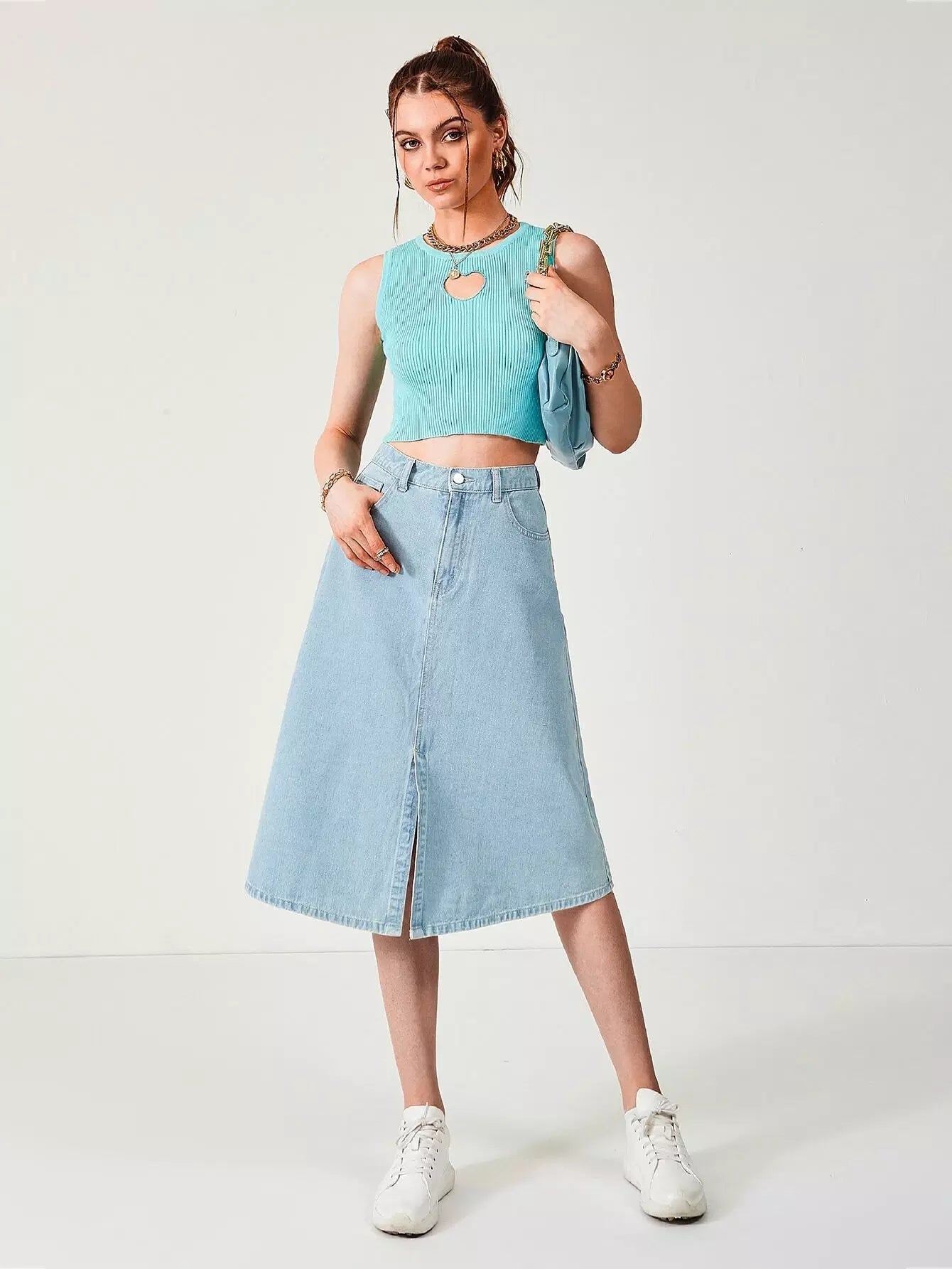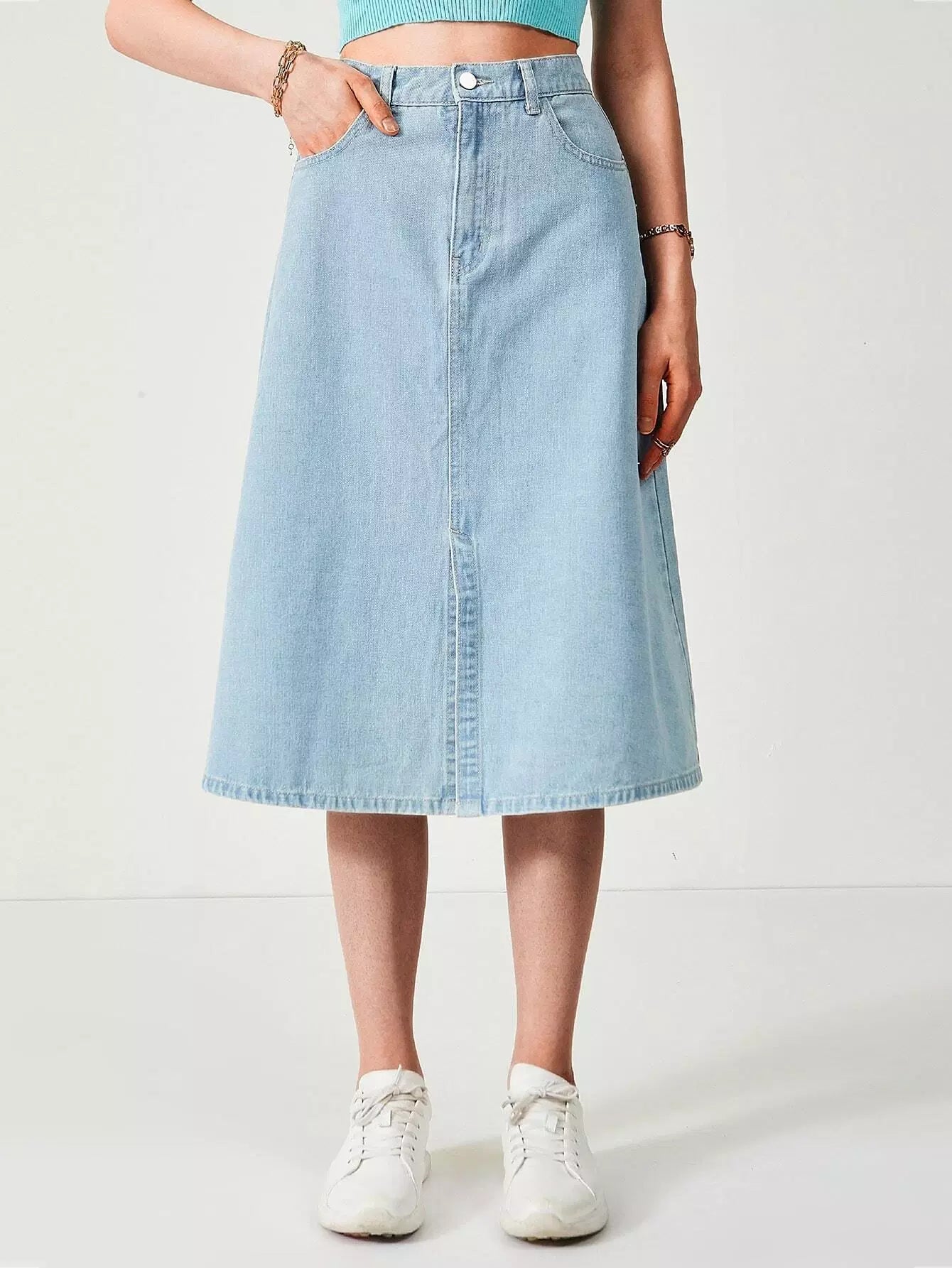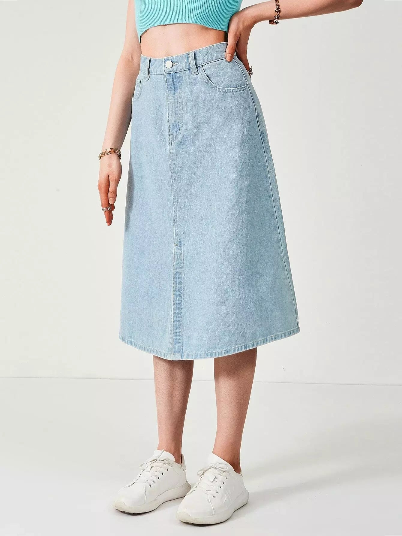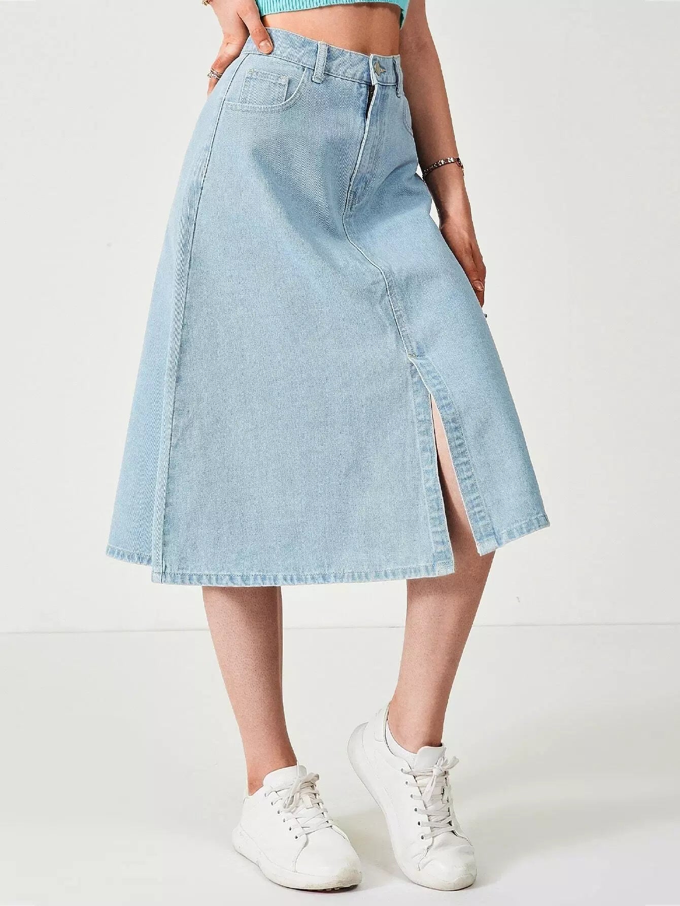 Slant Pocket Split Denim Skirt