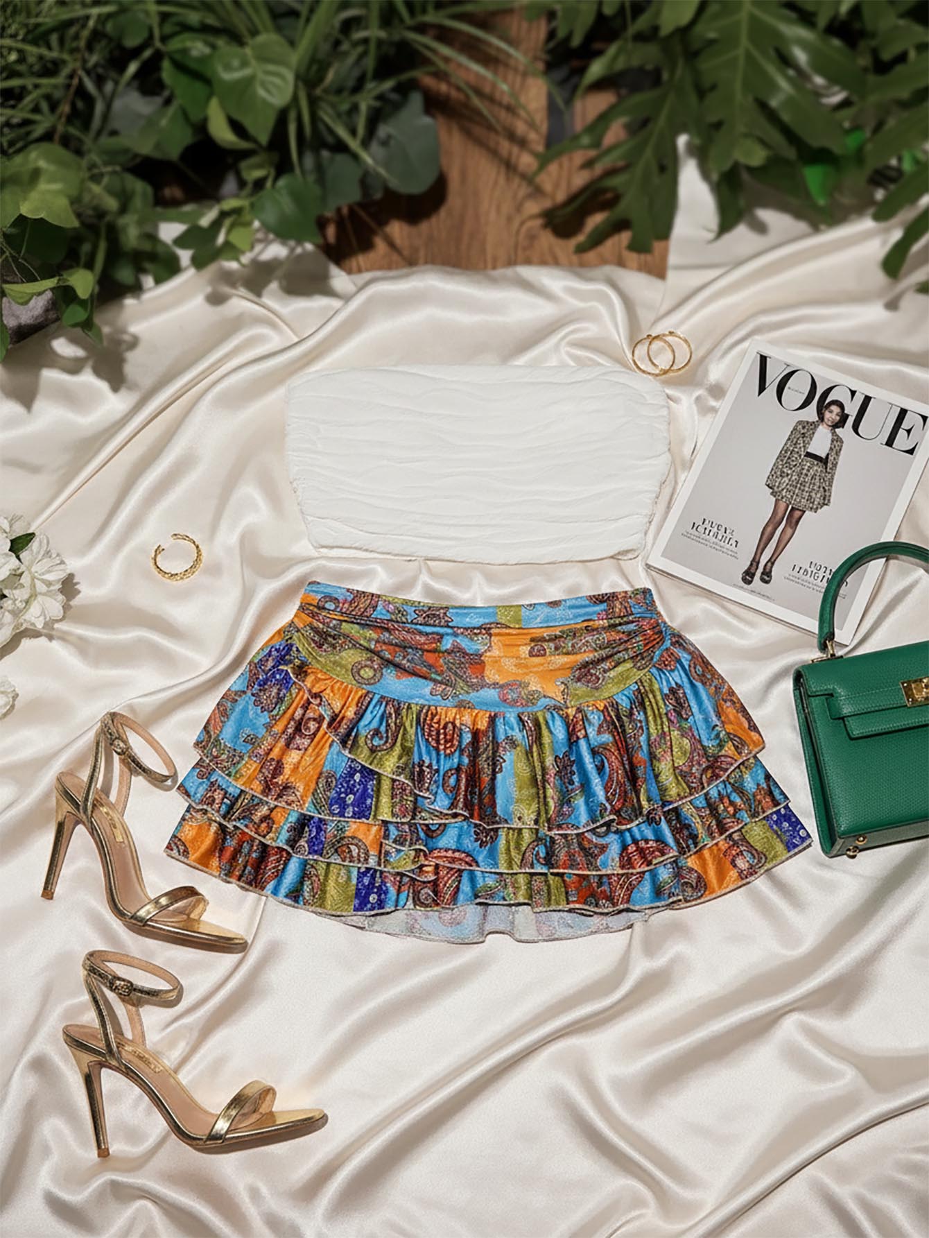 Slaydiva Beach New Spring And Summer Casual Vacation Gathered Waist Multi-Layer Cake Skirt A Swing Umbrella