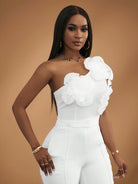 Slaydiva Valentine's Day Elegant Sexy One Shoulder Tie-Up Floral Decor Top For Women