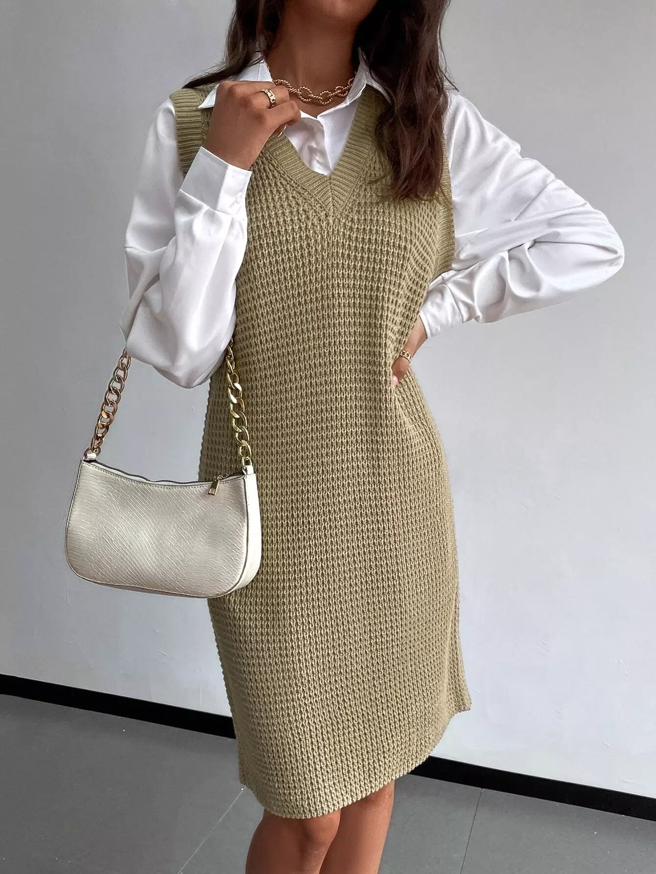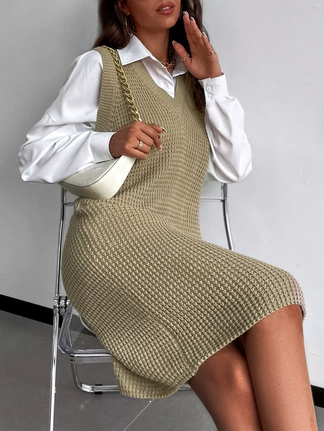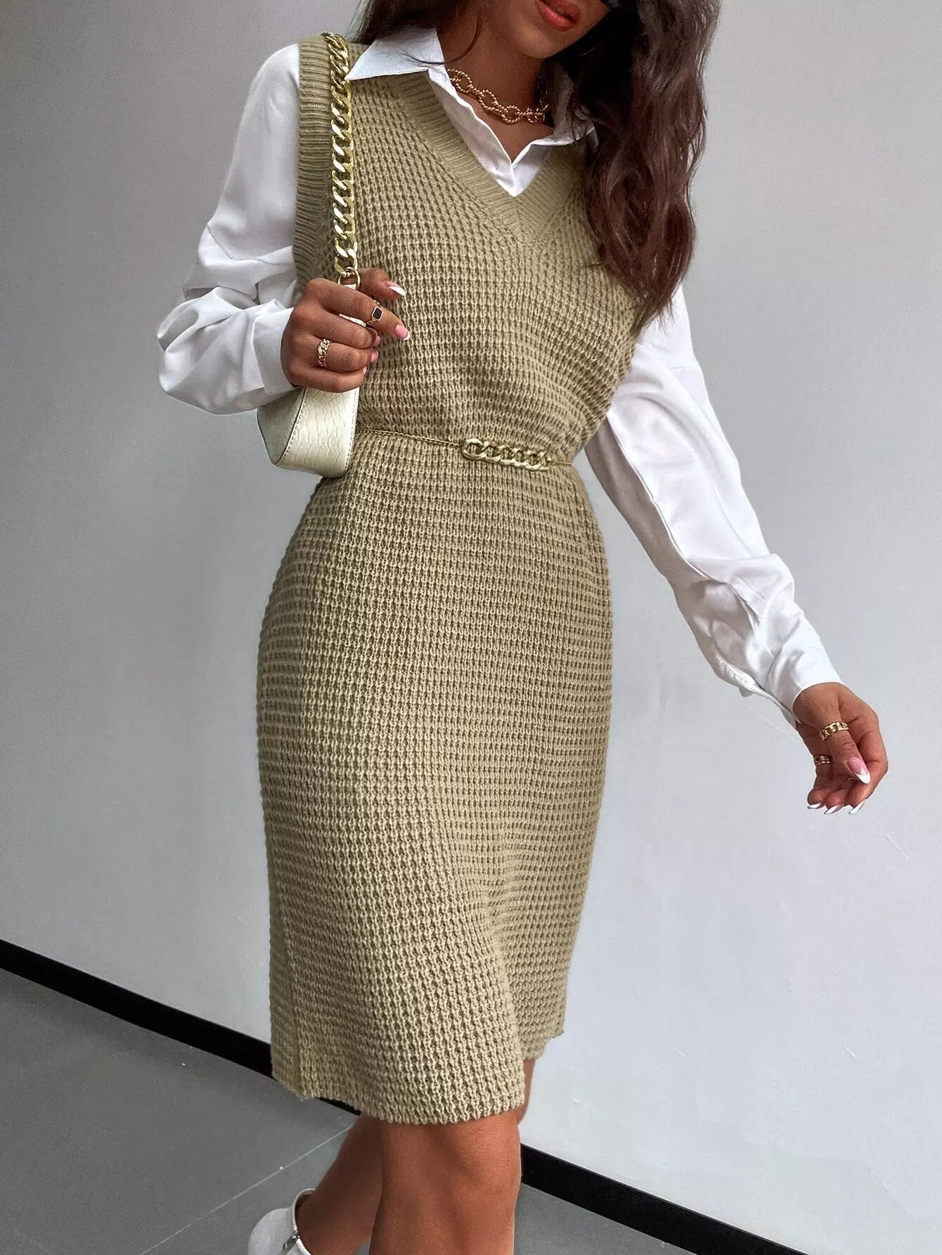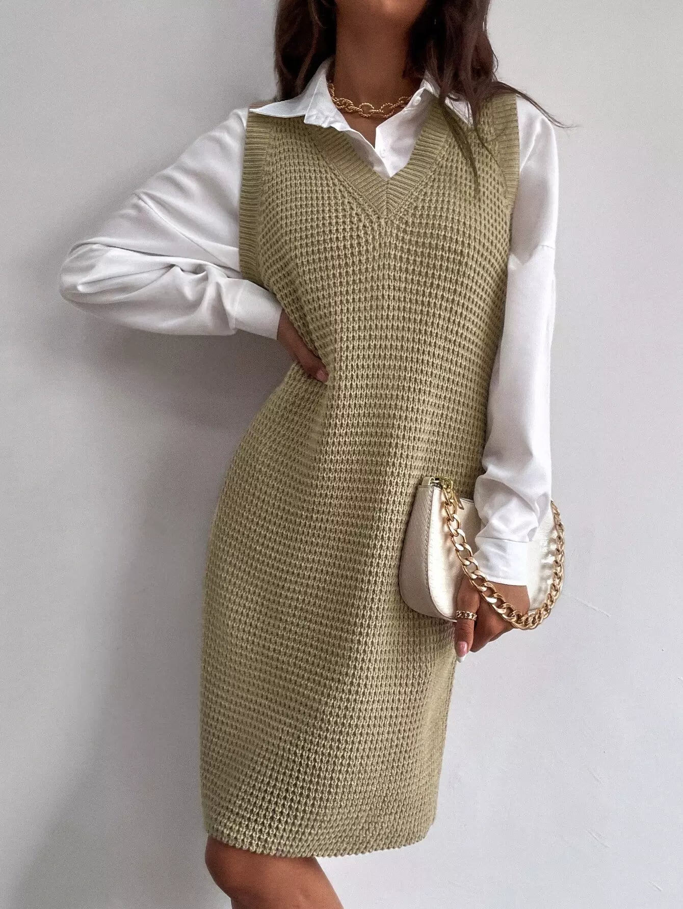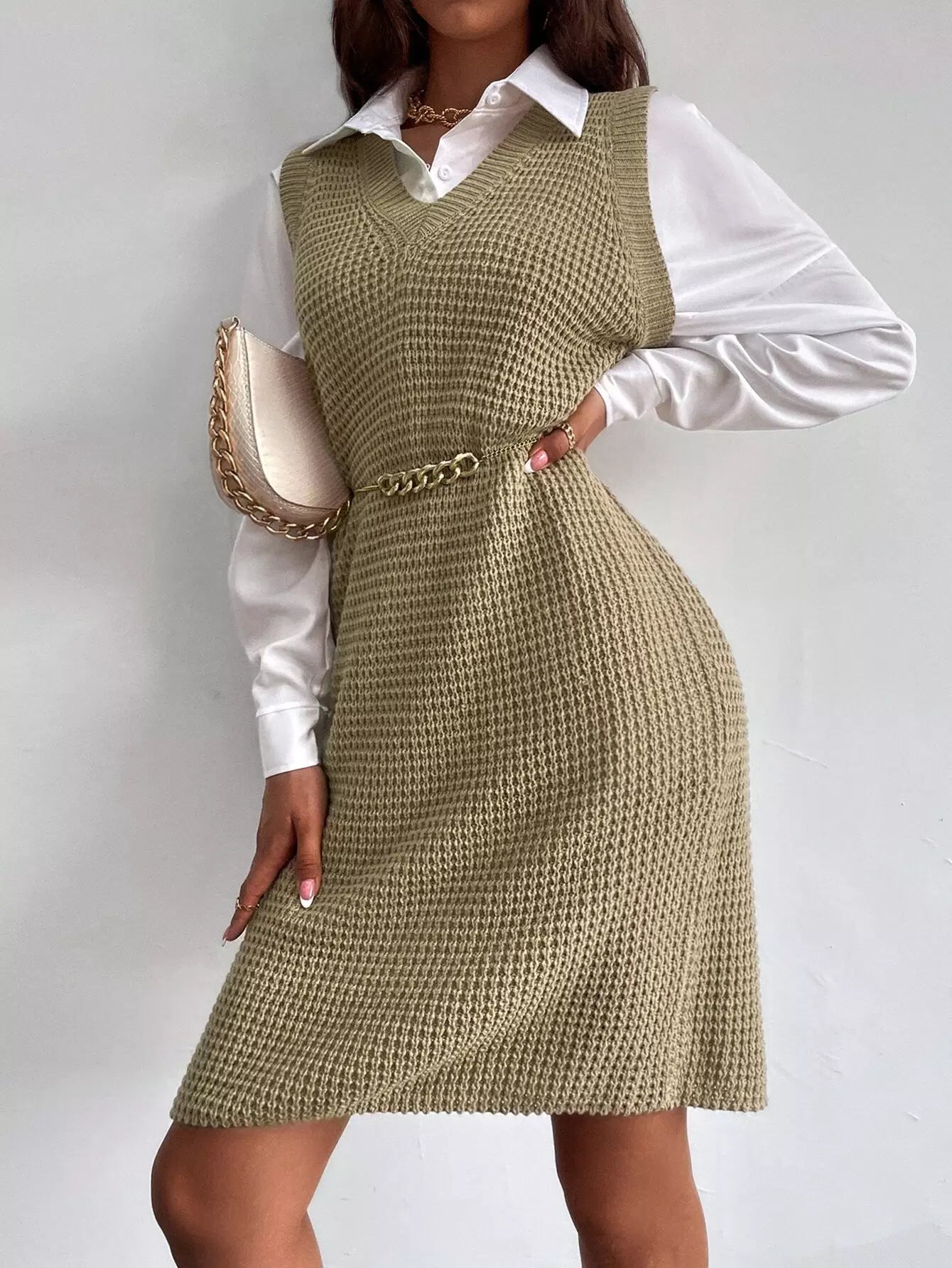 Sleeveless Sweater Dress Without Belt