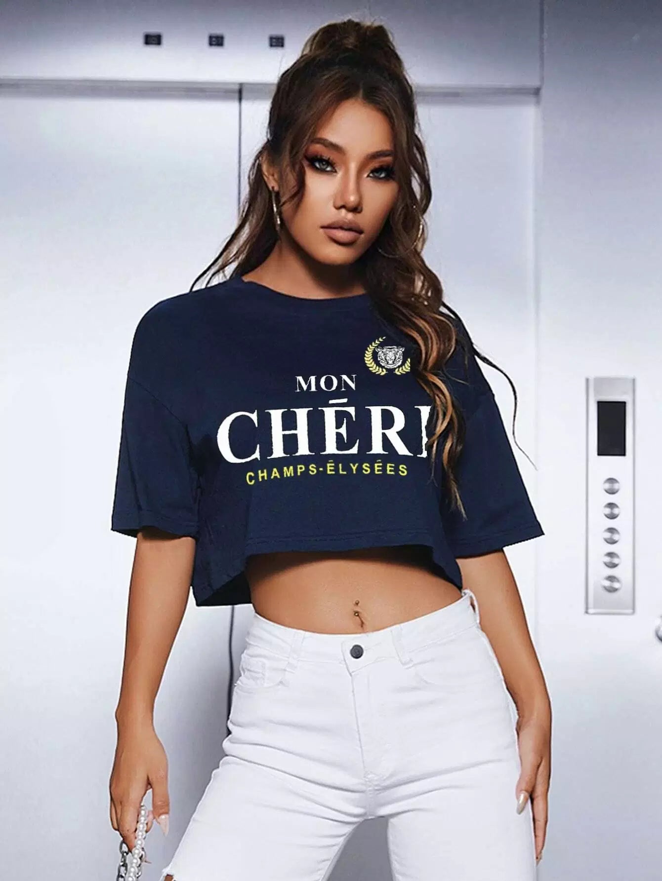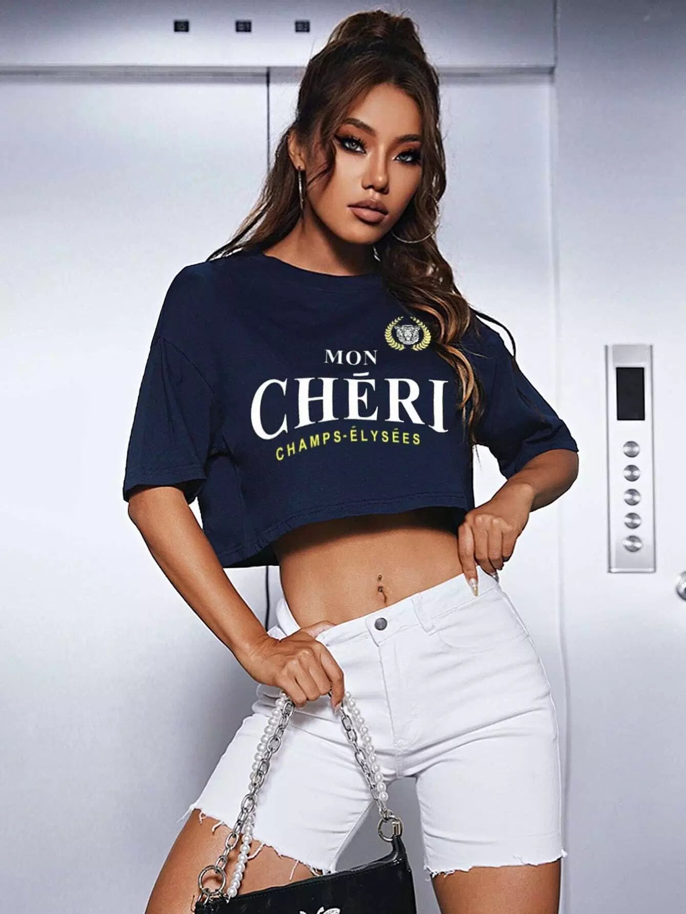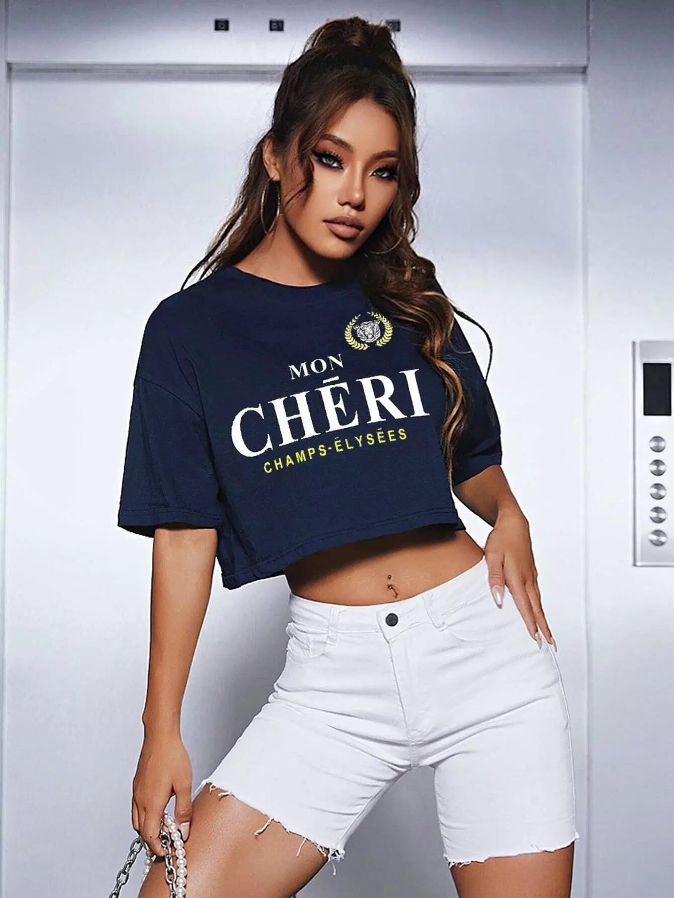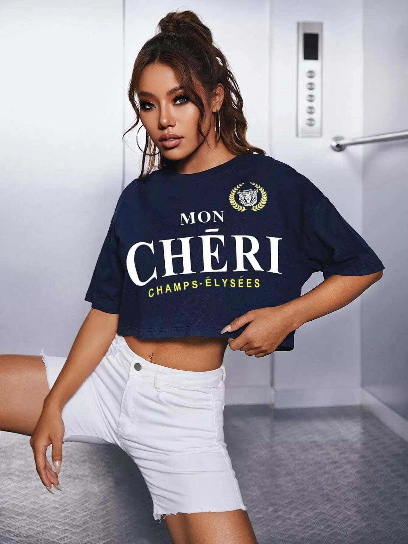 Slogan Graphic Drop Shoulder Crop Tee