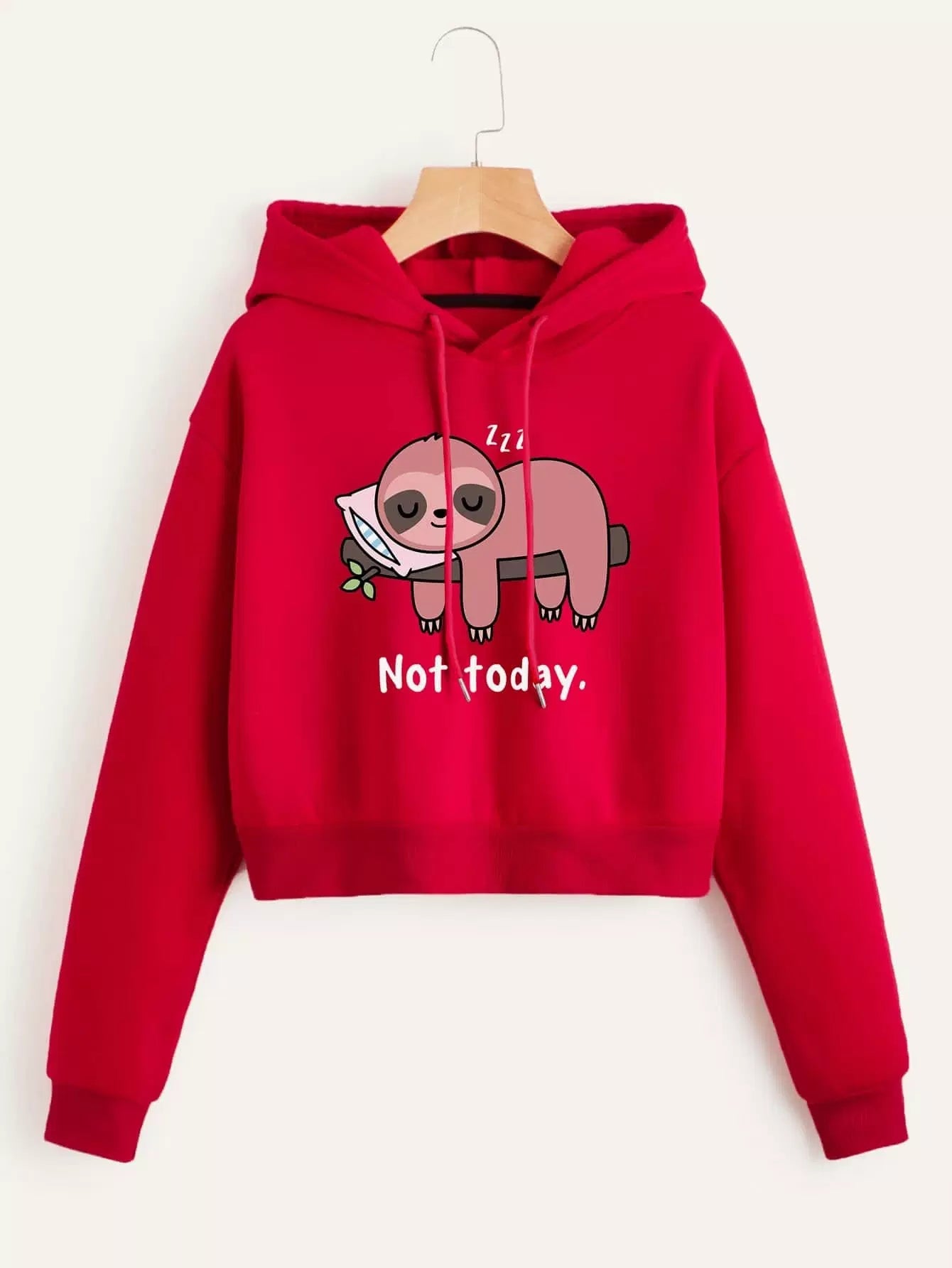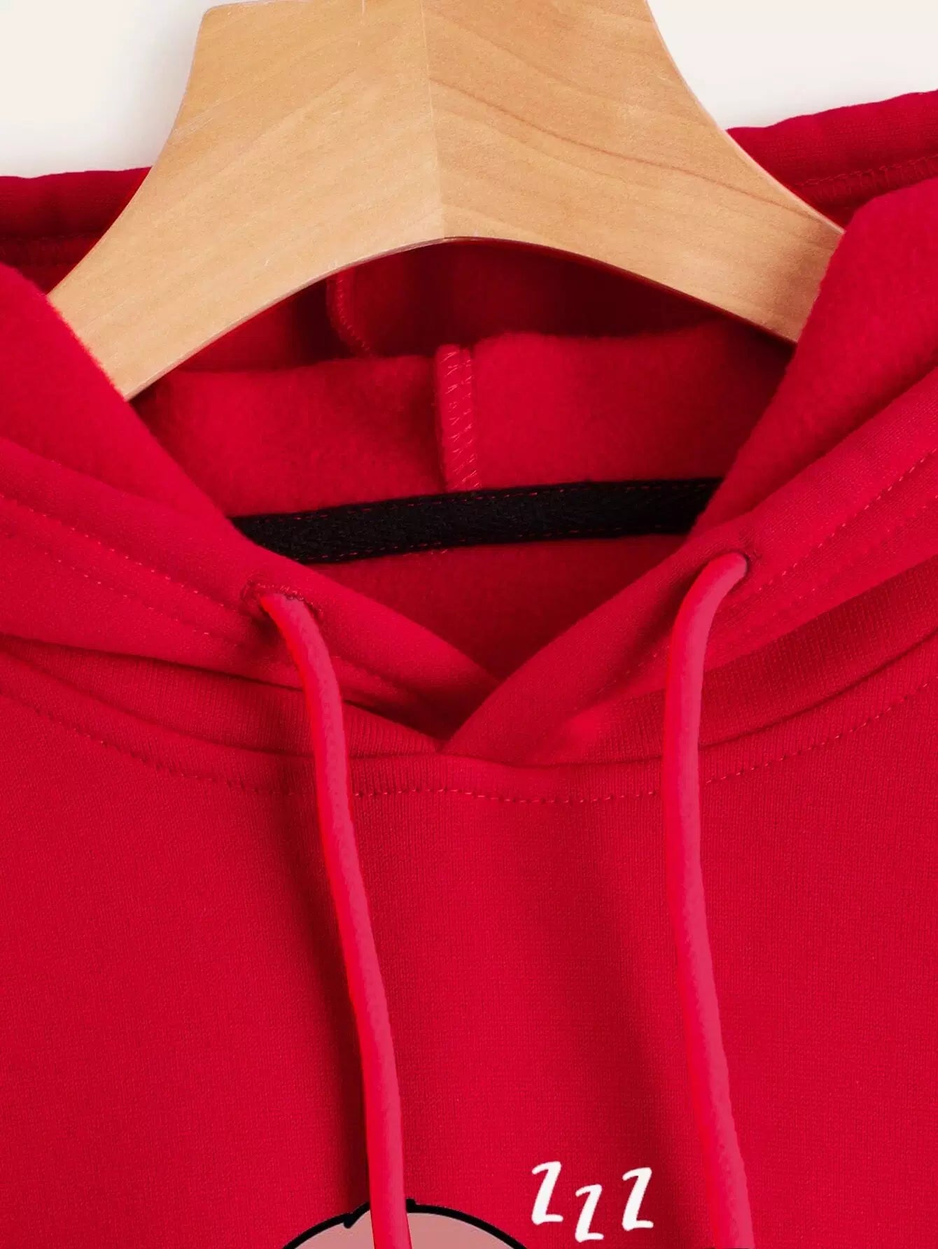 Sloth And Letter Graphic Thermal Lined Drawstring Hoodie
