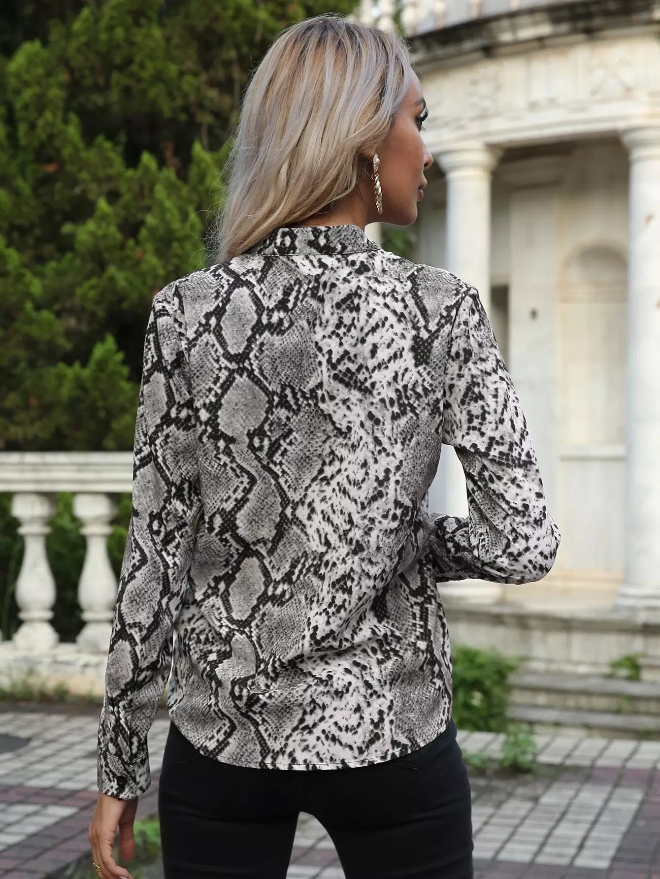 Snakeskin Print Notched Neck Blouse