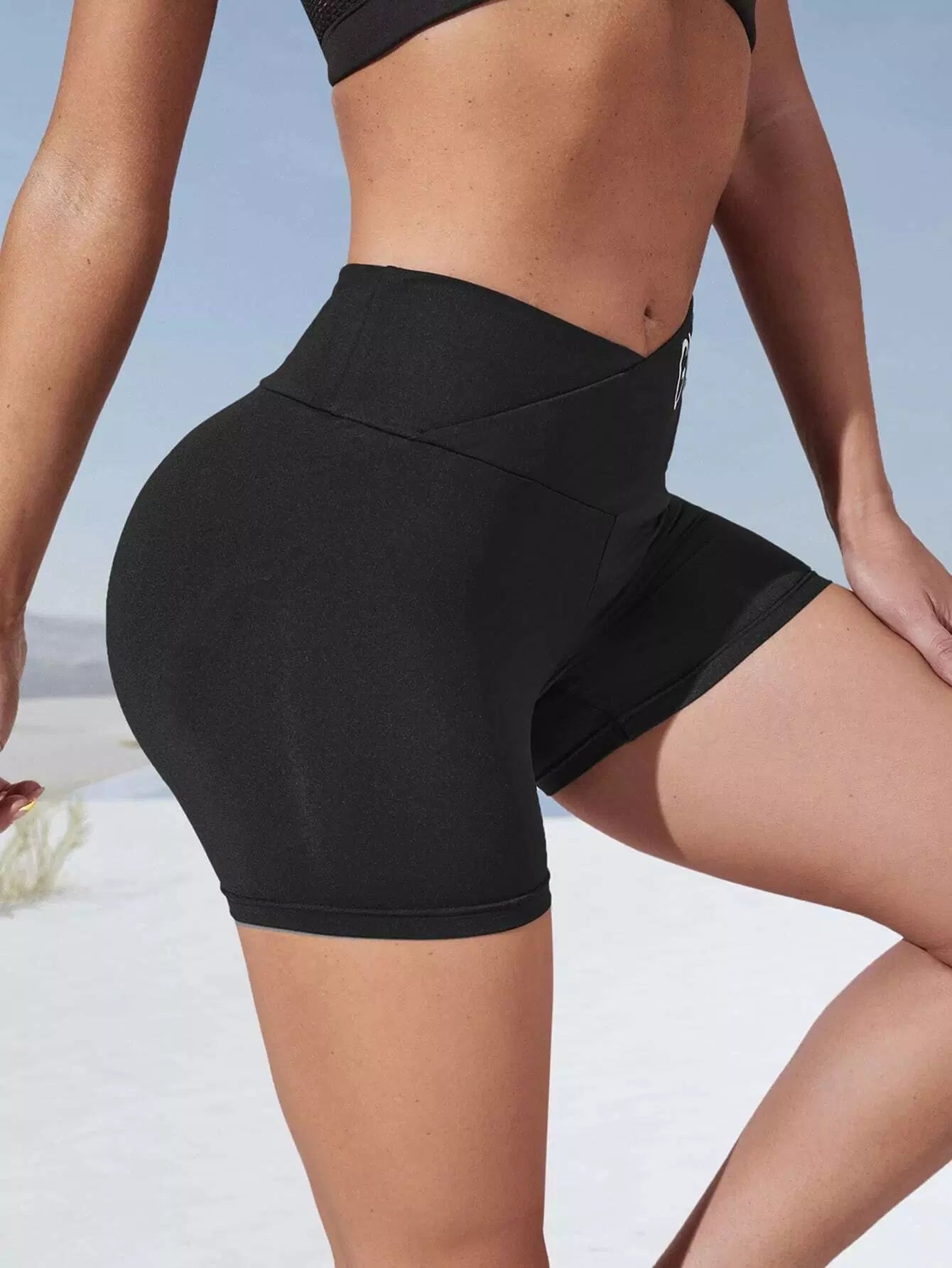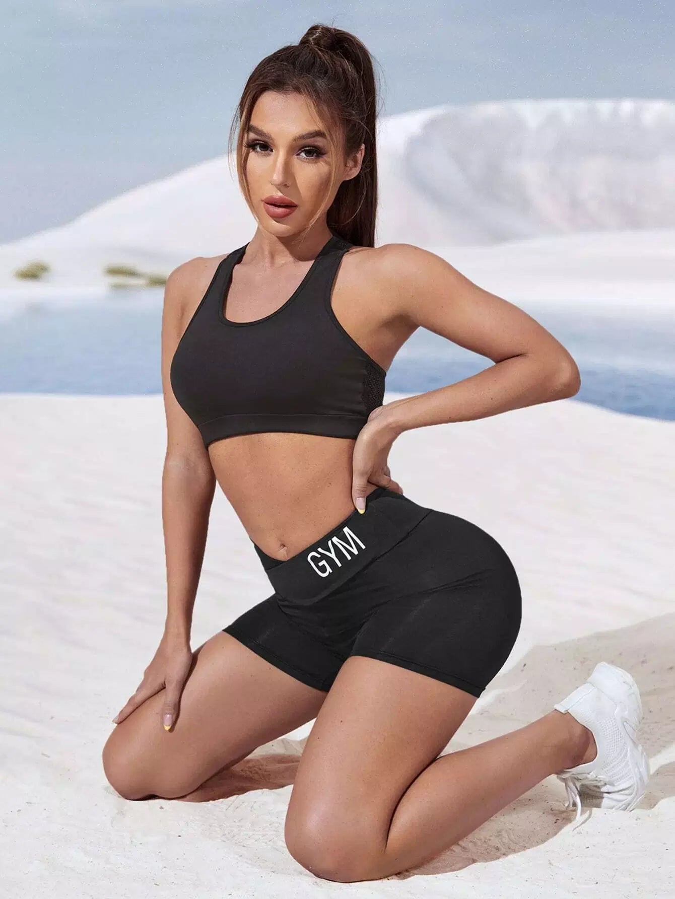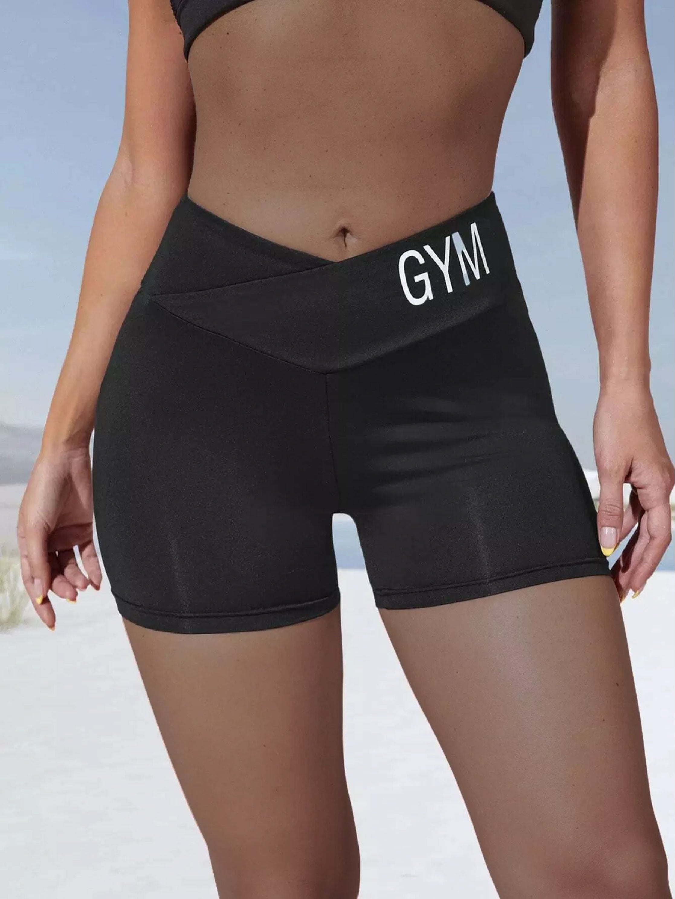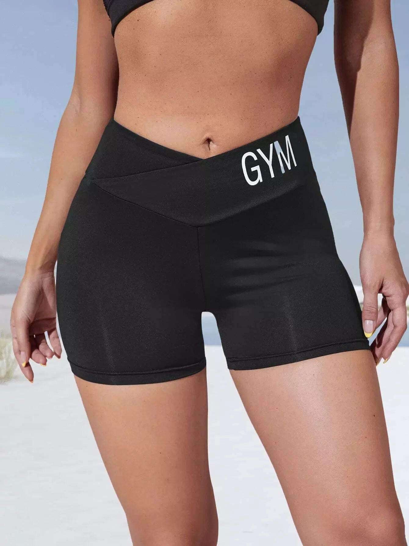 Softness Letter Graphic Wideband Waist Sports Shorts