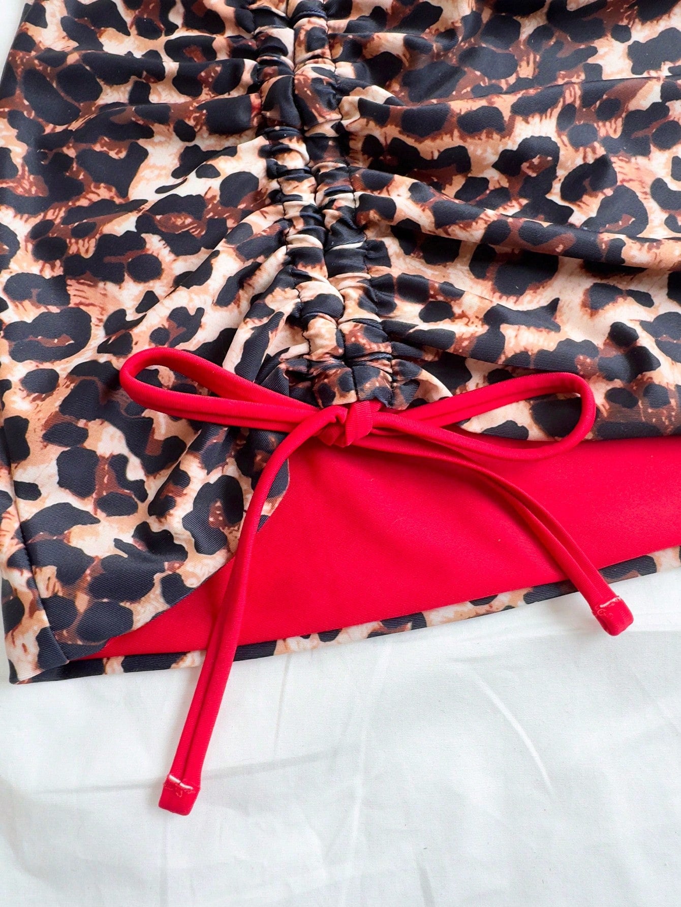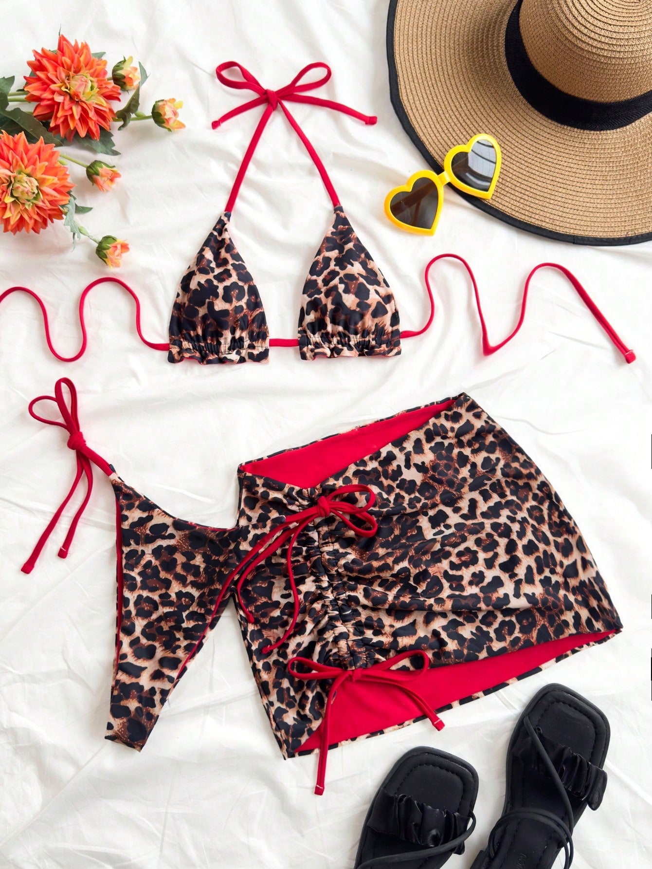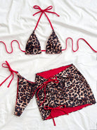 Soleia 3pcs Women's Leopard Print & Red Color Matching Reversible Bikini Set