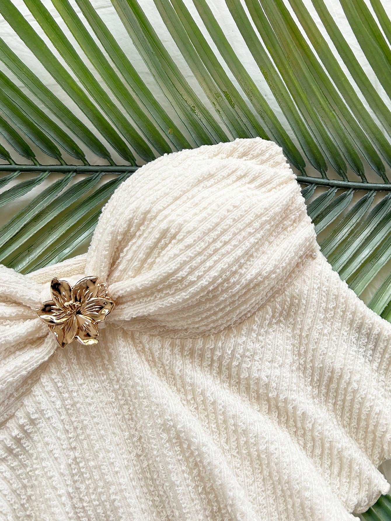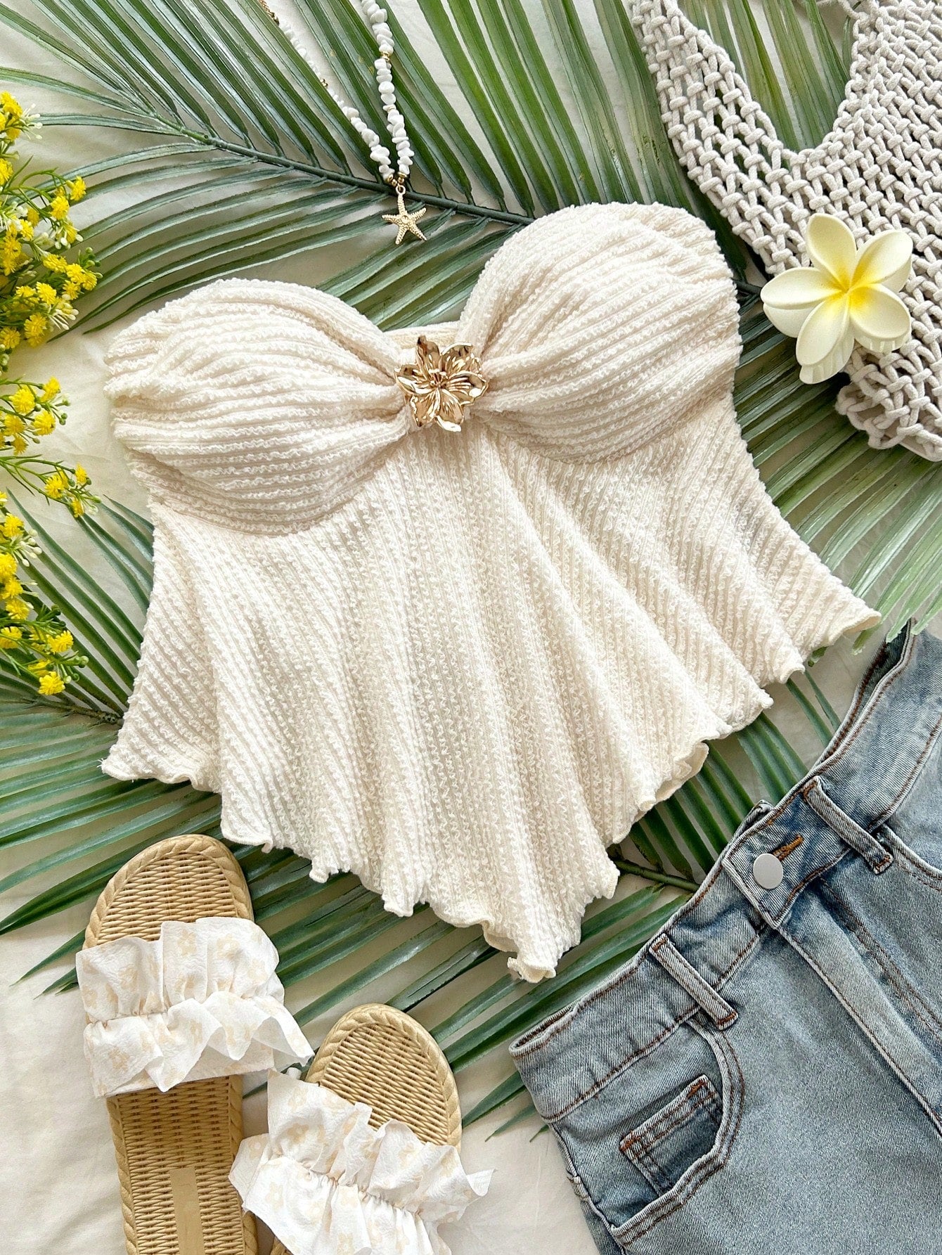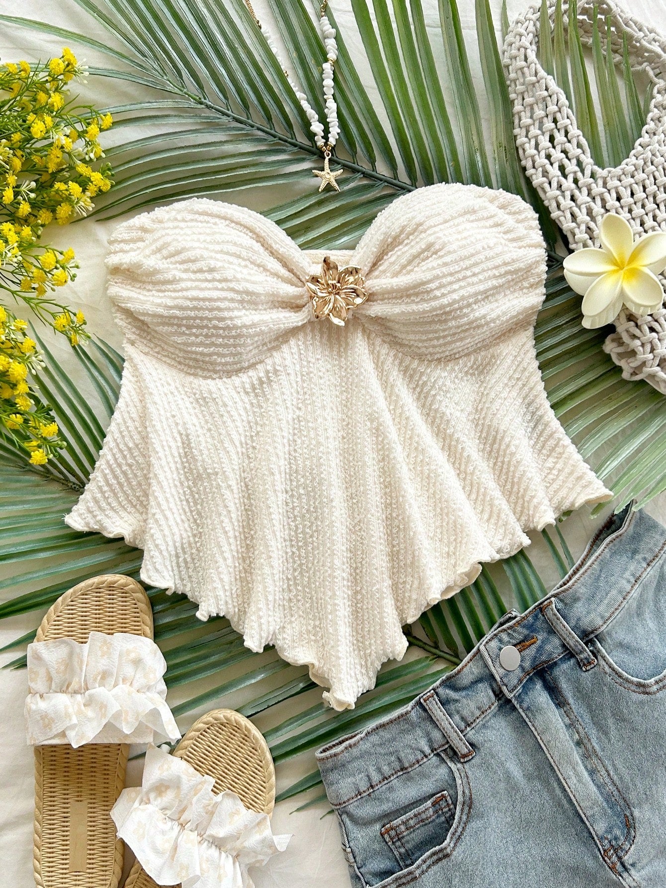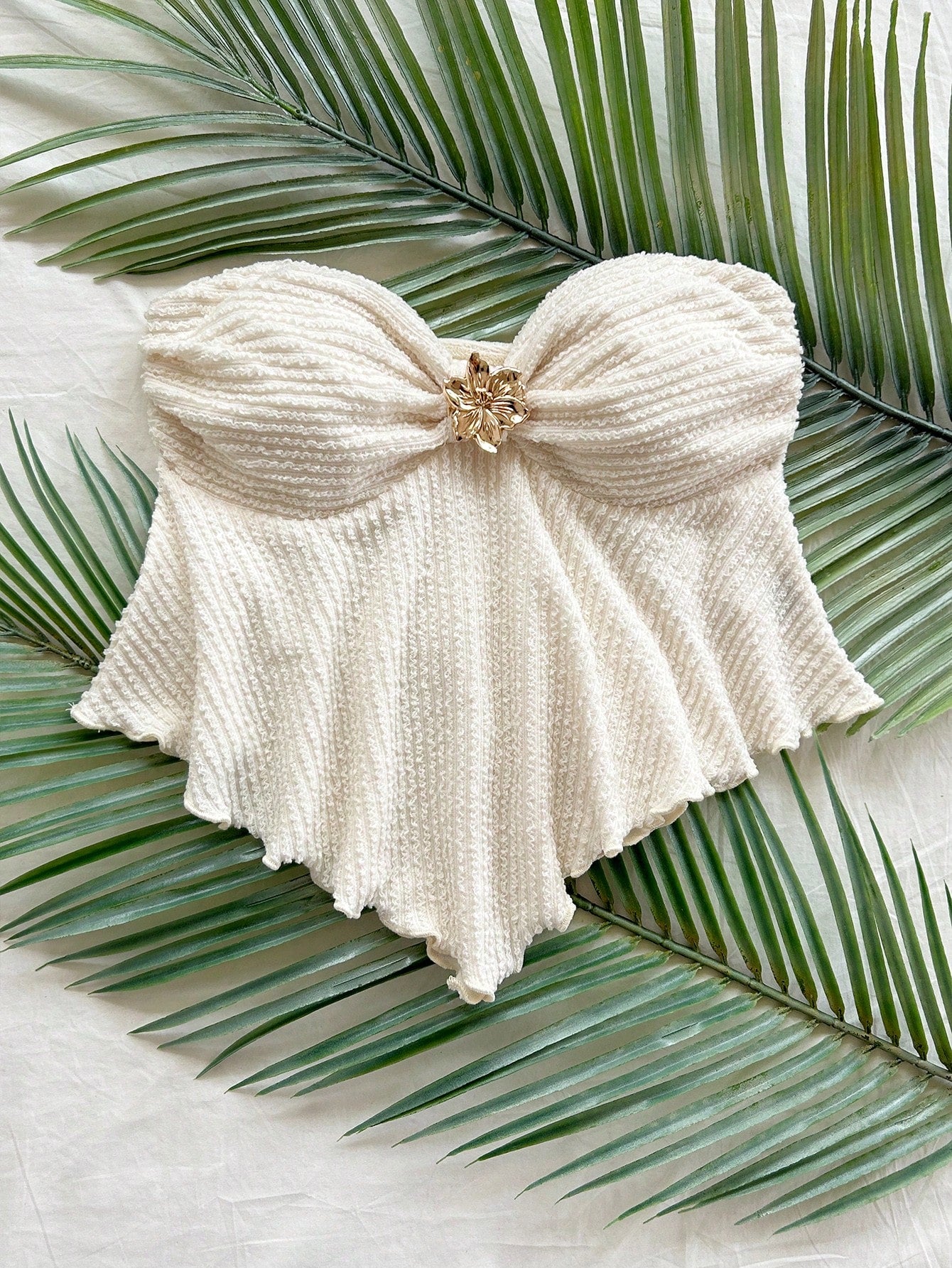 Soleia White Flower Metal Decor Knit Tube Top For Women