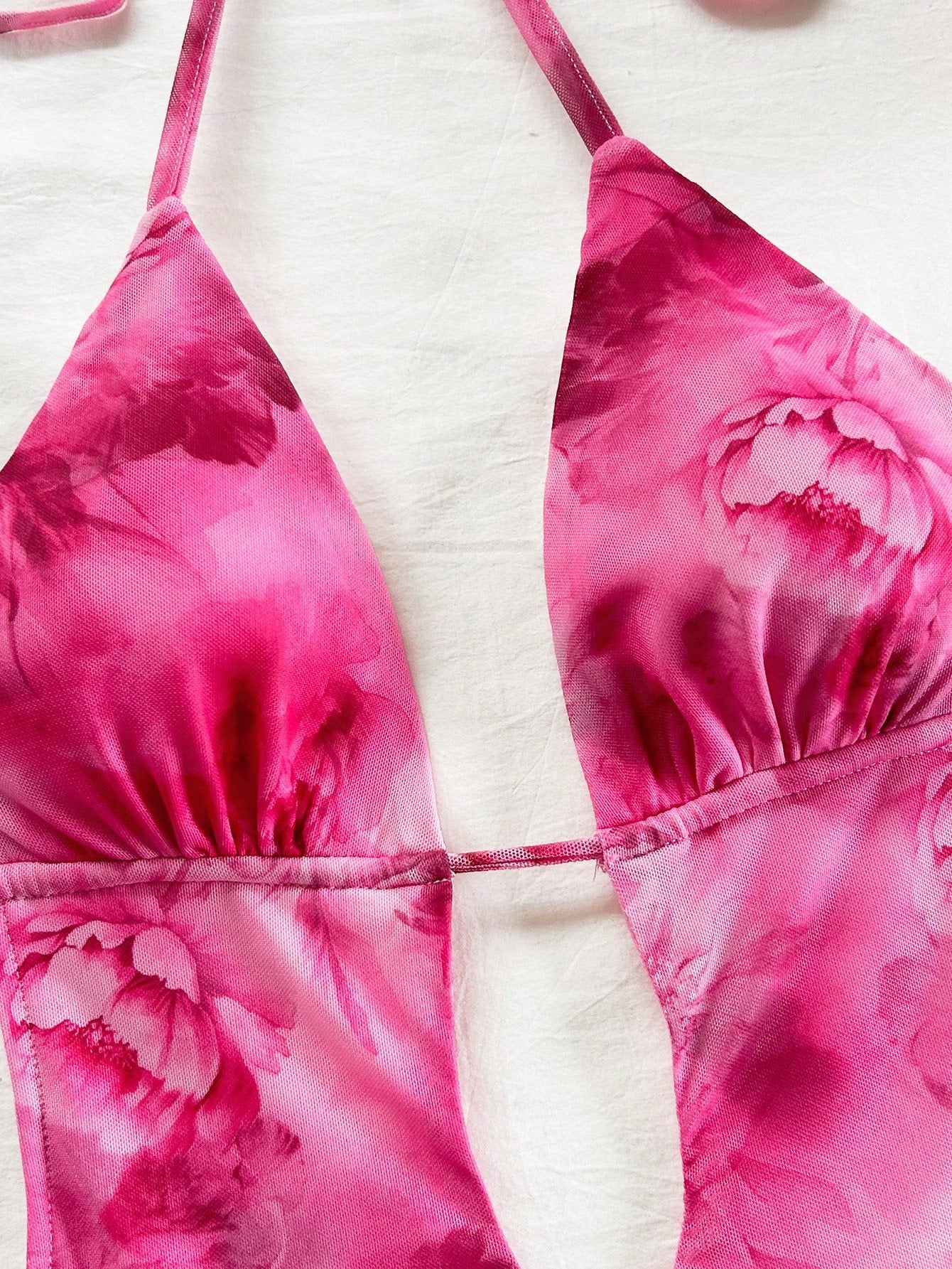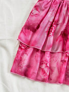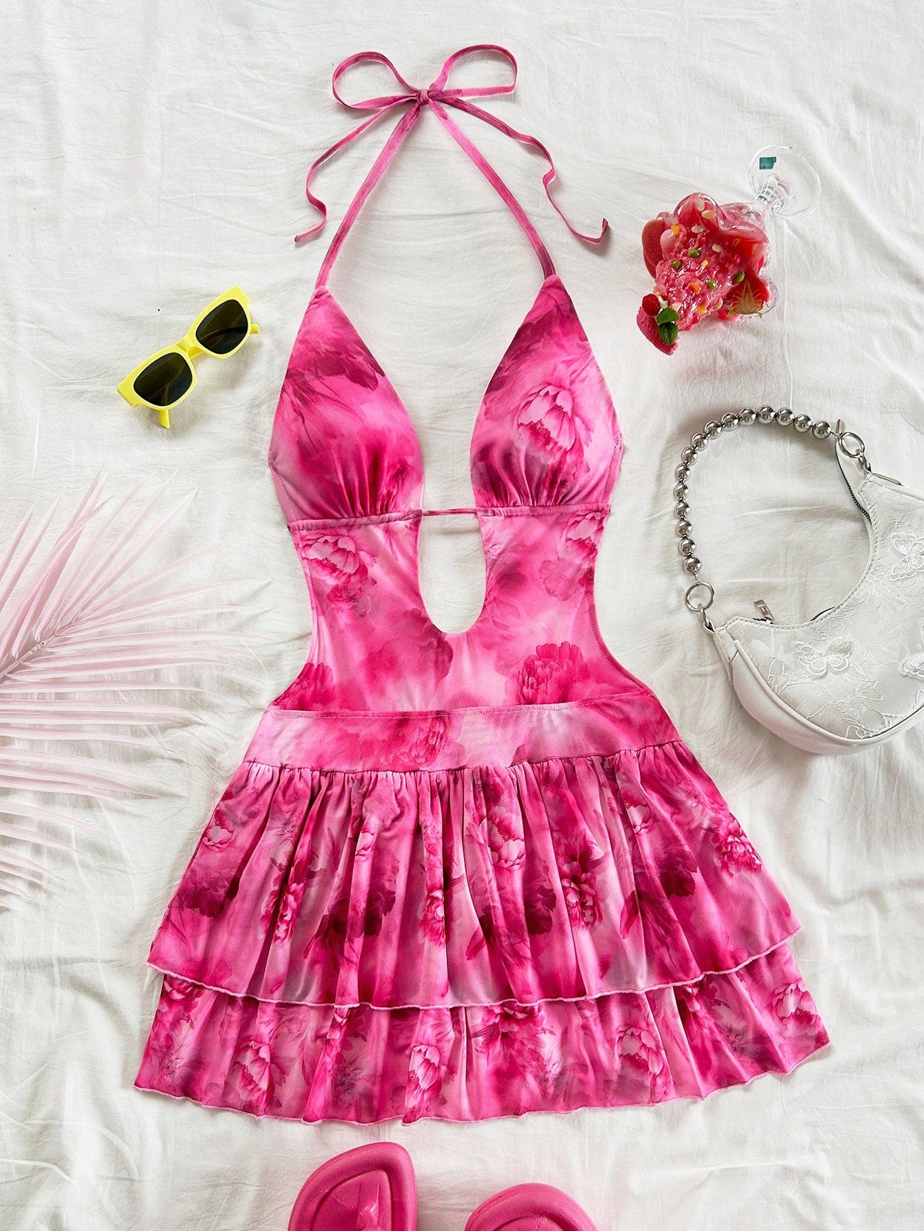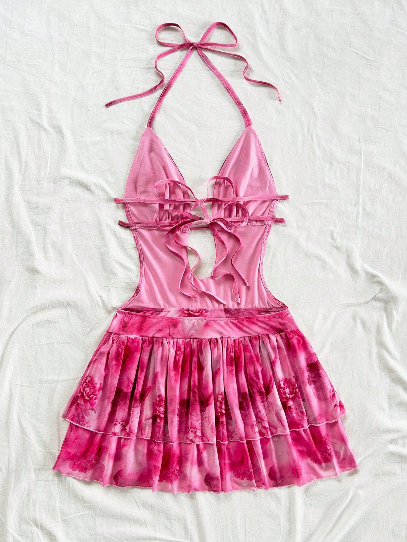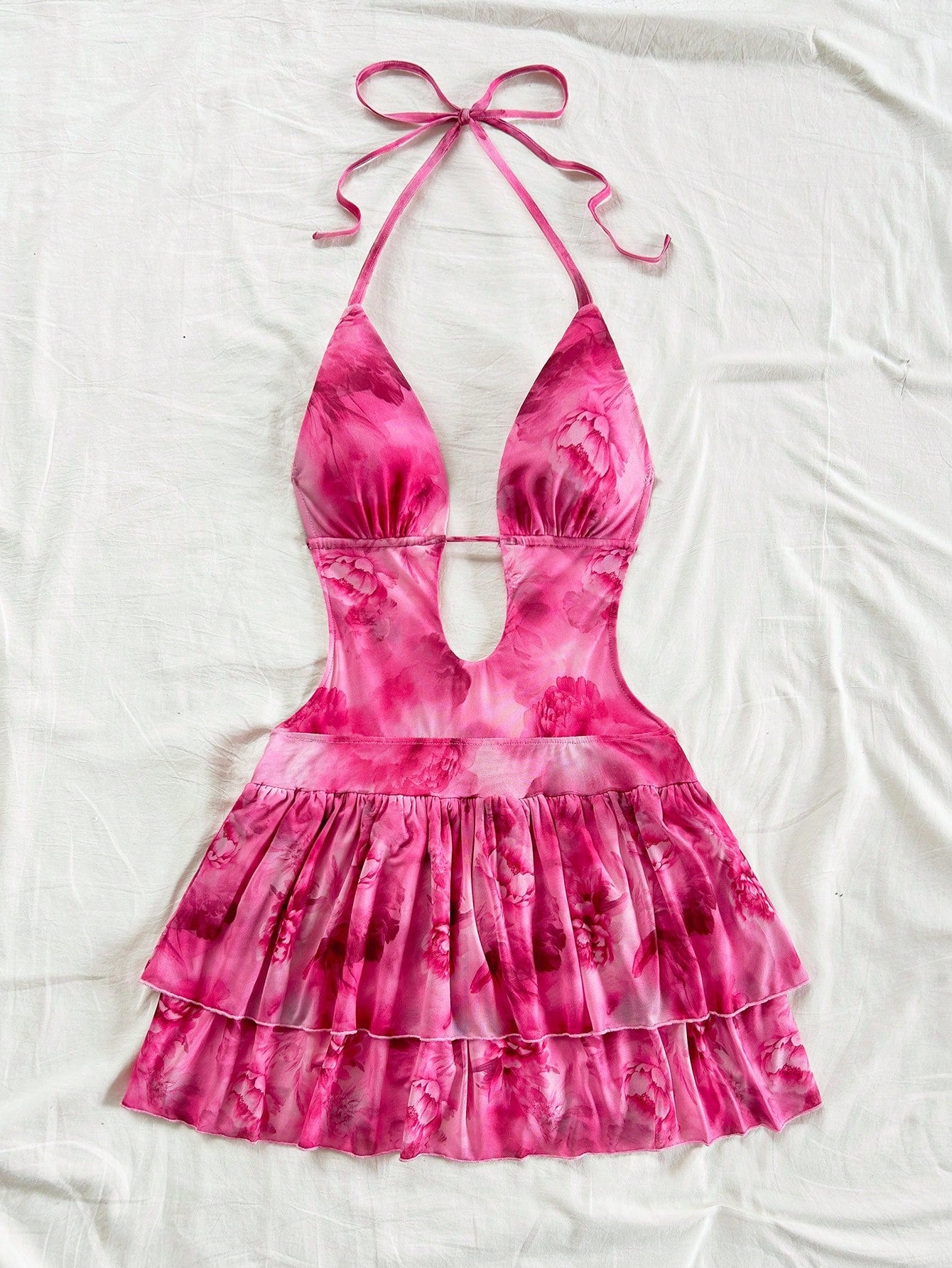 Soleia Women's Vacation V-Neck Backless Tie Strap Ruffled Hem Mini Dress With Vintage Tie-Dye Print,