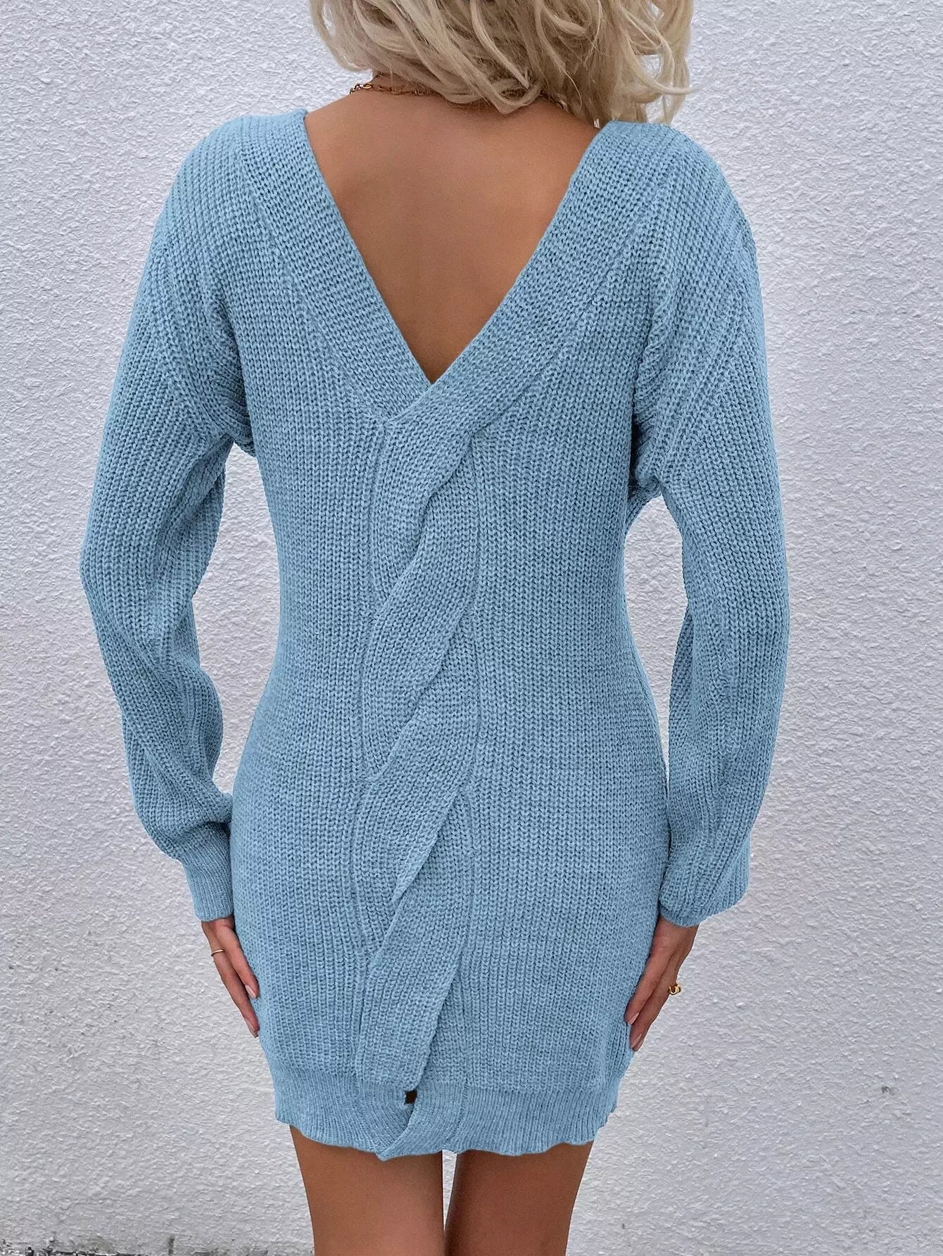 Solid Backless Sweater Dress Without Belted