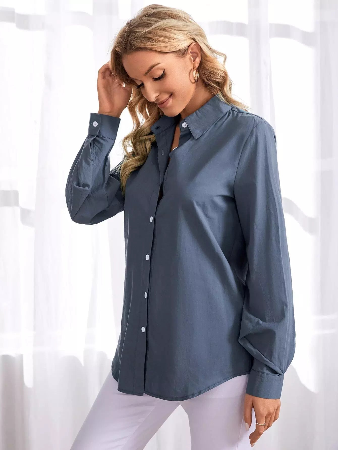 Solid Button Front Shirt