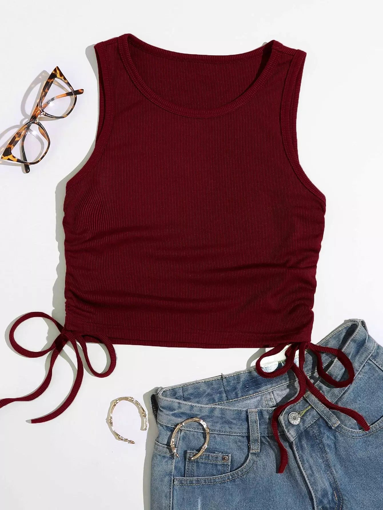 Solid Drawstring Side Tank Top