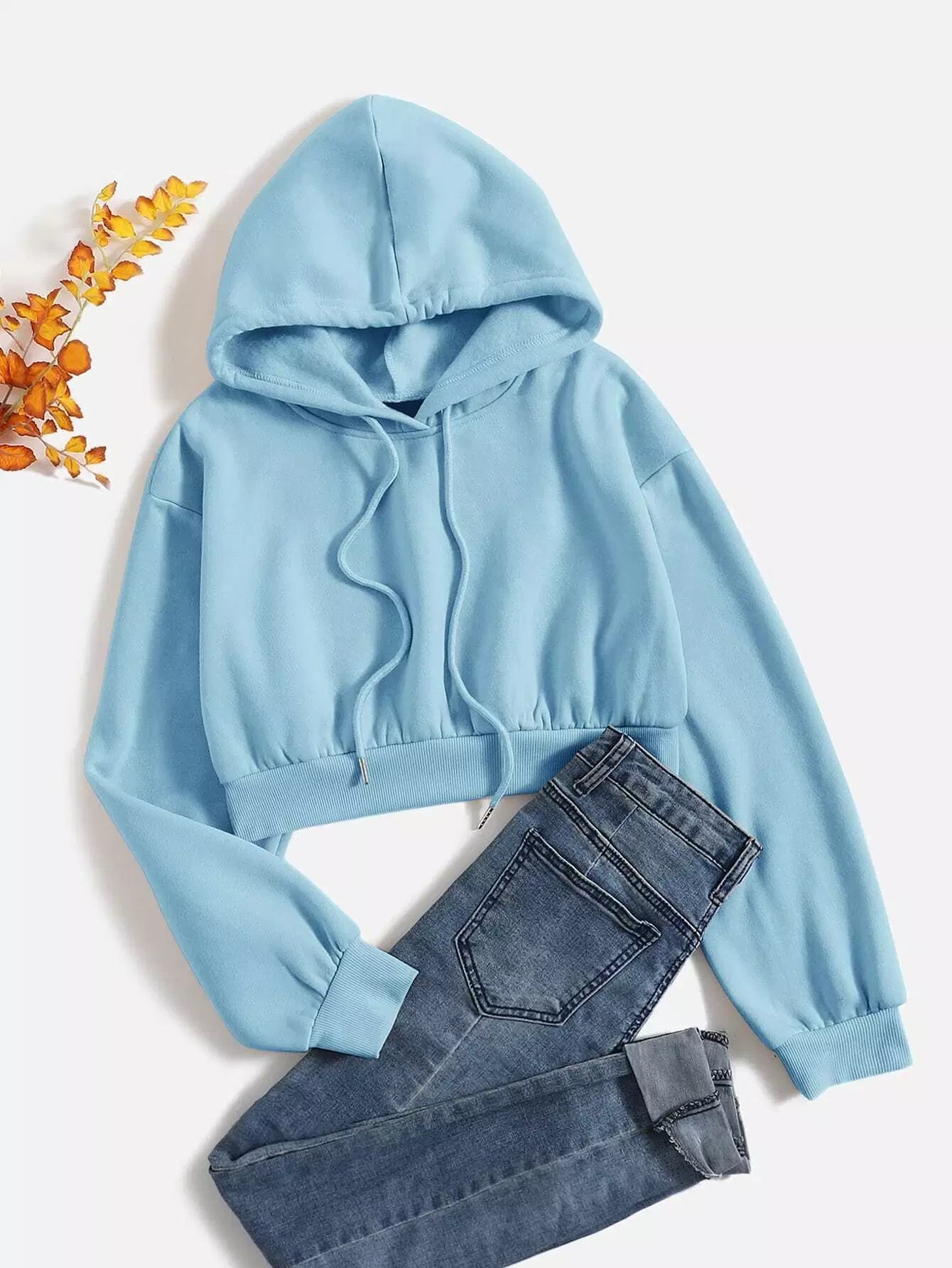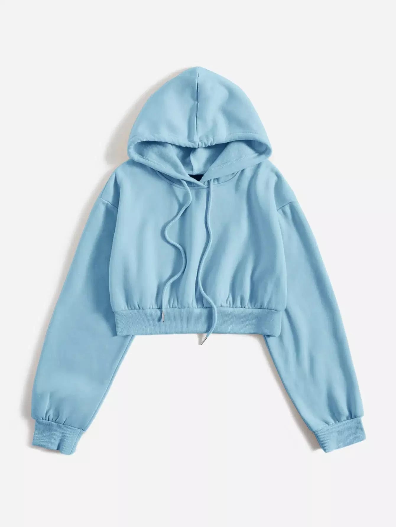 Solid Drop Shoulder Drawstring Hoodie